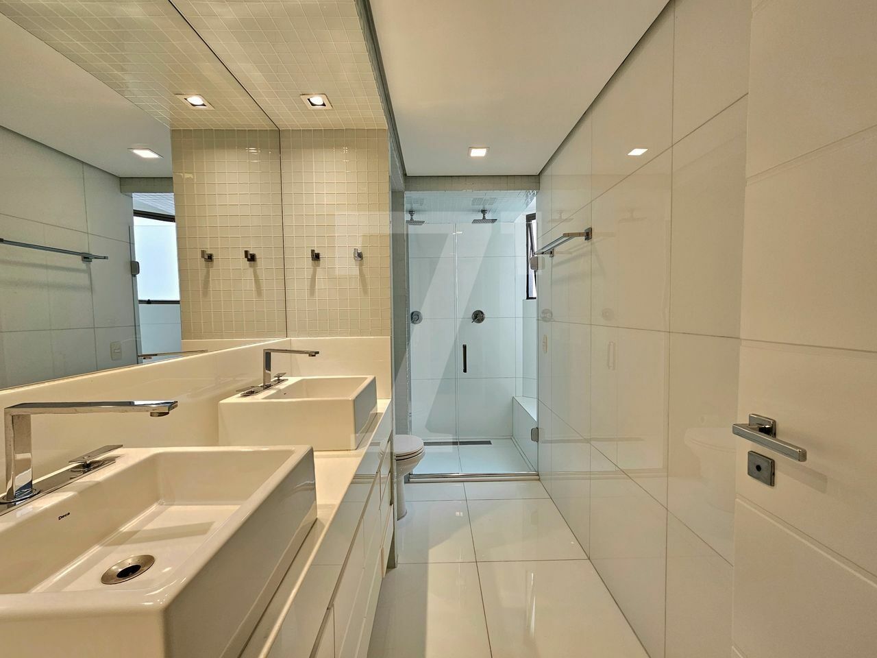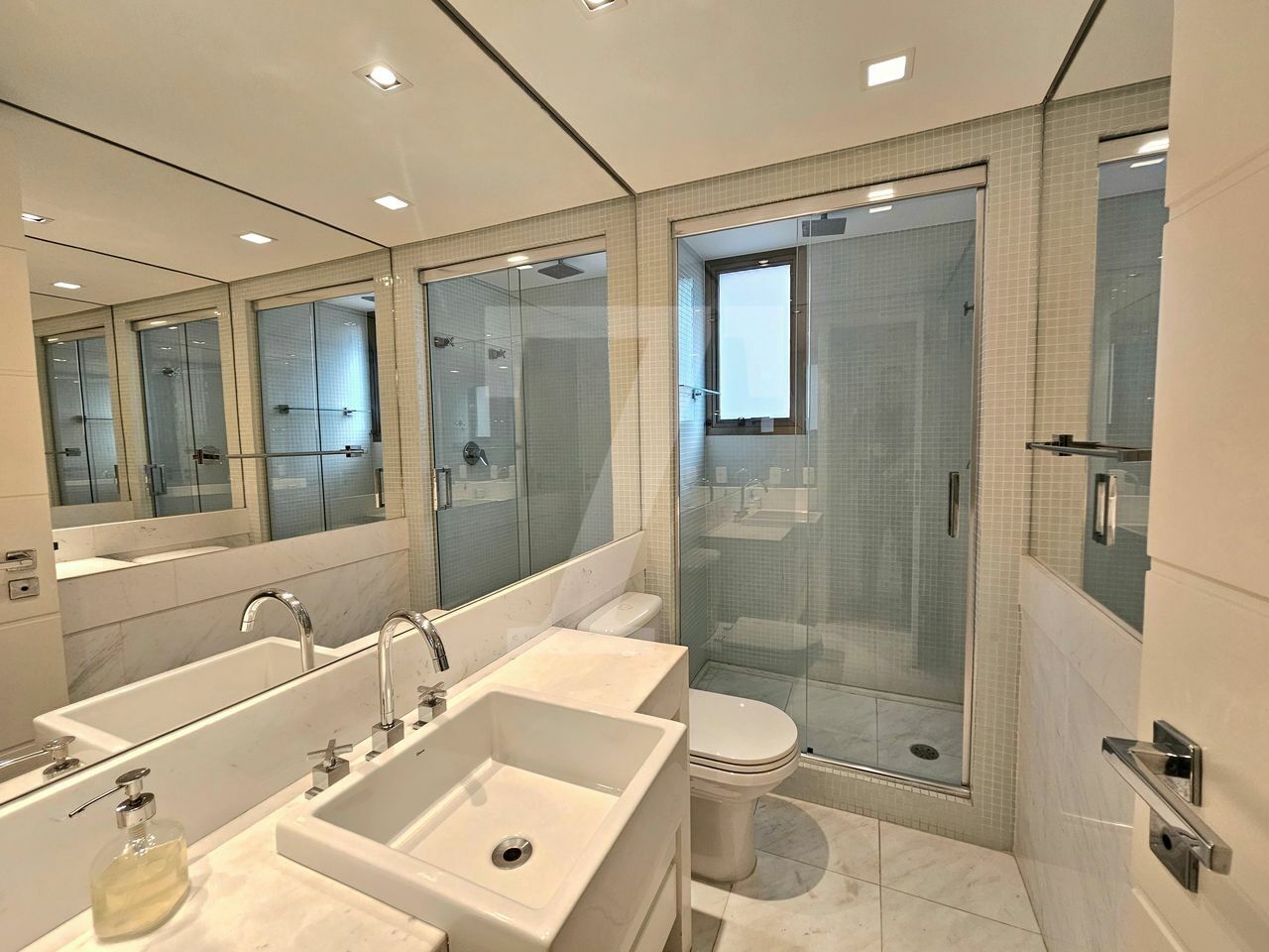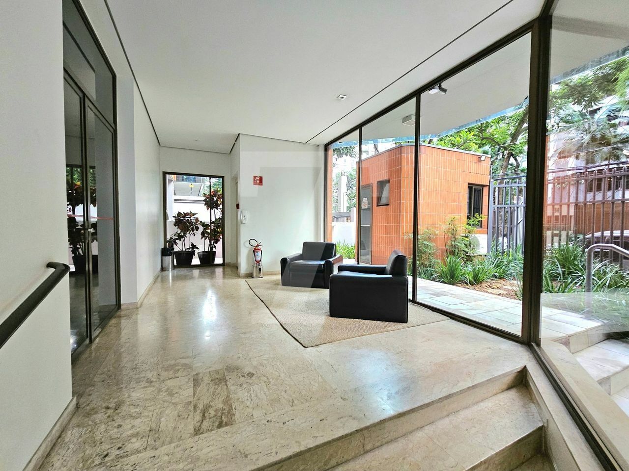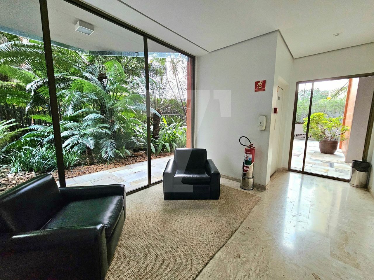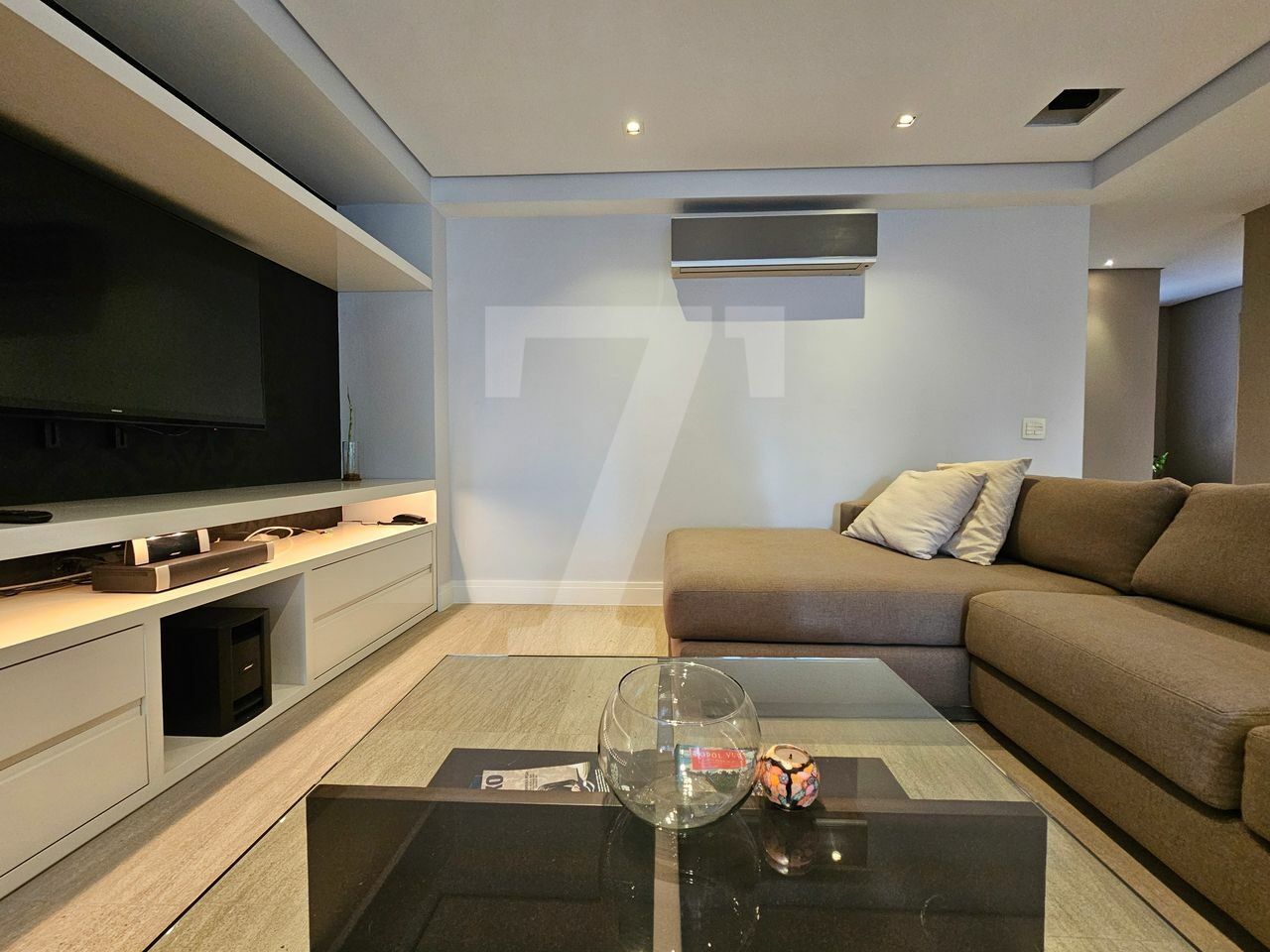 O living oferece três ambientes: sala com lareira e varanda que se estende de parede a parede, uma confortável sala de TV e a sala de jantar, que acomoda oito pessoas também com varanda. O piso é em mármore e a mobília é de excelente qualidade. No lavabo, a pia é esculpida e o revestimento em mármore. Além disso, o hall social é individualizado, garantindo privacidade.