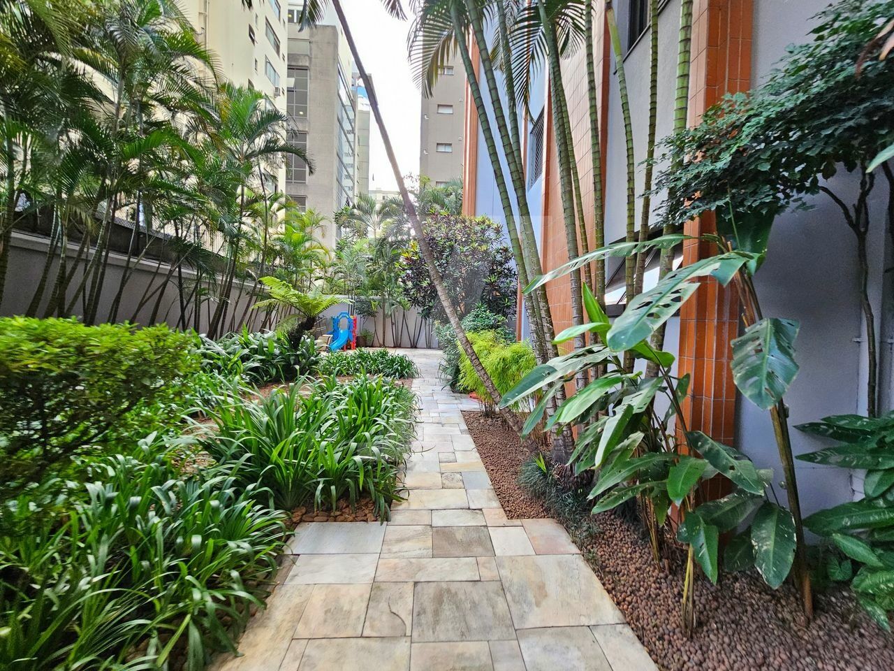 O condomínio oferece lazer com piscina, brinquedoteca, playground e academia.