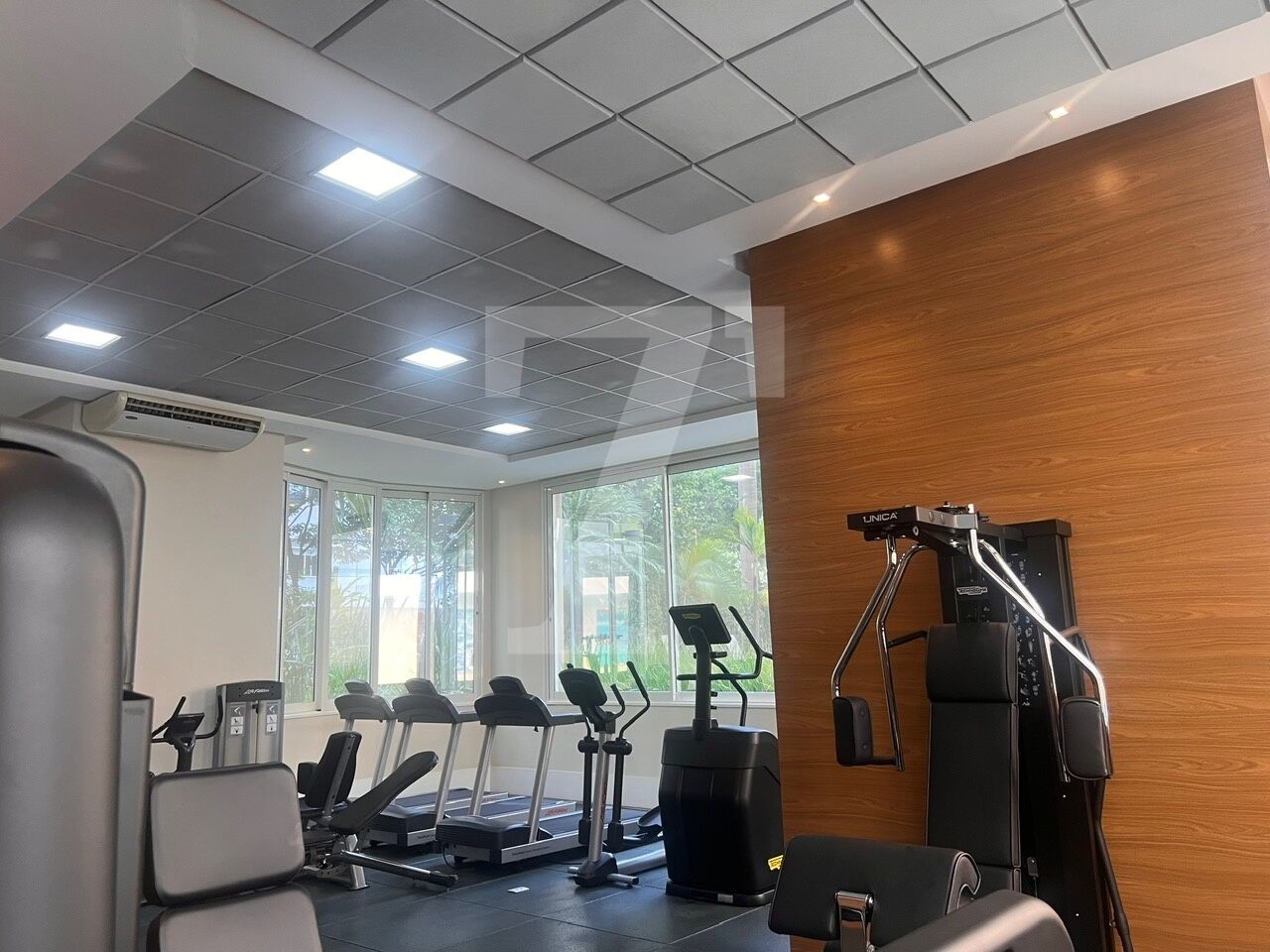 Condomínio: Infraestrutura de clube com piscina coberta com raia, fitness avançado, segurança 24h e a estética única de Benedito Abbud.