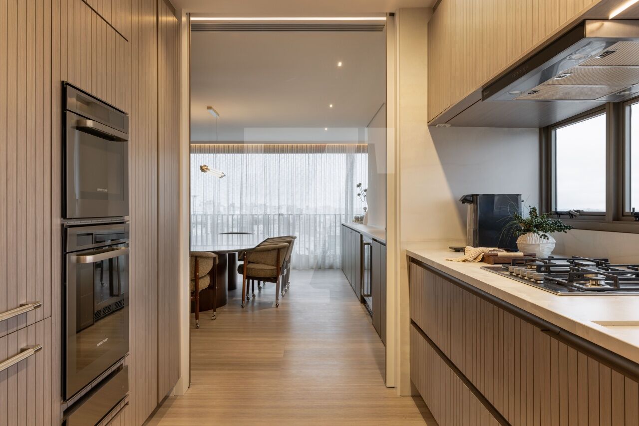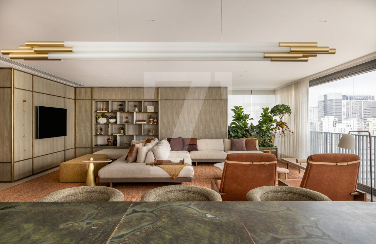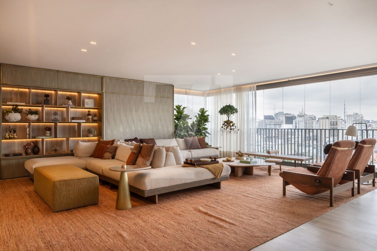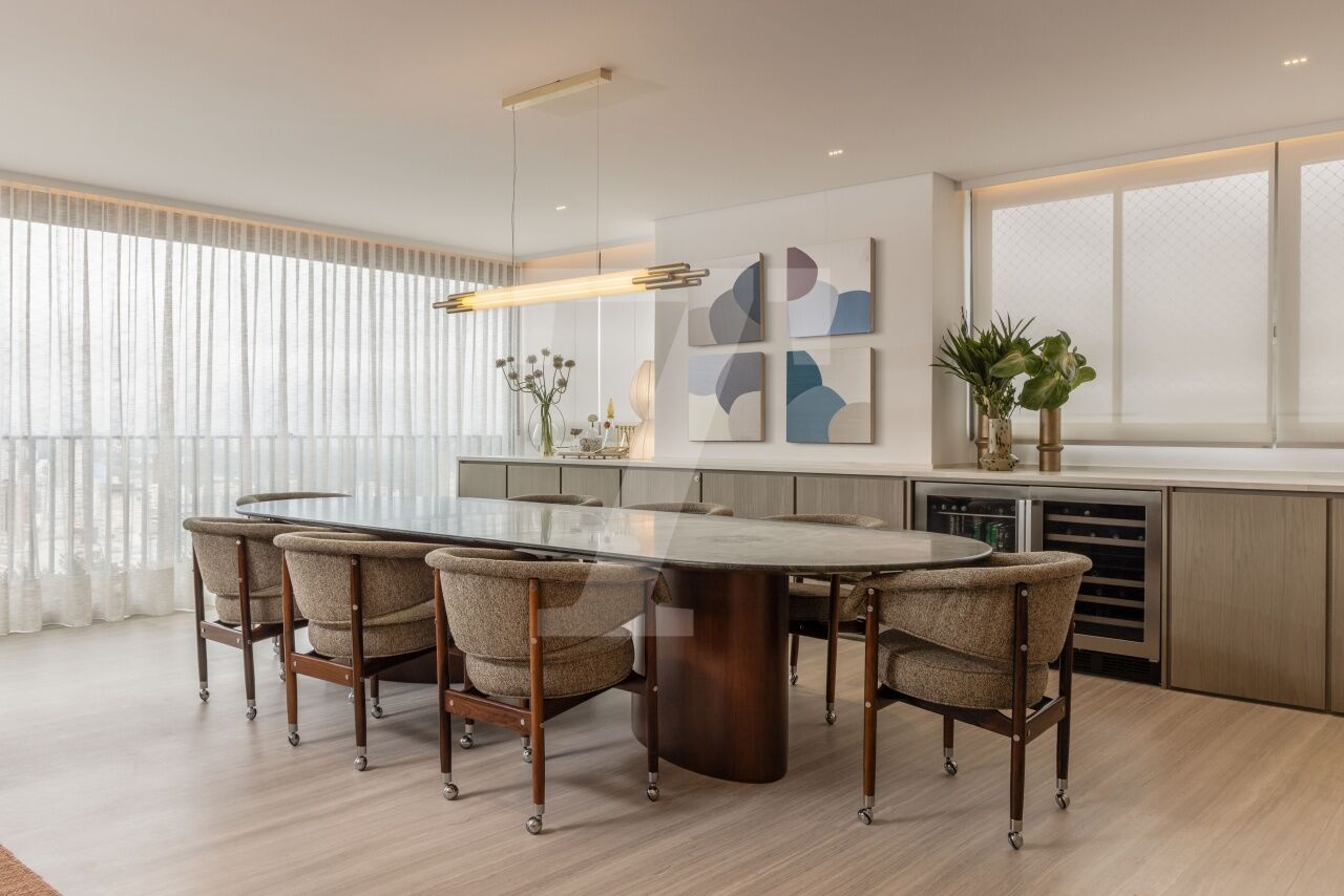 A paleta neutra, os materiais nobres e o mobiliário cuidadosamente selecionado traduzem conforto, contemporaneidade e refinamento.
