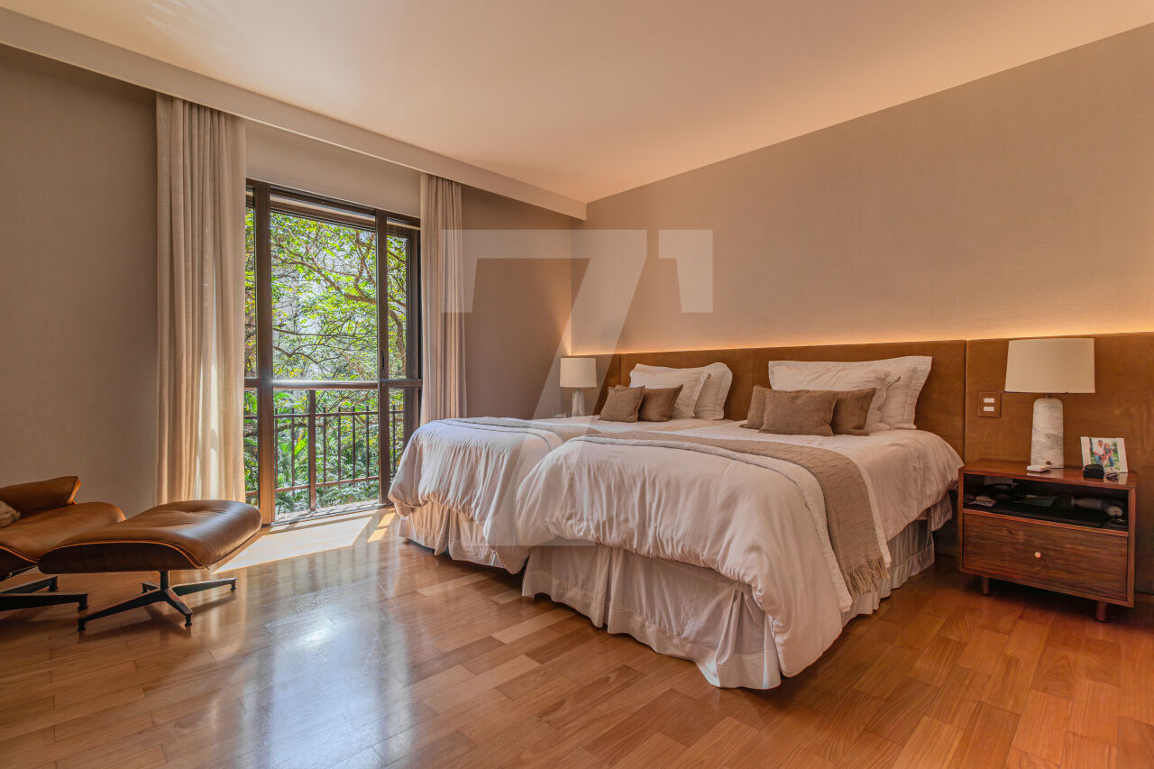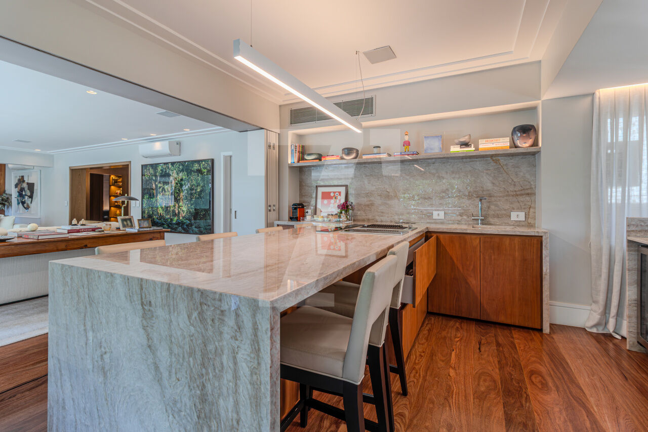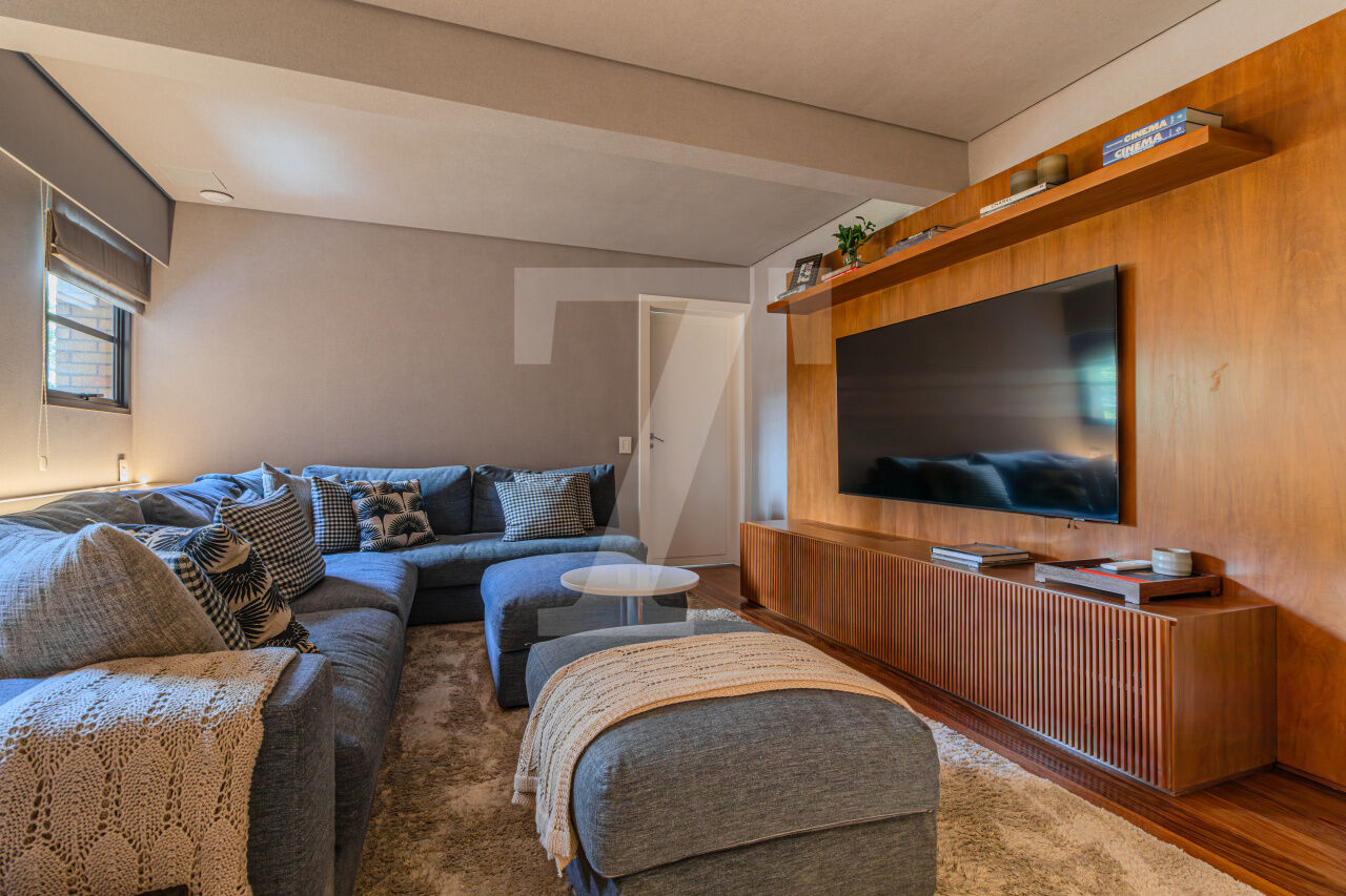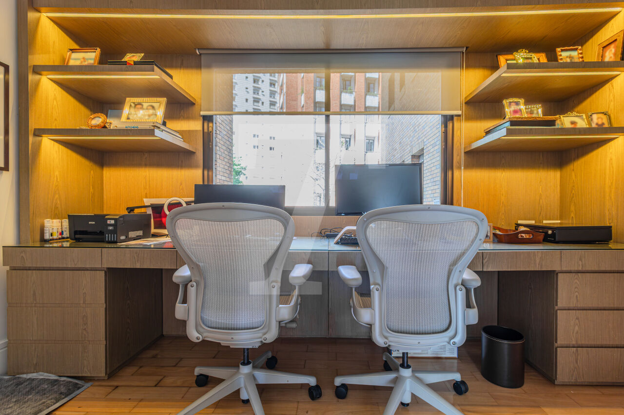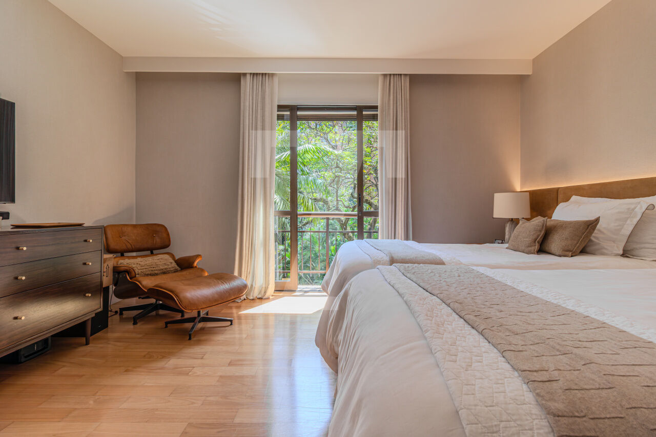 Com vista para o Clube Pinheiros e reforma assinada pelo escritório Nougalli + Serai, este apartamento à venda e locação no Jardim Europa apresenta materialidades de primeira linha, como carvalho americano, cabreúva e mármore Taj Mahal, sendo que a locação é feita toda mobiliada.