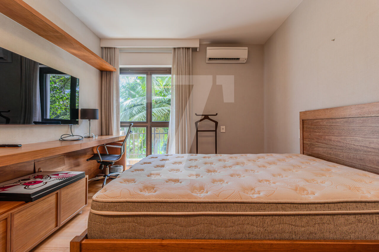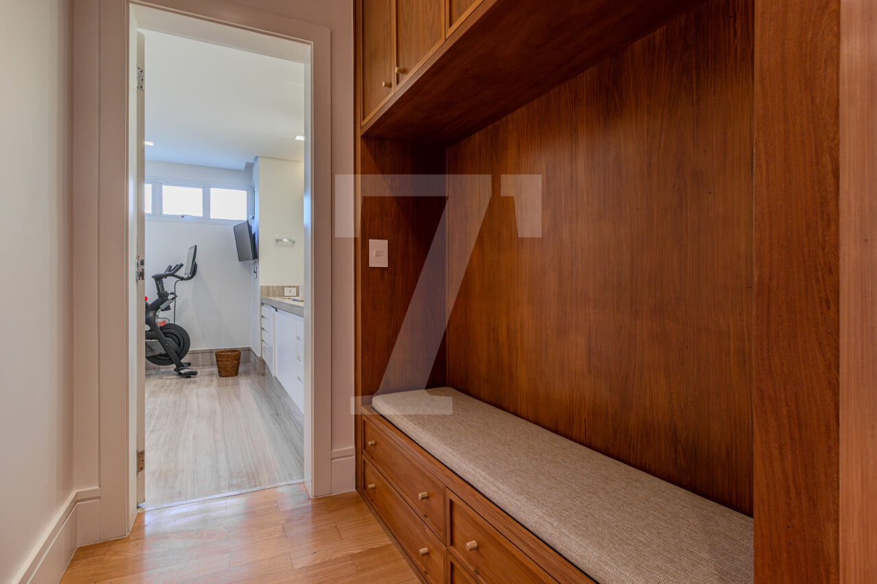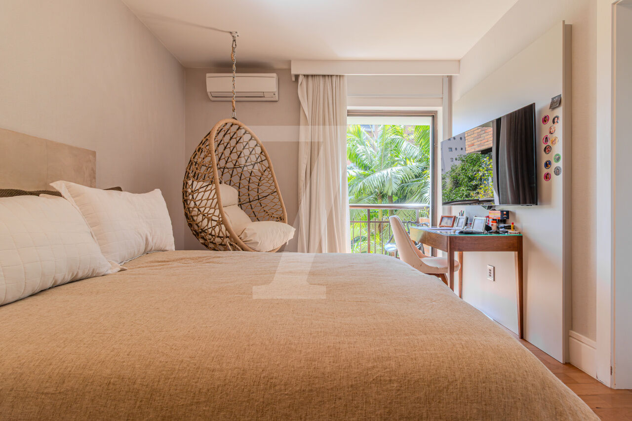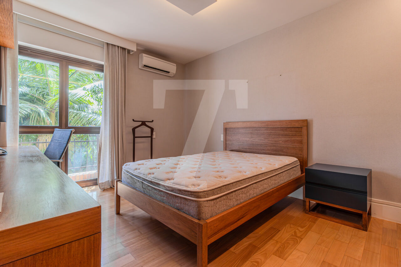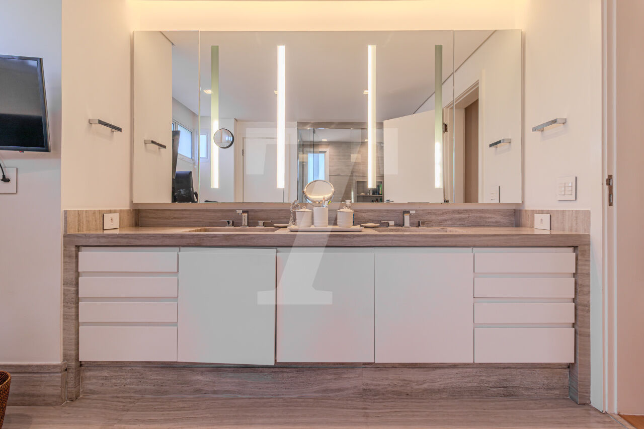 Com vista para o Clube Pinheiros e reforma assinada pelo escritório Nougalli + Serai, este apartamento à venda e locação no Jardim Europa apresenta materialidades de primeira linha, como carvalho americano, cabreúva e mármore Taj Mahal, sendo que a locação é feita toda mobiliada.