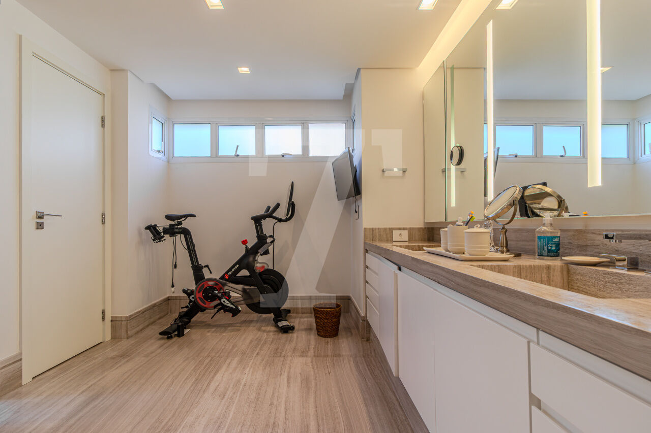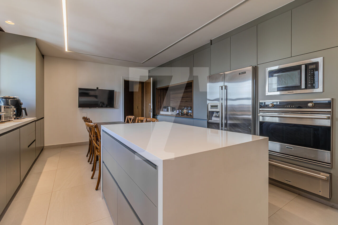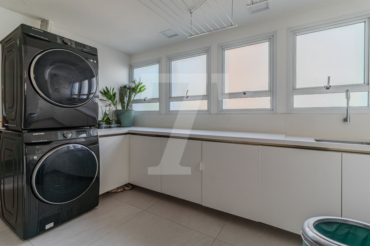 A área social é composta por salas integradas, além de uma varanda de 50 m² incorporada. Ainda inclui uma cozinha gourmet e uma cozinha planejada Florense com eletrodomésticos Viking. Para completar, a área íntima possui 4 suítes com varandas privativas, com destaque para a master com walk-in closet Augusto Moreno.