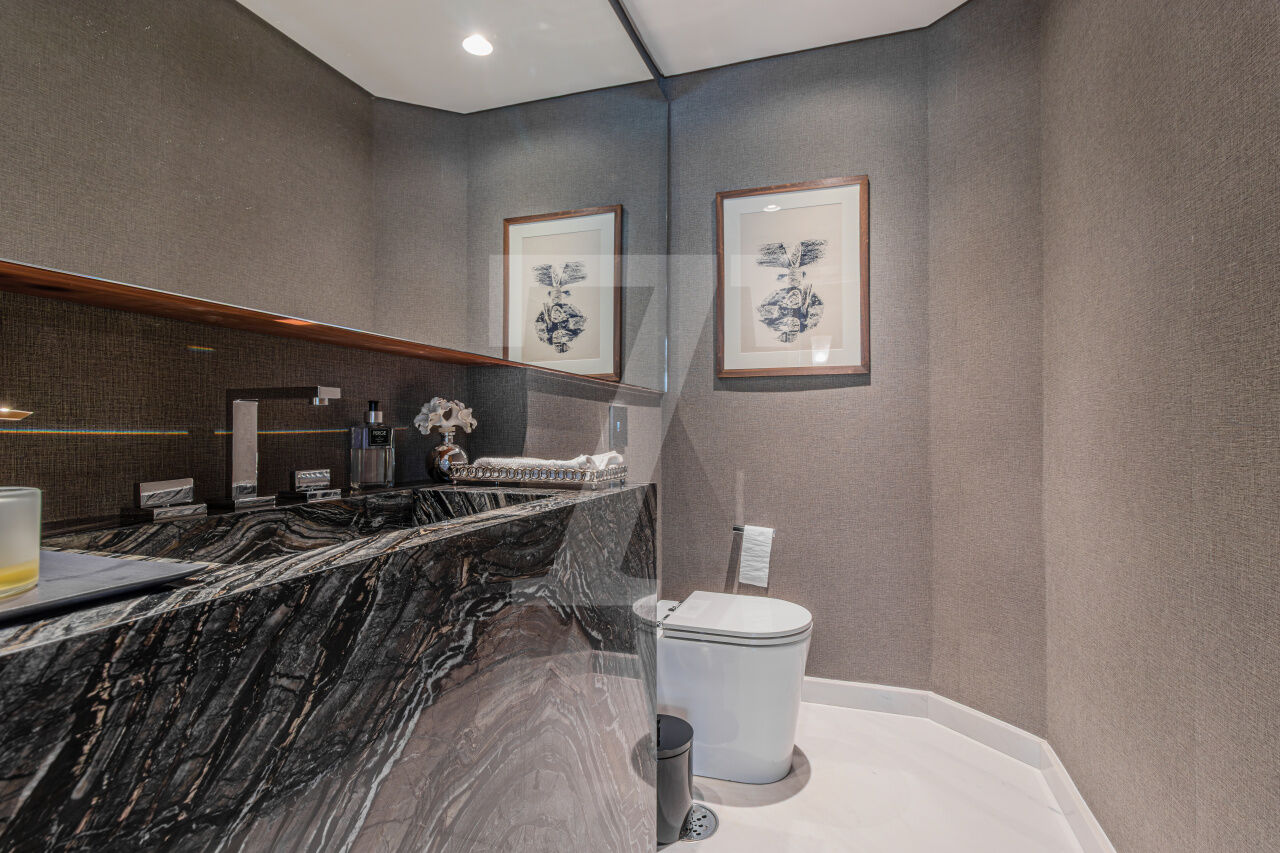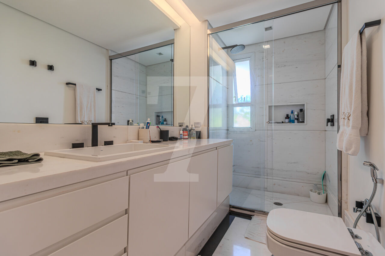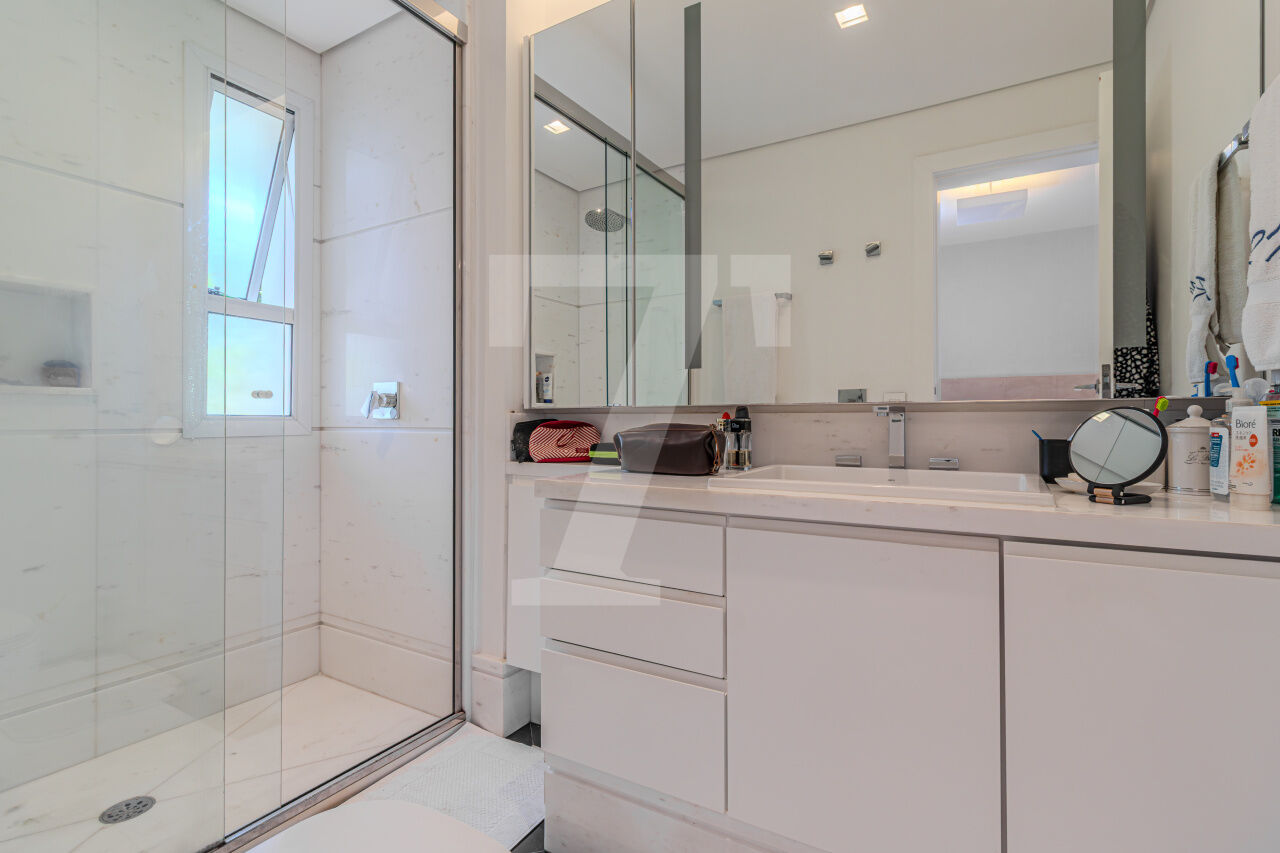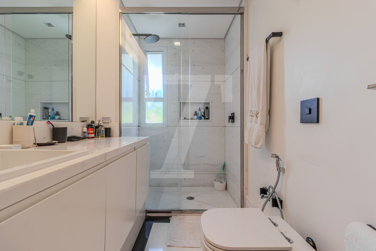 A área social é composta por salas integradas, além de uma varanda de 50 m² incorporada. Ainda inclui uma cozinha gourmet e uma cozinha planejada Florense com eletrodomésticos Viking. Para completar, a área íntima possui 4 suítes com varandas privativas, com destaque para a master com walk-in closet Augusto Moreno.
