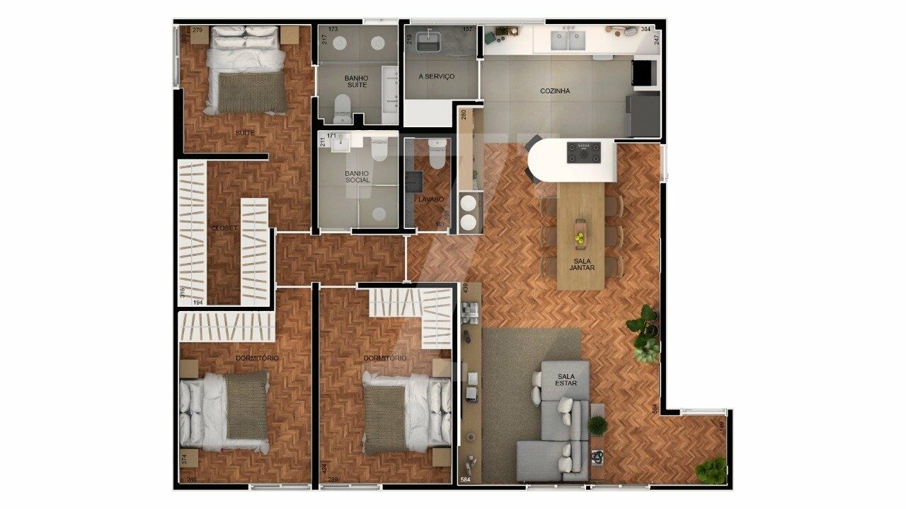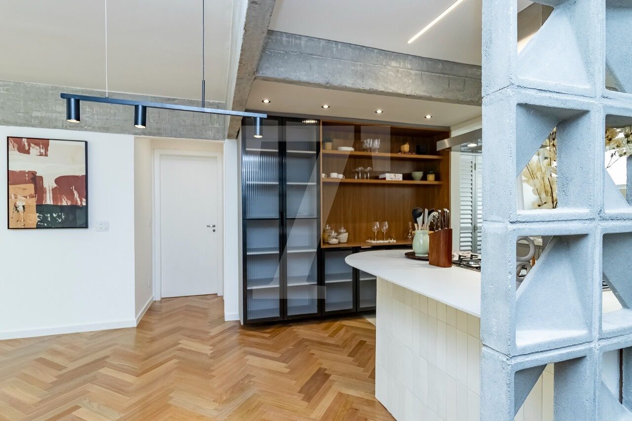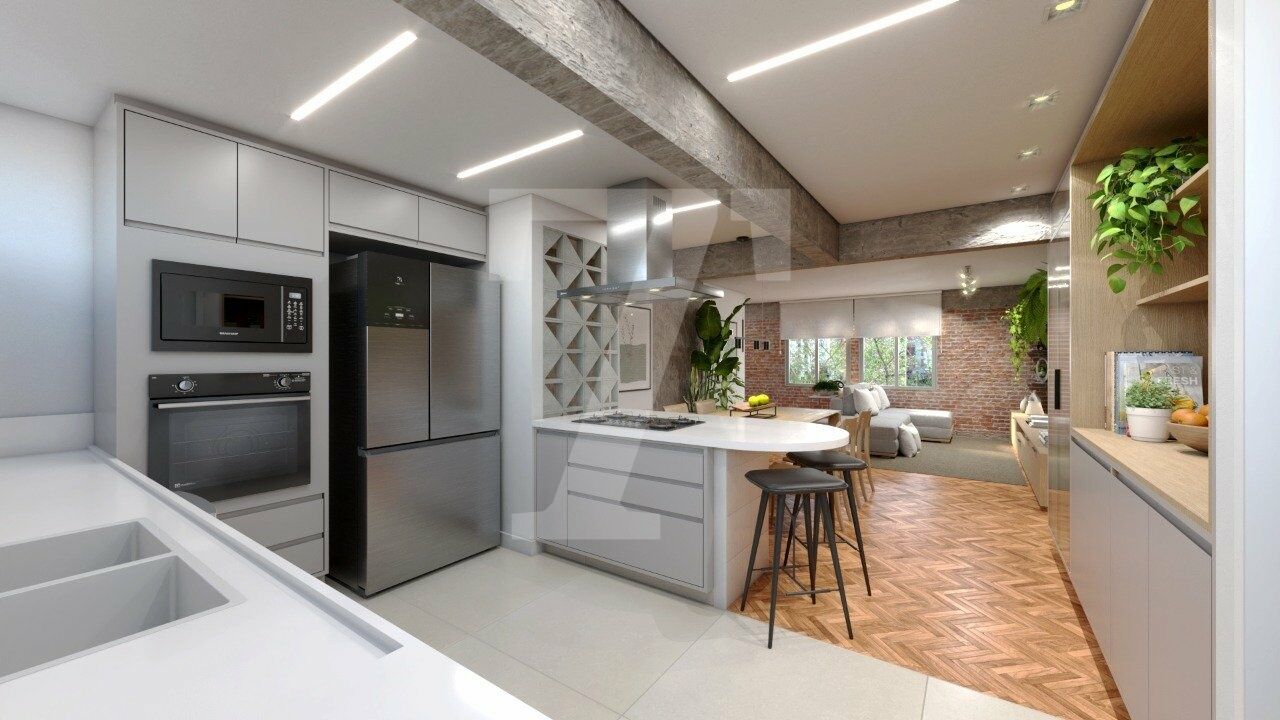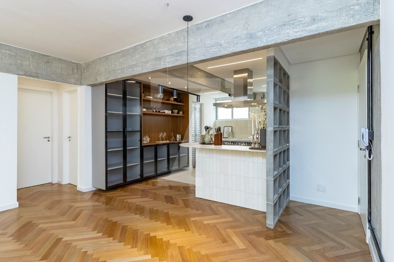 A planta original, já muito funcional, facilitou a transformação do espaço. O resultado é um apartamento moderno e aconchegante, com uma bela suíte, dois dormitórios atendidos por um banheiro social, lavabo e uma ampla sala integrada à cozinha. Há ainda a possibilidade de unir o terceiro dormitório à área social, criando um living ainda mais espaçoso.