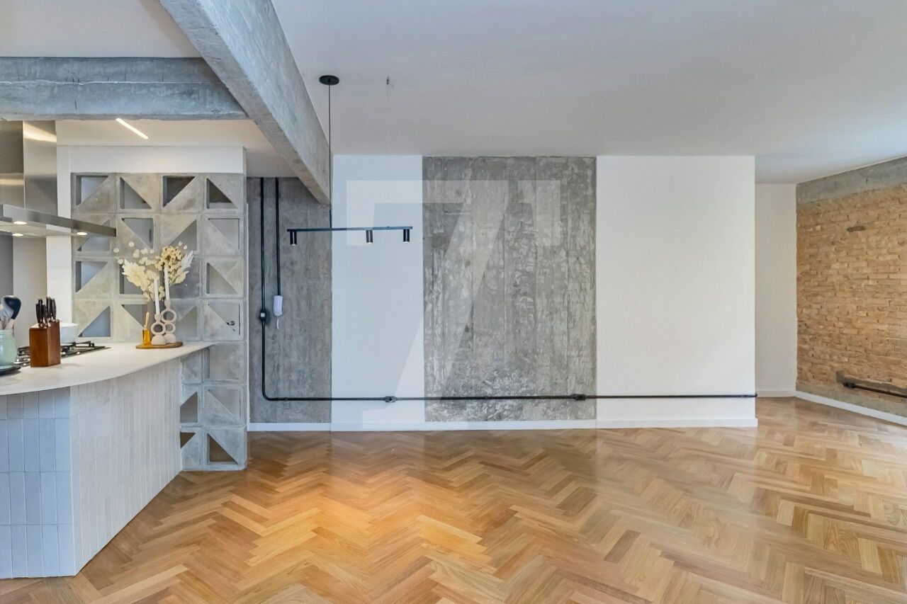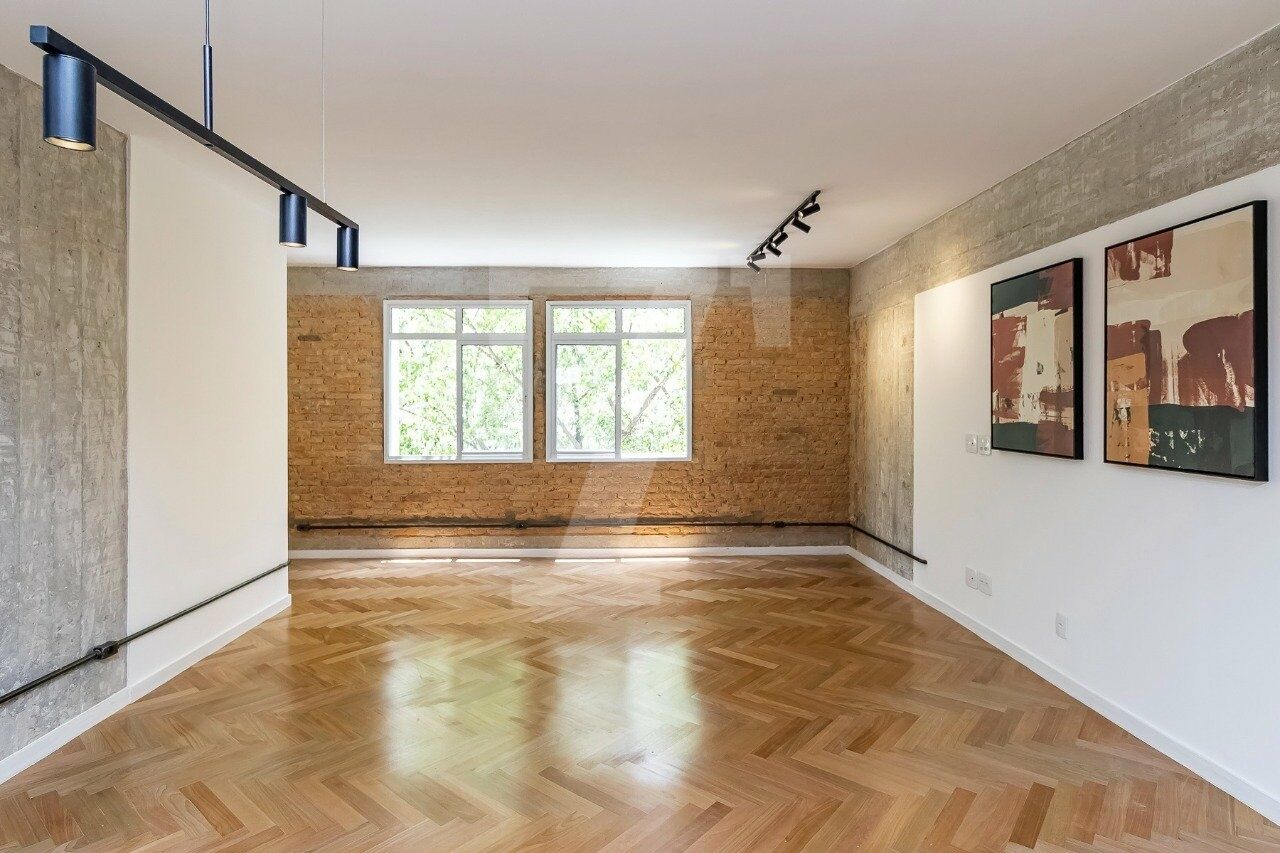 Ao iniciar a reforma, tivemos uma surpresa encantadora: as paredes da sala em tijolo maciço. Para completar, vigas e pilares ficaram estrategicamente posicionados para permanecer aparentes, trazendo um toque brutalista ao projeto assinado pela Arq. Tamires Souza.