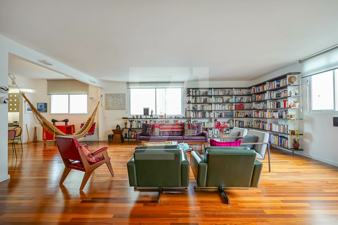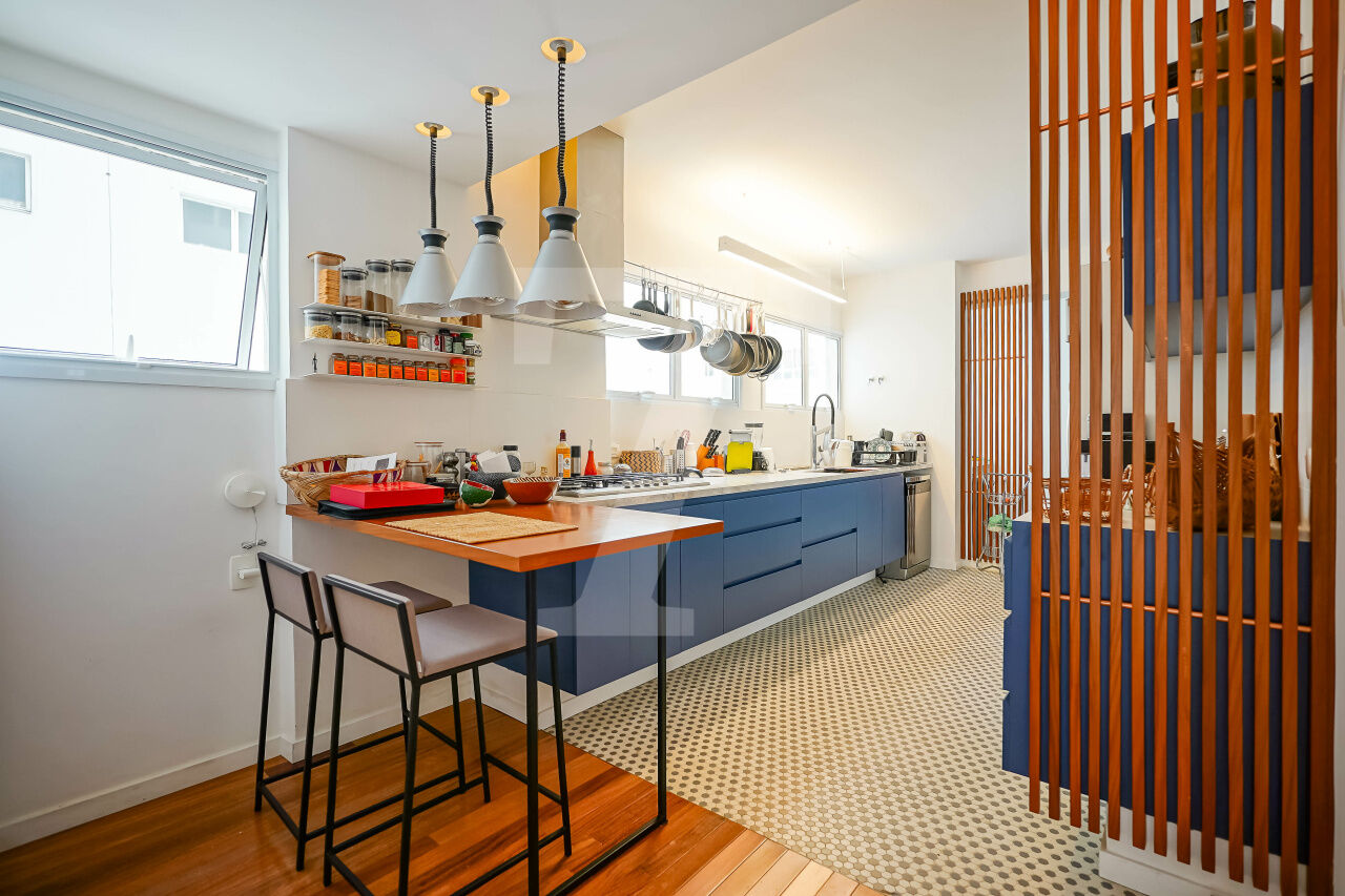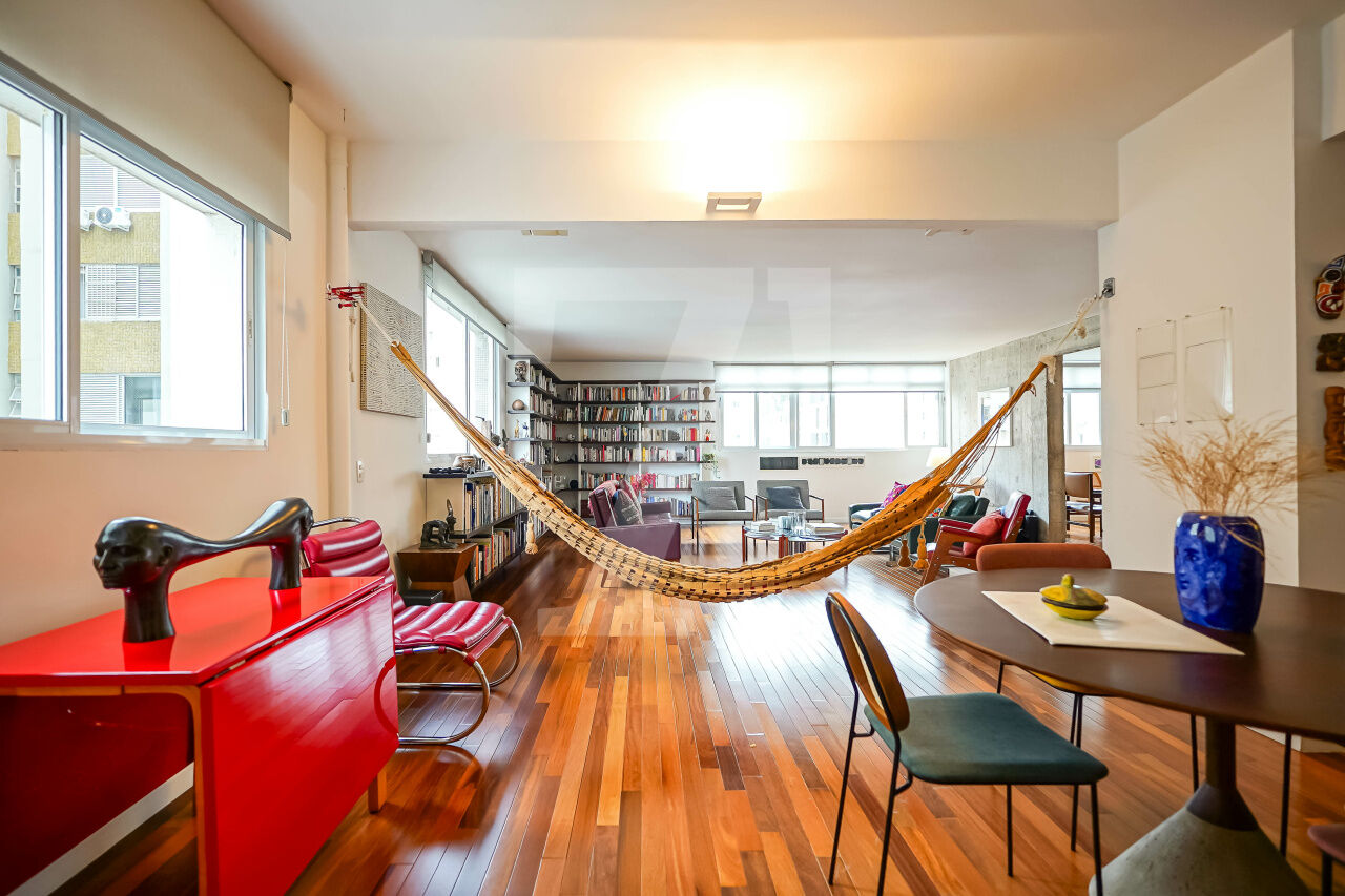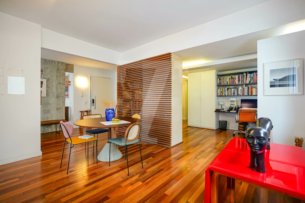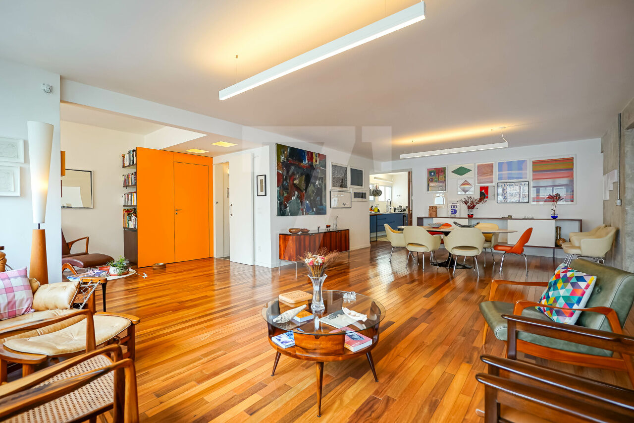 A fusão de dois apartamentos criou um imóvel absolutamente diferente, com atmosfera descolada. A reforma assinada por arquitetos valoriza a claridade e a amplitude, com piso de madeira lindo e bem conservado. Um apê que foge do óbvio e entrega uma experiência de morar especial.