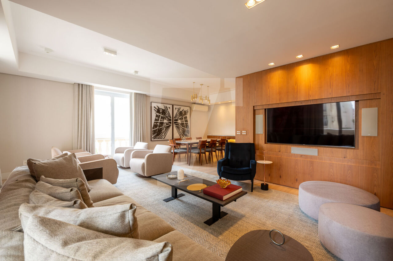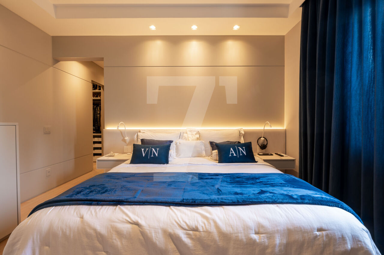 A planta é inteligente e generosa nos espaços. A varanda e sua balaustrada se destacam logo na chegada: ampla, robusta, com bom espaço para mesa, estar, e banhada pelo sol da tarde. As salas de estar e jantar se integram de forma fluida à varanda, criando um ambiente único para receber amigos e, ao mesmo tempo, acompanhar a rotina das crianças. Já na parte íntima, a sala íntima de TV distribui para as suítes e concentra a convivência da família - ideal para quem tem filhos pequenos e gosta de ter todo mundo por perto, mas com a privacidade bem organizada. A área de serviço também foi pensada com critério: ampla, funcional e com dependência completa de serviço.