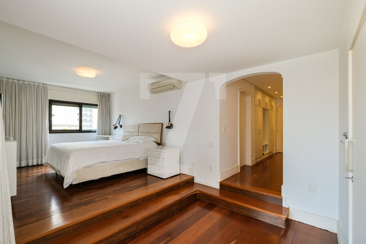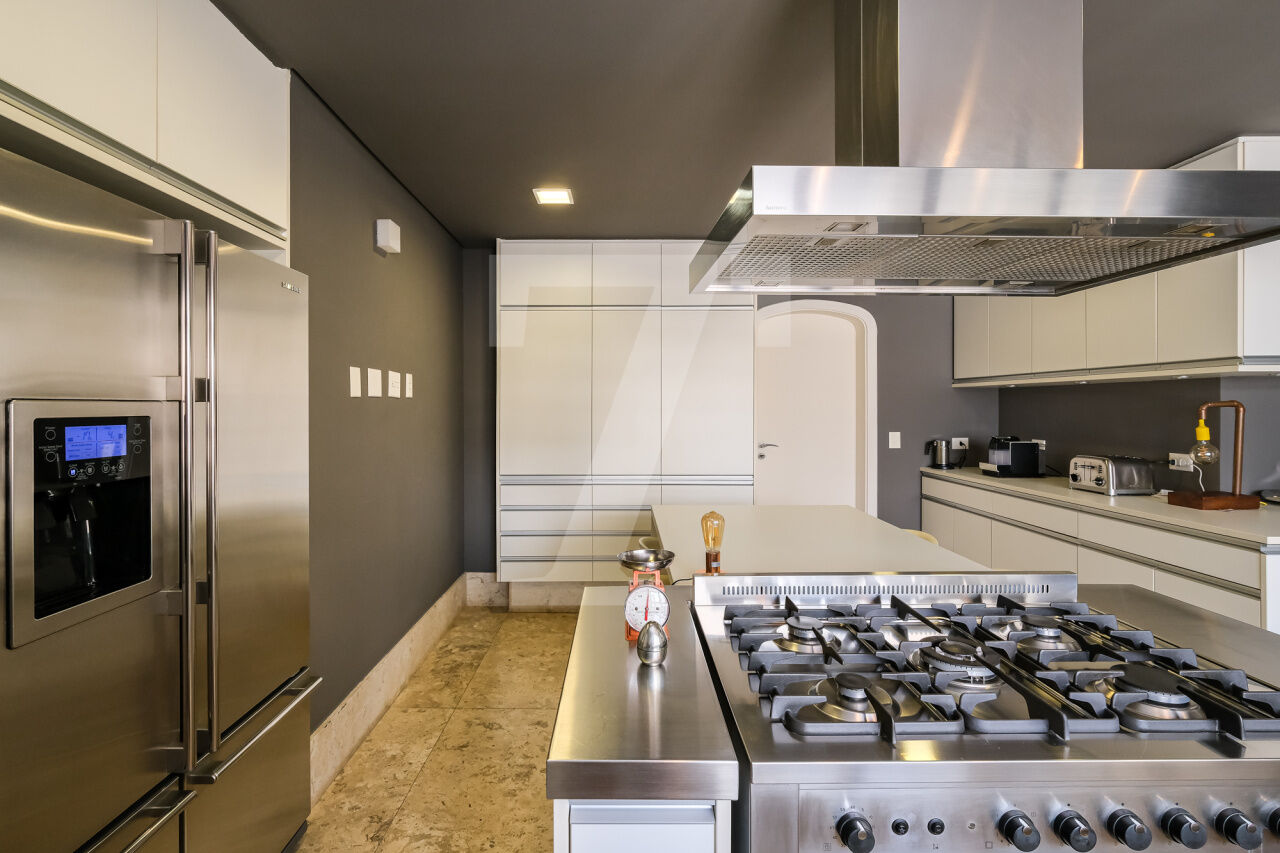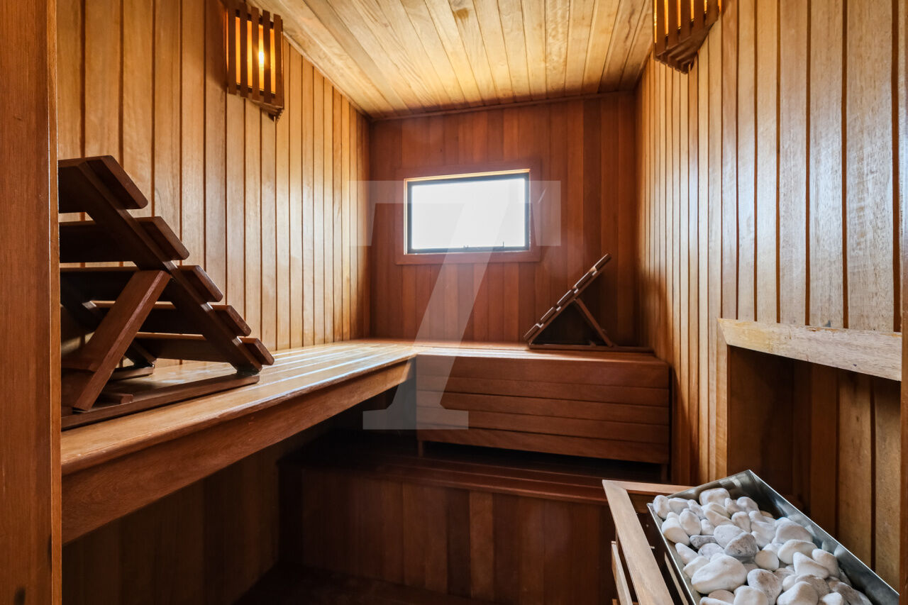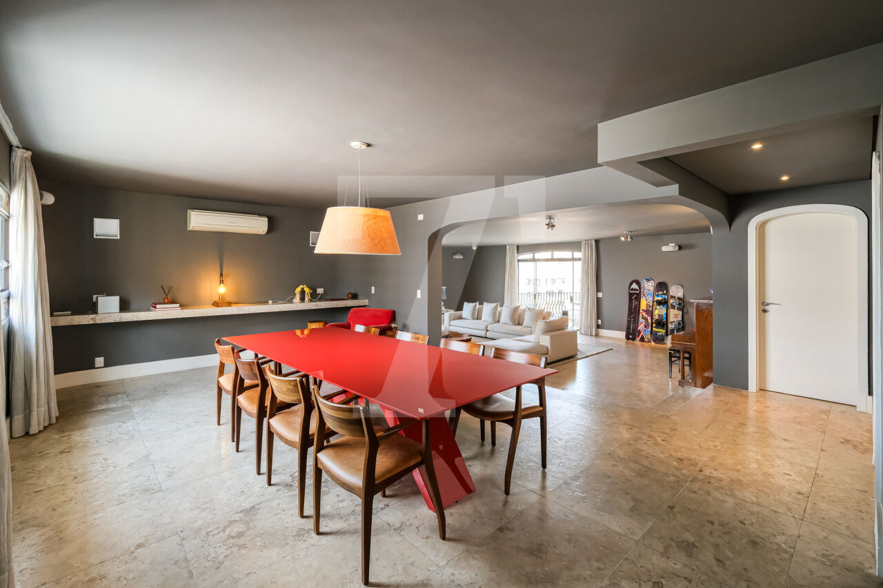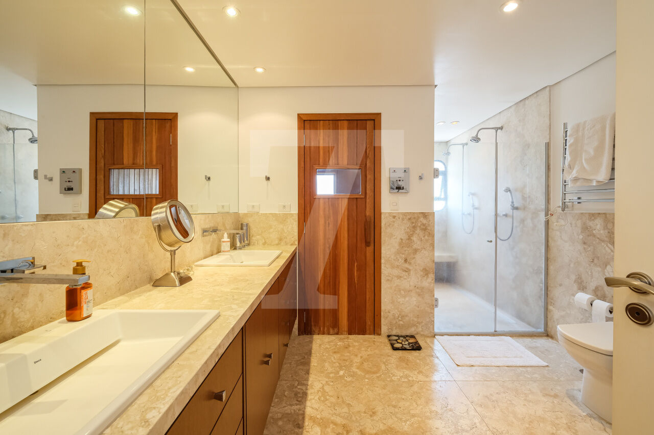 468.00 m² de área útil, 3 suítes, ampla sala de jantar, varanda e escritório, armários planejados nos dormitórios e cozinha. Ar condicionado em todos os cômodos, sauna particular no apartamento. Condomínio com lazer completo, academia, brinquedoteca, piscina e 4 vagas de garagem.