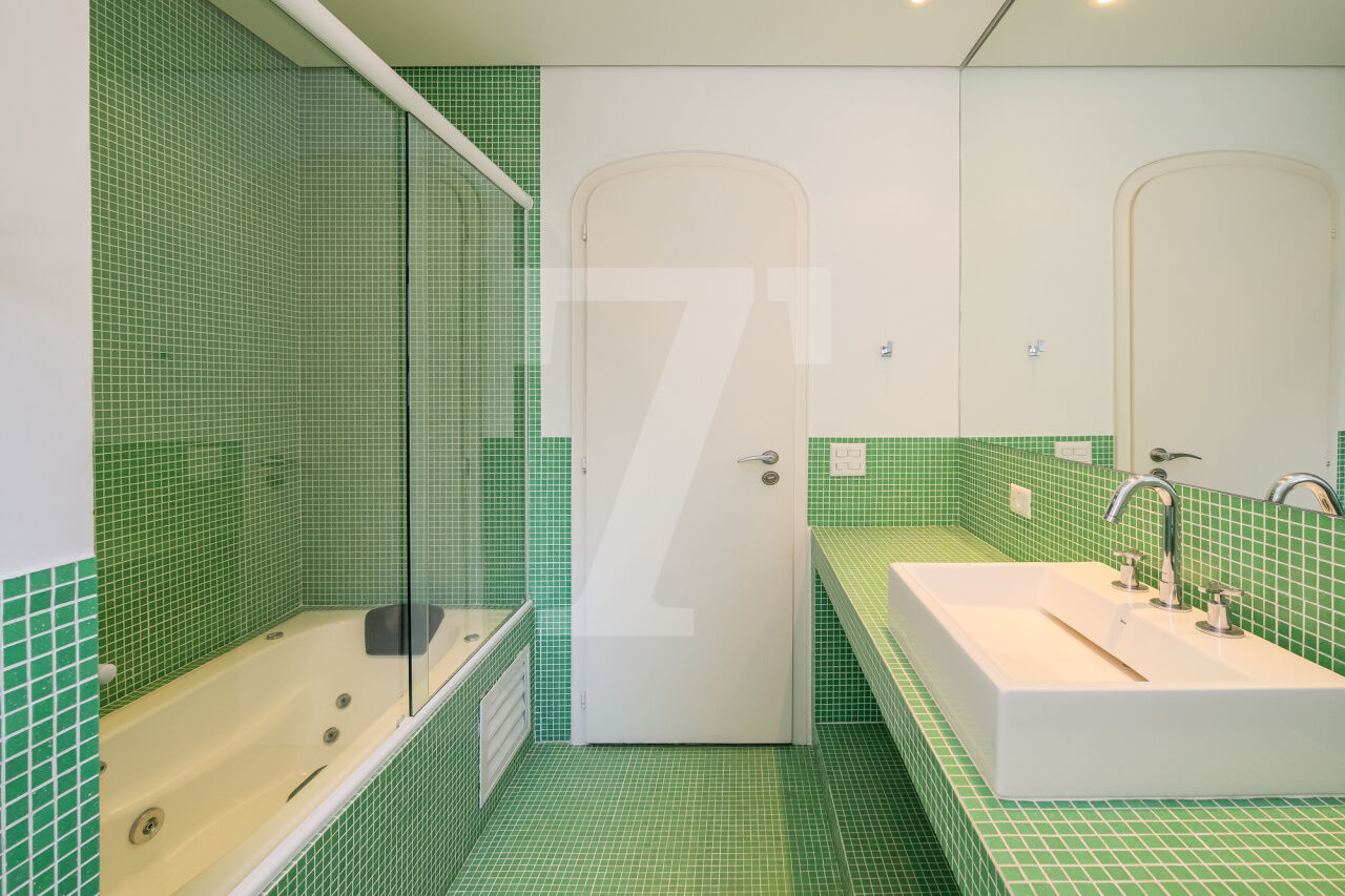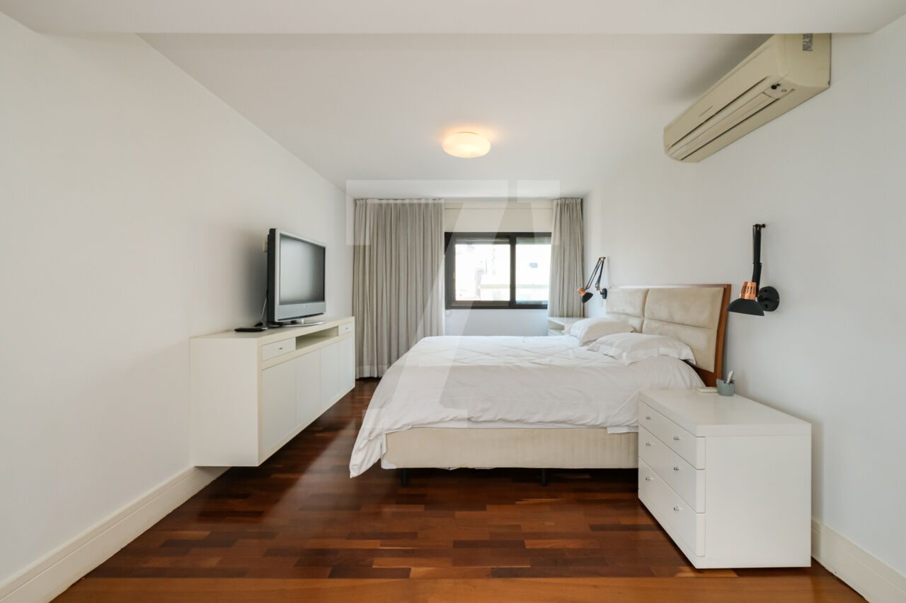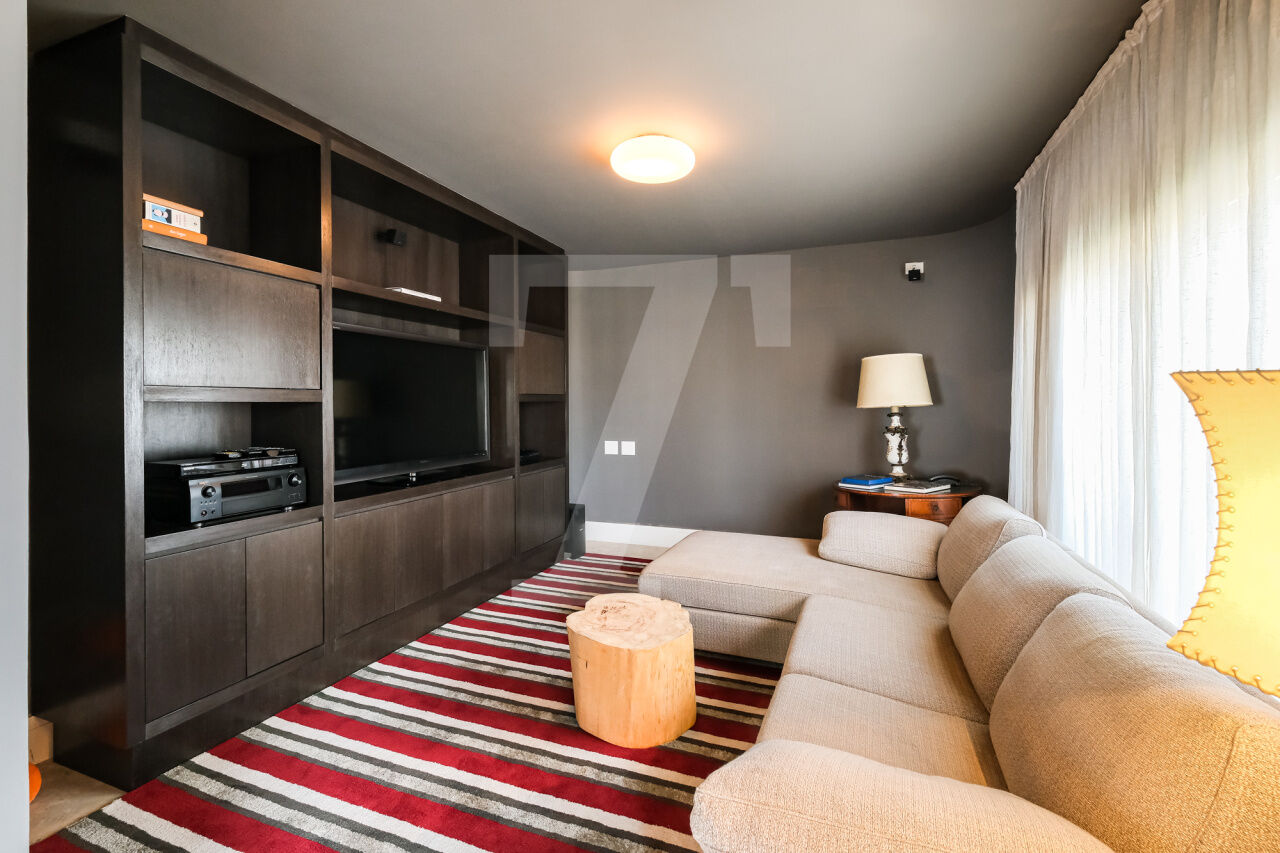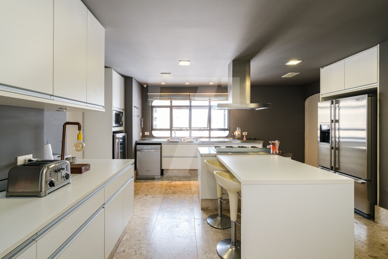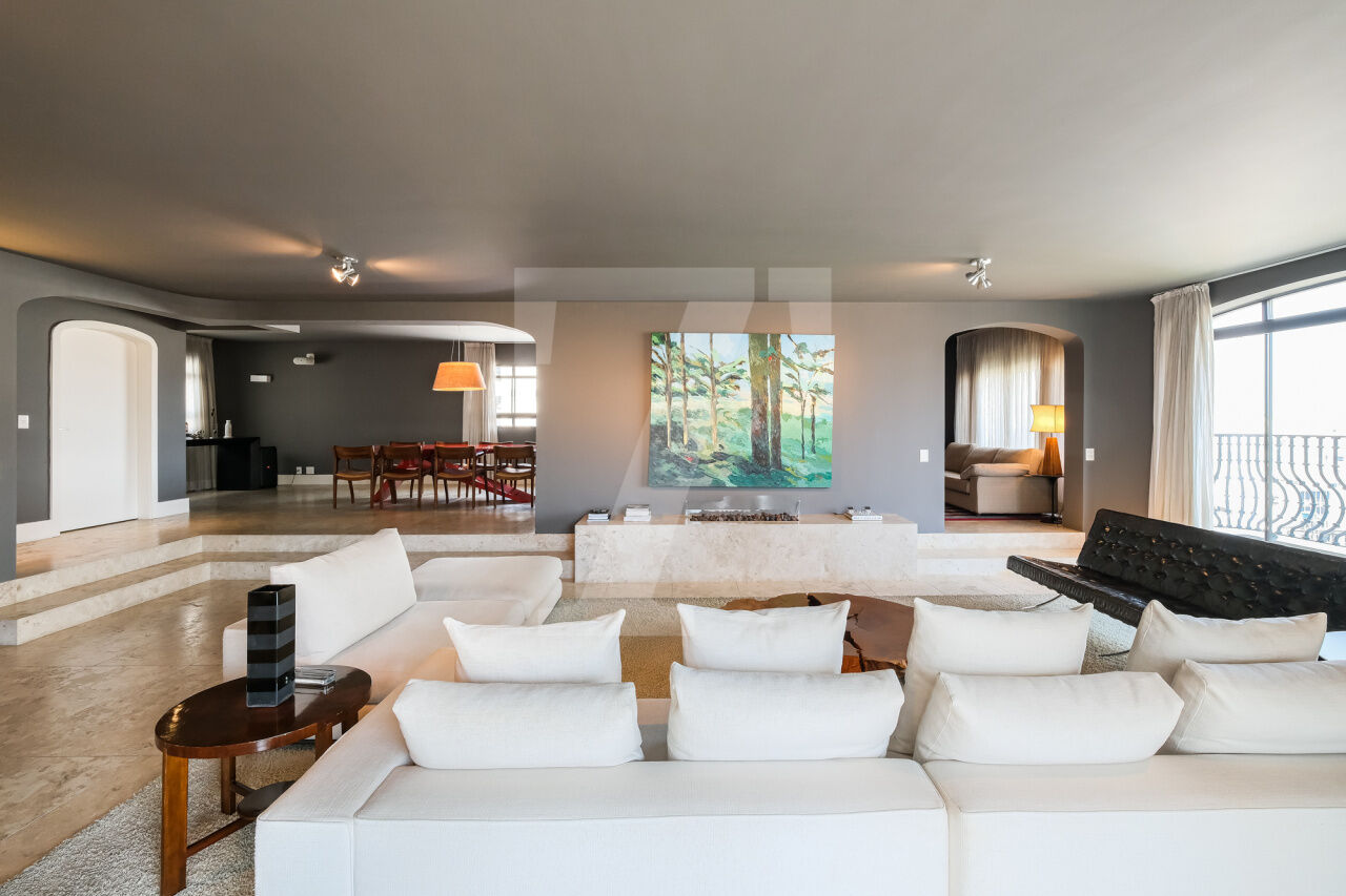 468.00 m² de área útil, 3 suítes, ampla sala de jantar, varanda e escritório, armários planejados nos dormitórios e cozinha. Ar condicionado em todos os cômodos, sauna particular no apartamento. Condomínio com lazer completo, academia, brinquedoteca, piscina e 4 vagas de garagem.