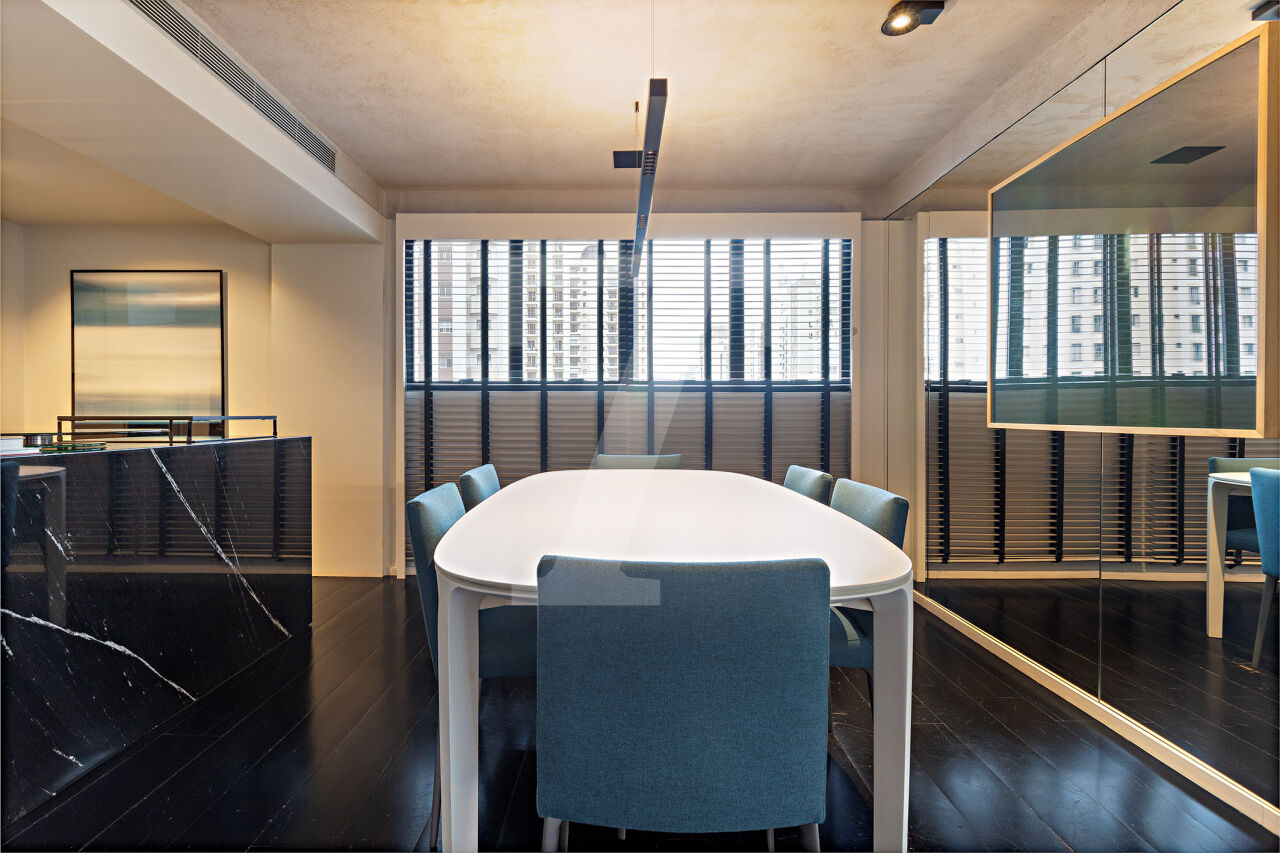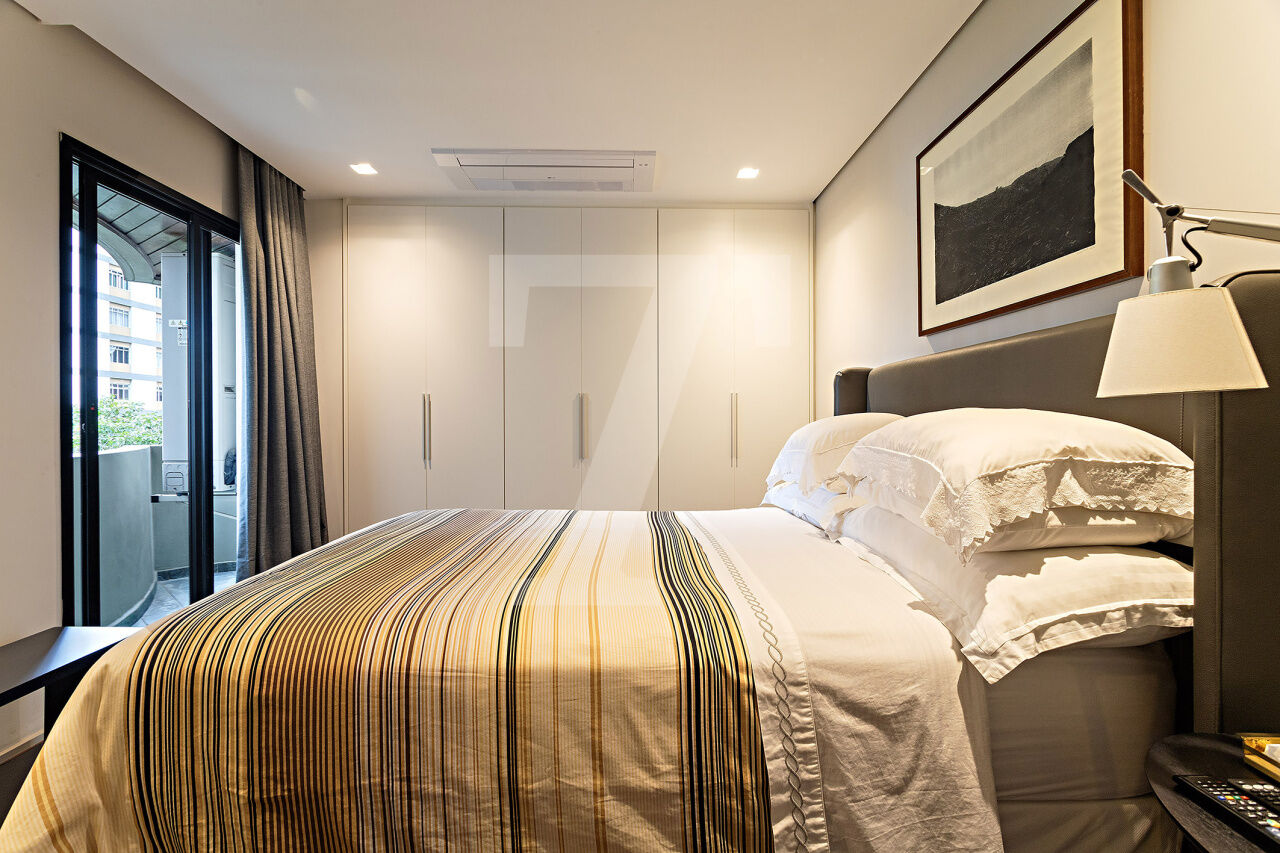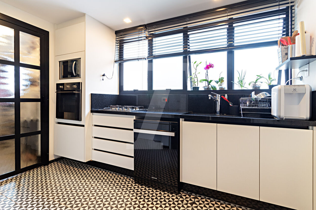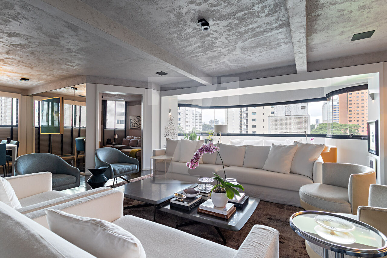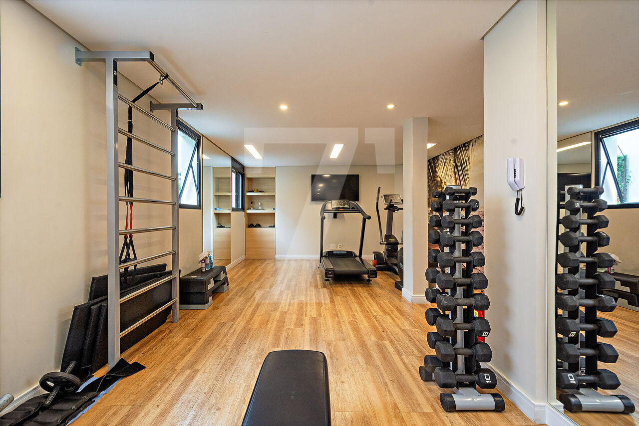 A cozinha, dividida em ambientes integrados, apresenta um espaço gourmet sofisticado, ideal para receber com elegância. Totalmente equipado com ar-condicionado central VRF e automação completa, este apartamento oferece o equilíbrio perfeito entre conforto e modernidade em cada detalhe.