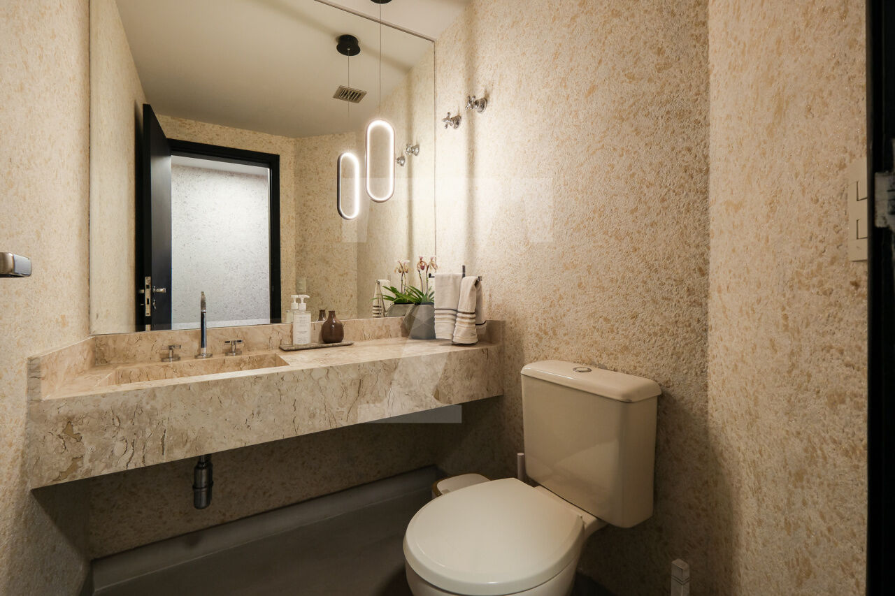 Características do imóvel: ar condicionado, área de serviço, armário embutido, cozinha planejada, hall privativo, lavabo, sacada, sala jantar e suíte master. Infraestrutura do condomínio: academia, acessibilidade, depósito, elevador de serviço, entrada de serviço independente, piscina, playground, portaria24 hrs, salão de festas e zelador. Número de vagas: 3.