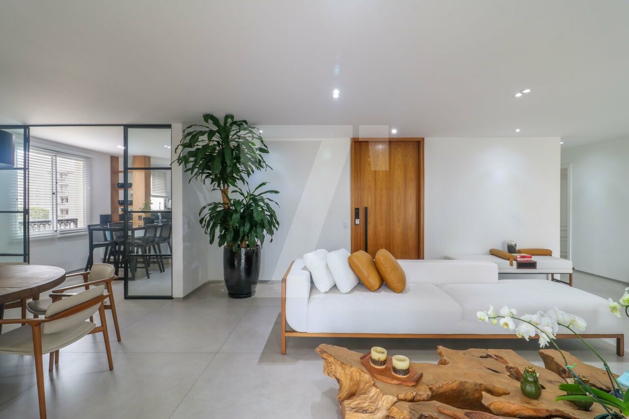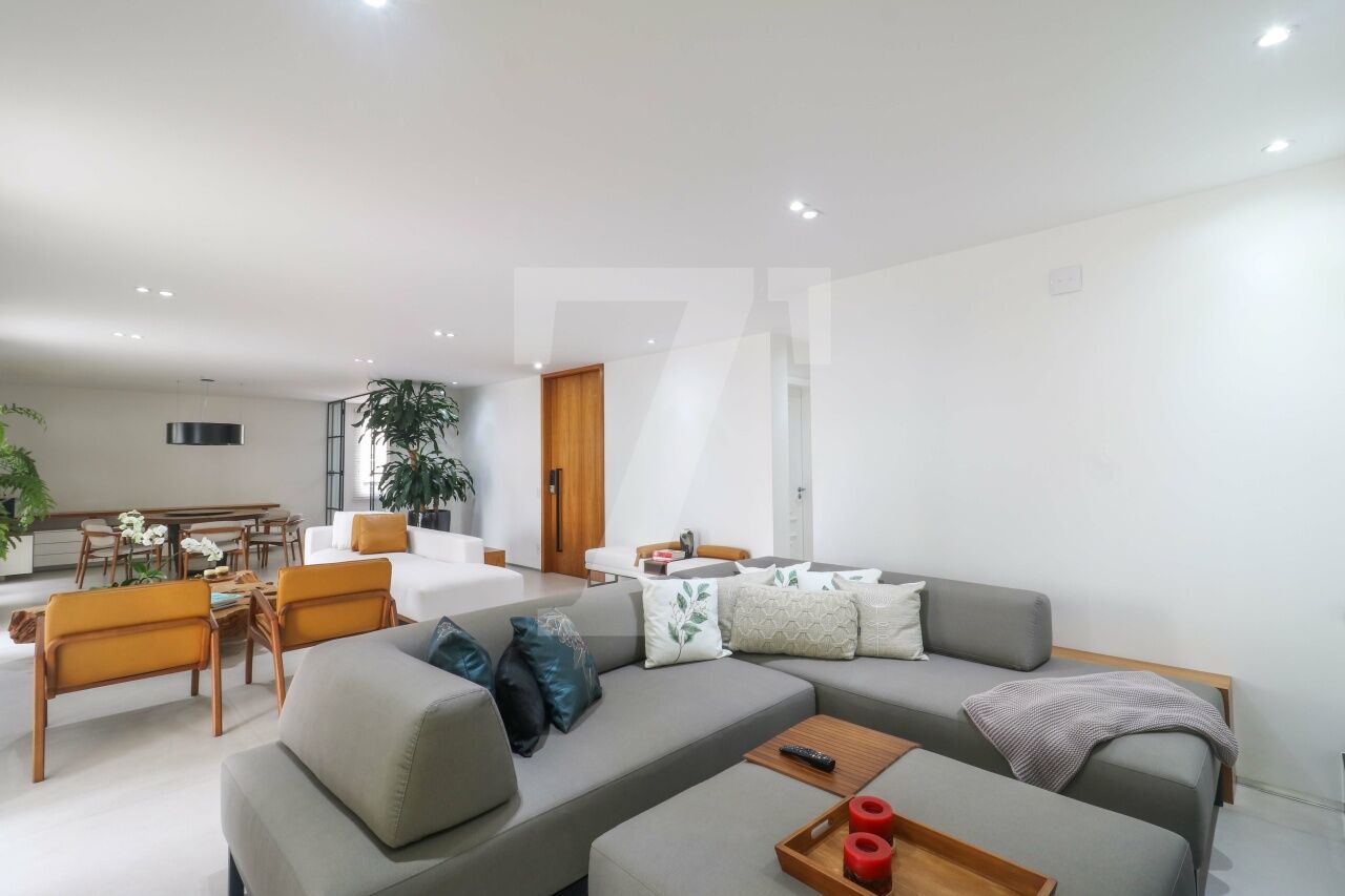 Apartamento à venda em Moema Índios, localizado no cobiçado Condomínio Piazza Della Fortezza. São 250 m² bem distribuídos, com excelente planta. Varanda generosa, 4 suítes, 5 vagas de garagem. A reforma trouxe soluções para uma vida mais contemporânea e deu amplitude e leveza para o living. A sala de almoço e a cozinha foram integradas; a parede de acesso à sala de jantar deu lugar a uma porta de correr que permite que os moradores optem ou não pela integração dos espaços. A decoração tem base neutra, moderna e acabamentos impecáveis. Armários planejados de alta qualidade, ar-condicionado em todos os ambientes. O condomínio com 2 torres, com 1 apartamento por andar. Infraestrutura de lazer completa, com piscinas (adulto, infantil e aquecida), quadra, salão de festas, espaço gourmet com churrasqueira, sala de ginástica, sauna, salão de jogos e playground. Segurança 24h e gerador.