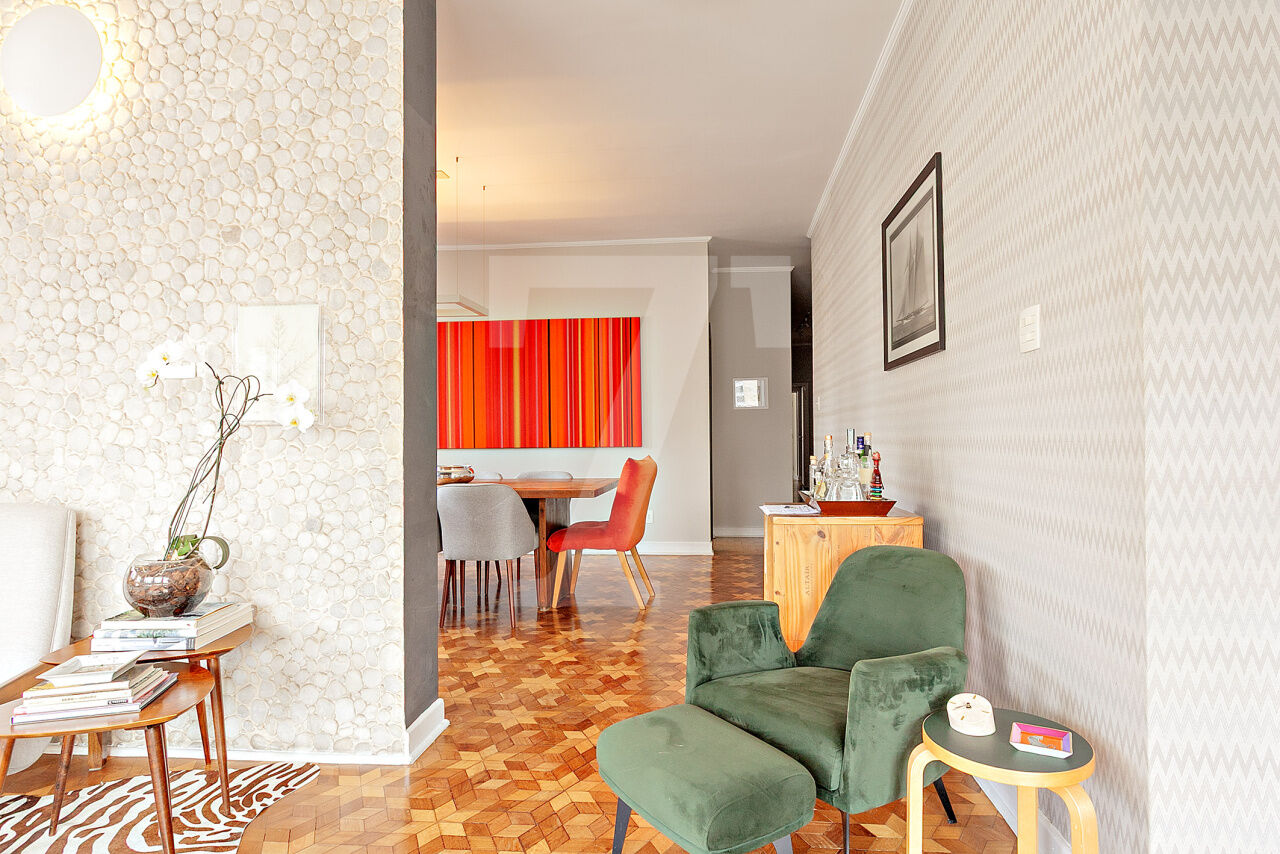 "Apartamento à venda no Paraíso, em um prédio com ótimo recuo, cercado de luz natural e ambientes amplos. A área social integra living, sala de jantar e grandes janelas que valorizam a vista urbana. A cozinha reformada e funcional se conecta à área de serviço completa. A planta oferece dormitórios confortáveis, incluindo uma suíte bem iluminada, com closet Sr. e Sra., além de ótimos espaços de armazenamento.