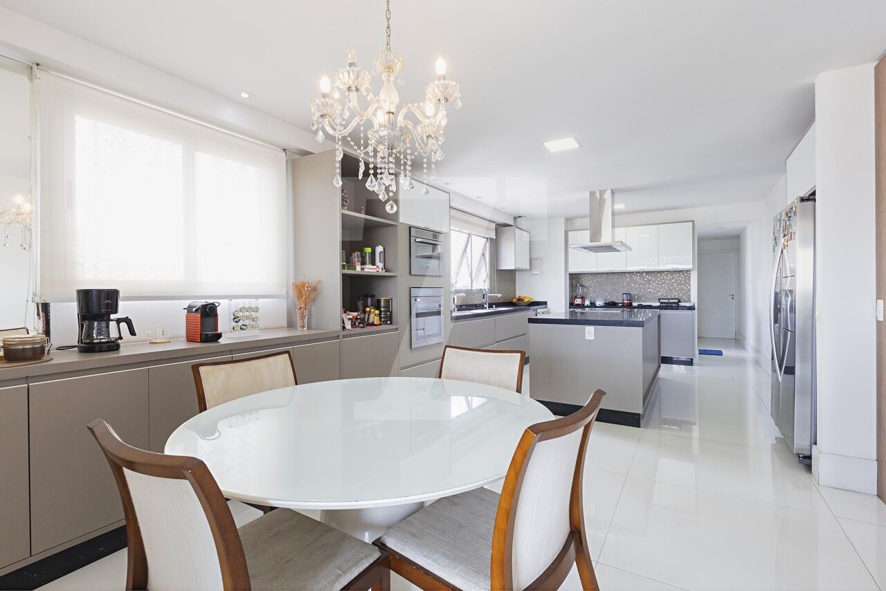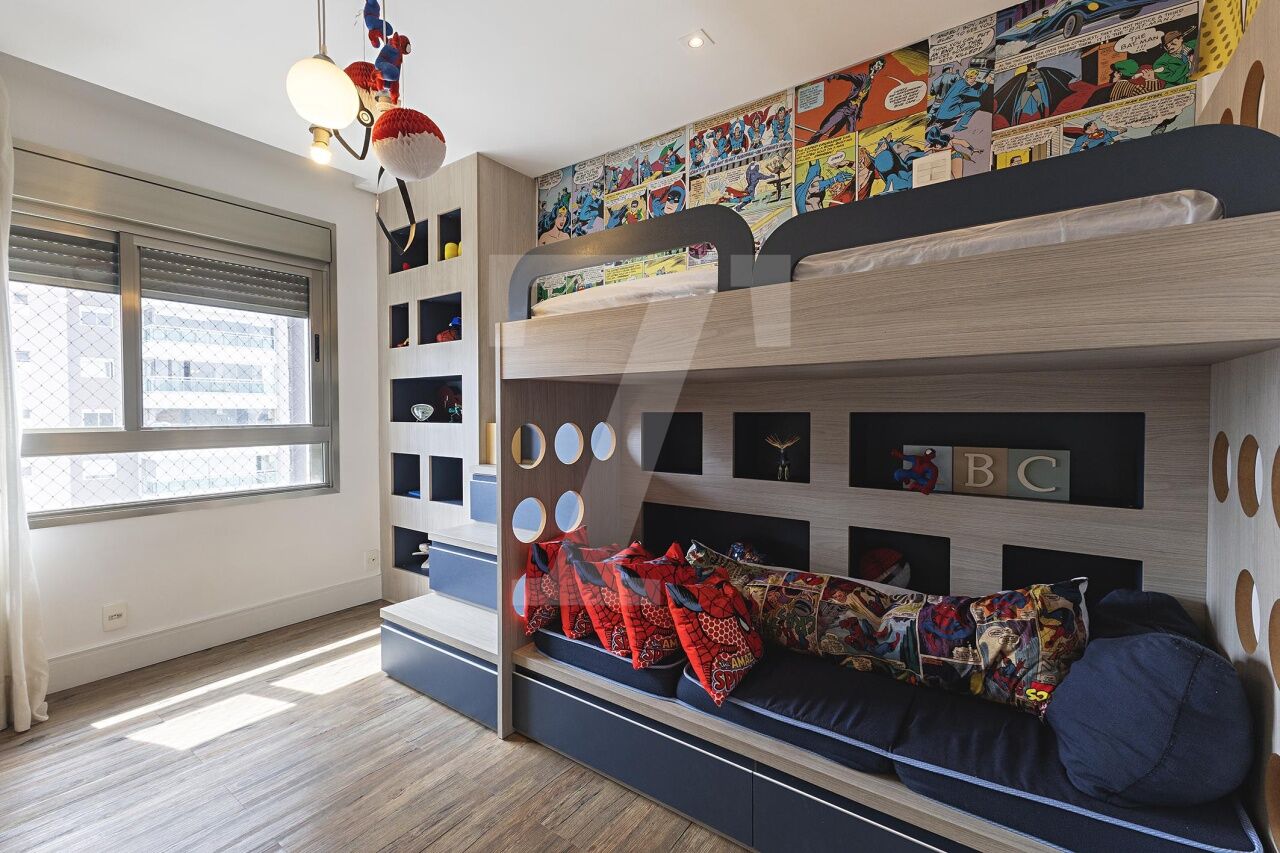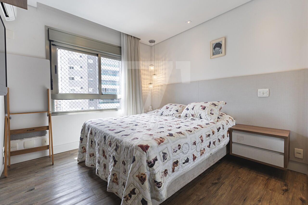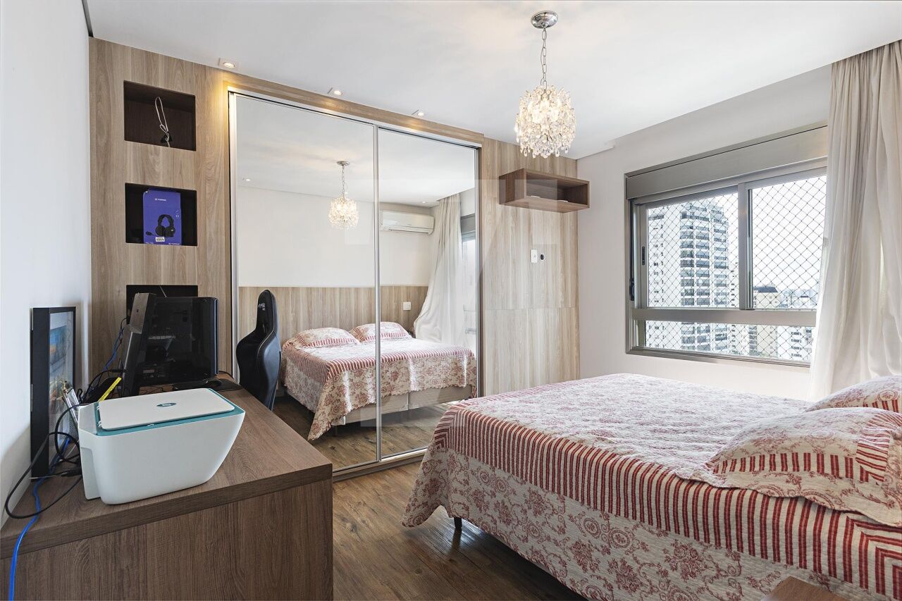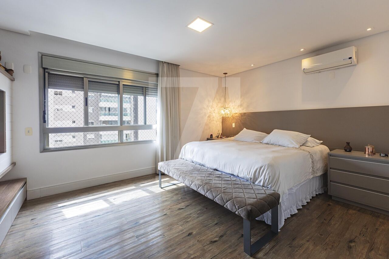 Localizado em Campo Belo, este apartamento em andar alto oferece uma vista definitiva e ambientes integrados que privilegiam conforto e bem-estar. A área social é composta por um living conectado a uma varanda extensa, climatizada e equipada com espaço gourmet, além de uma cozinha espaçosa integrada à sala de almoço, ideal para momentos de convivência. A área íntima dispõe de quatro suítes climatizadas, sendo a master com sala de banho e walk-in closet. O condomínio oferece lazer completo, garantindo praticidade e diversas opções de entretenimento aos moradores.