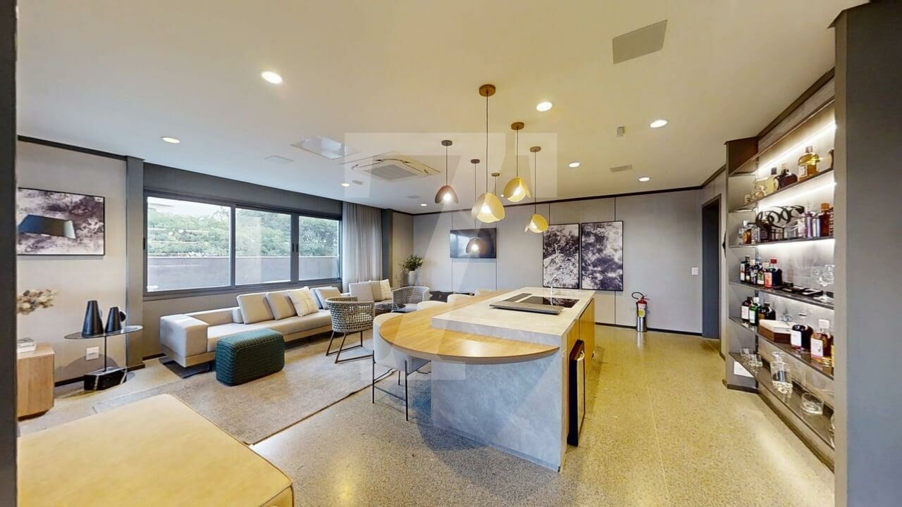 integração da sala de estar, cozinha americana varanda gourmet tornam a área social única tanto para o convívio diário quanto
