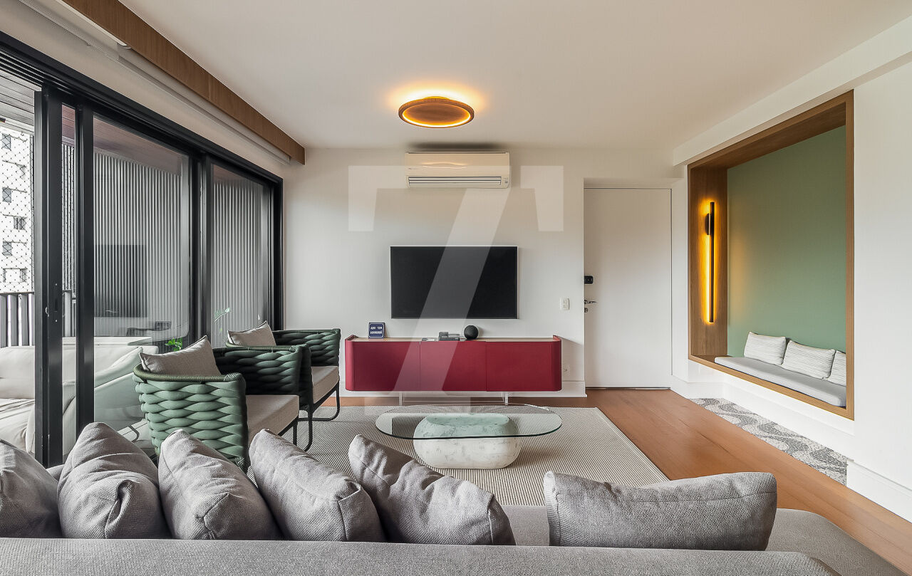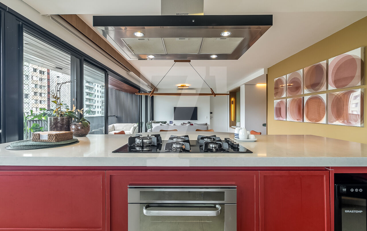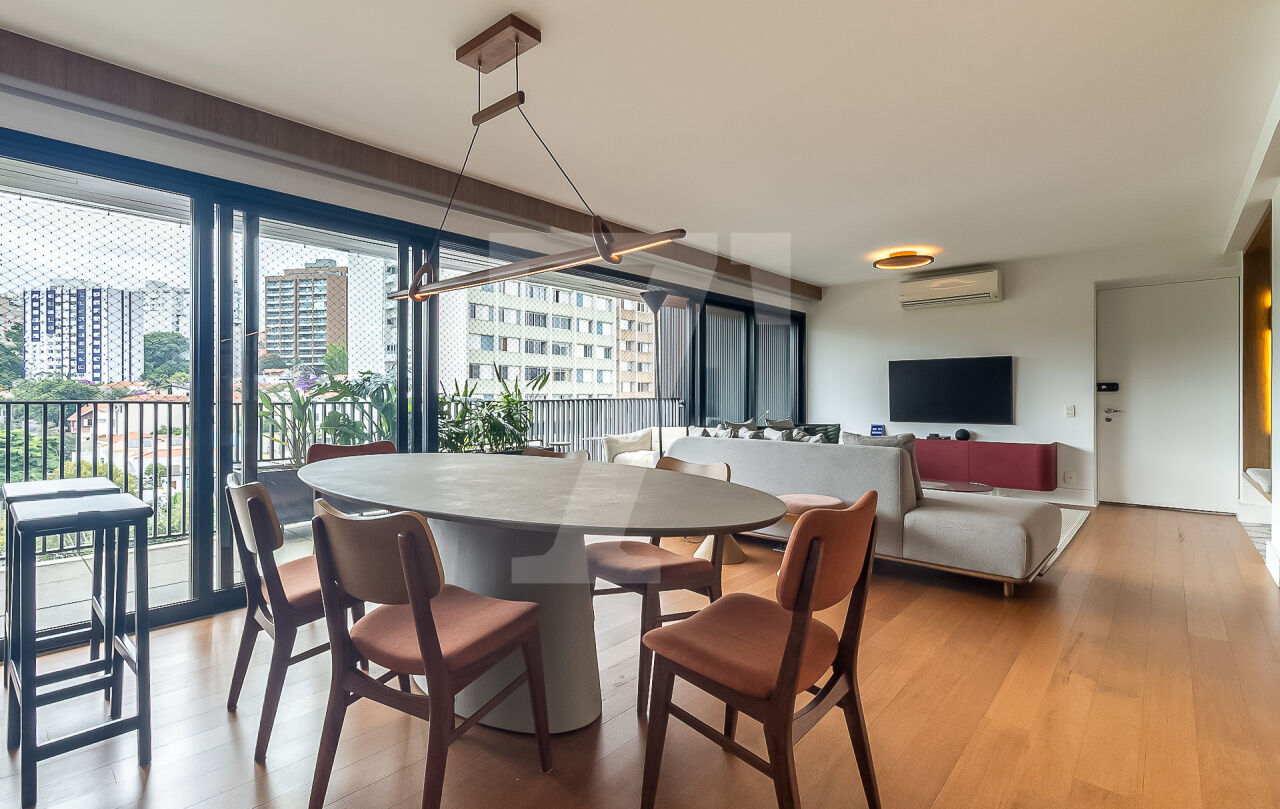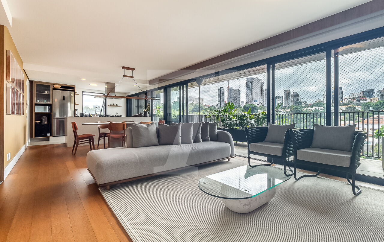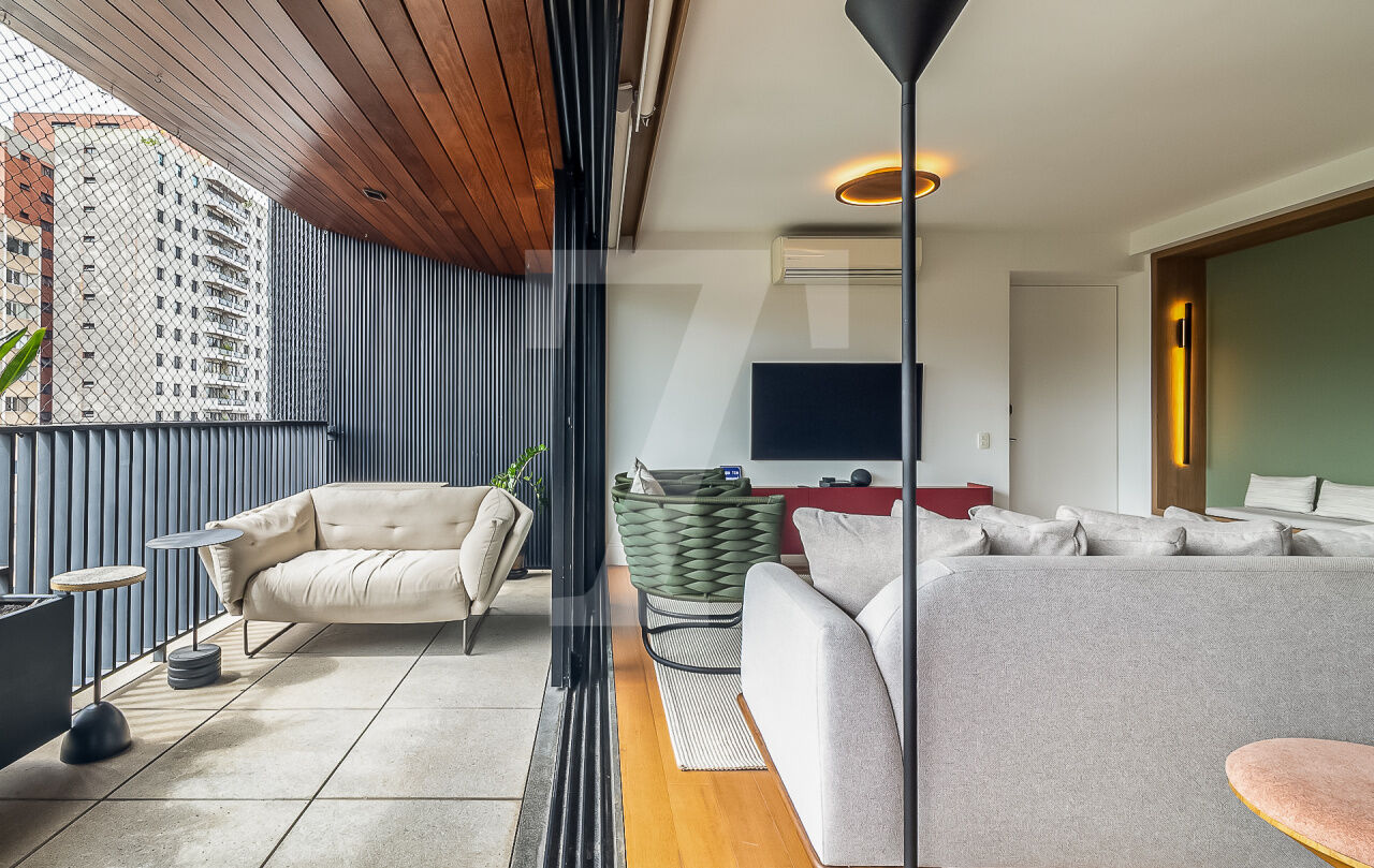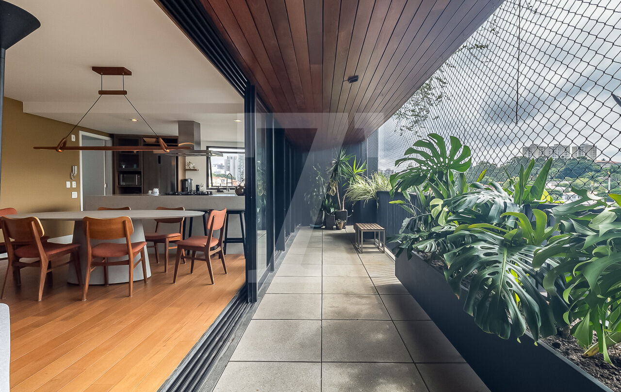 Sua varanda é pura serenidade. Com vista para a paisagem urbana da Vila Madalena, é o local perfeito para receber amigos e familiares. À noite, torna-se um cenário para jantares ou simplesmente para apreciar a cidade que nunca dorme.