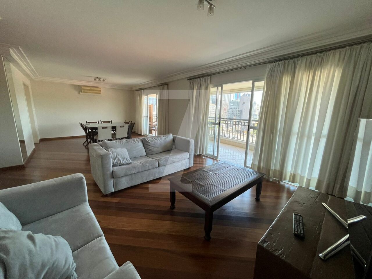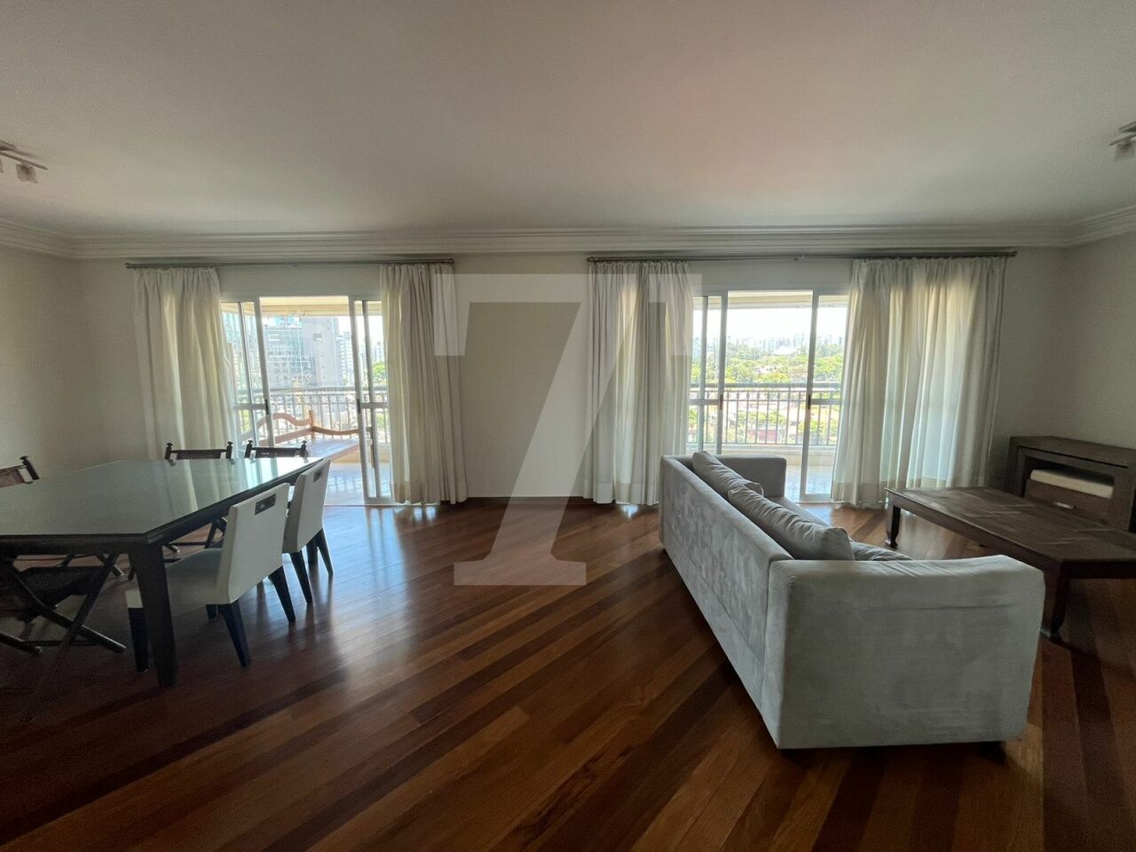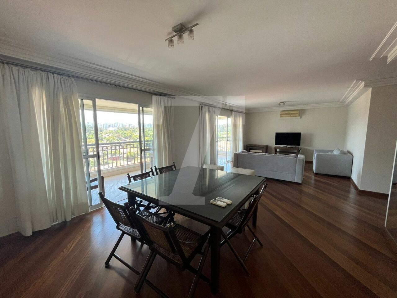 A planta conta com 212 m² de área útil, uma sala ampla que acomoda 3 ambientes, e ainda conta com uma varanda que disfruta uma vista espetacular.