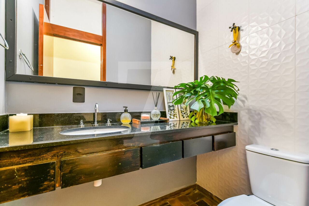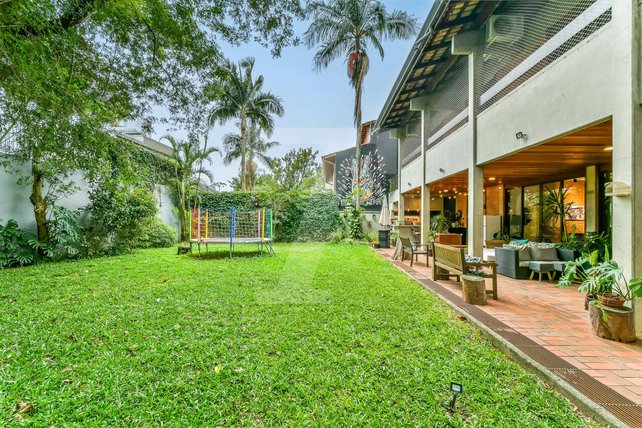 Com quatro suítes, incluindo uma master com closet e uma para hóspedes, a casa acomoda diferentes rotinas. Ar-condicionado nas suítes e na sala completa o bem-estar, em uma localização estratégica perto das principais escolas internacionais do bairro.