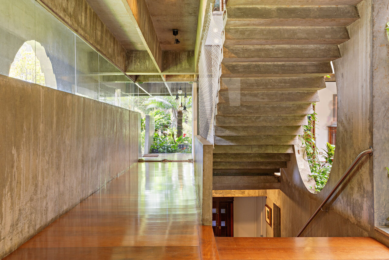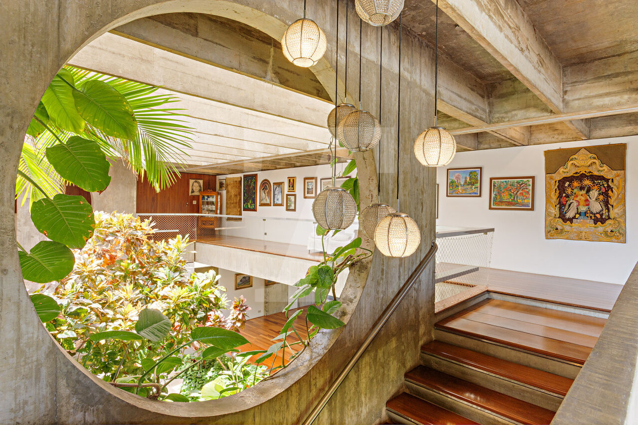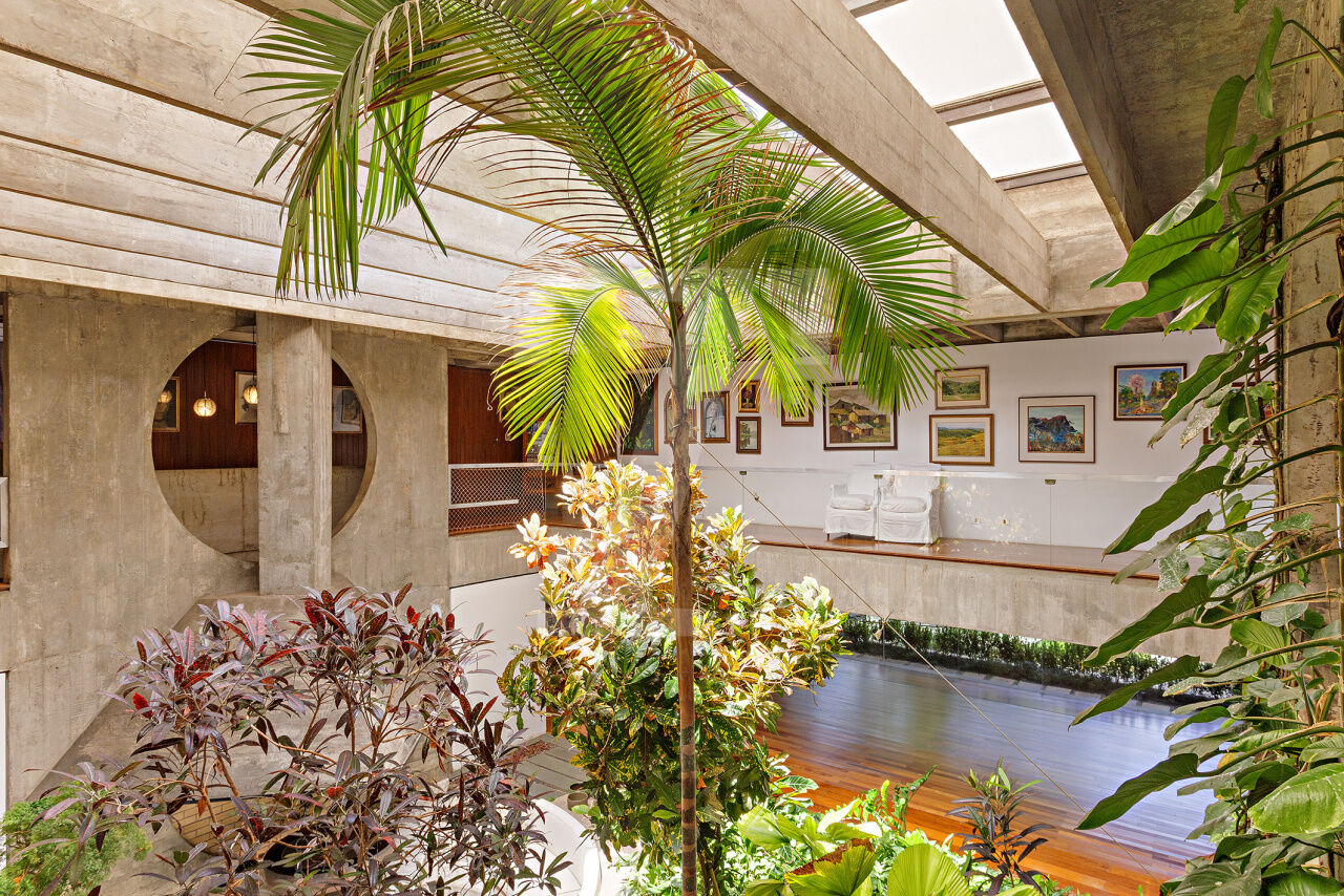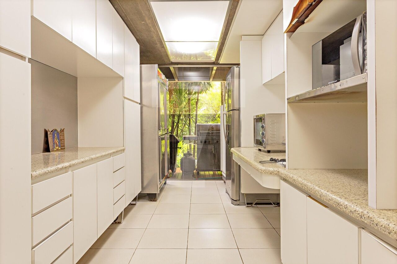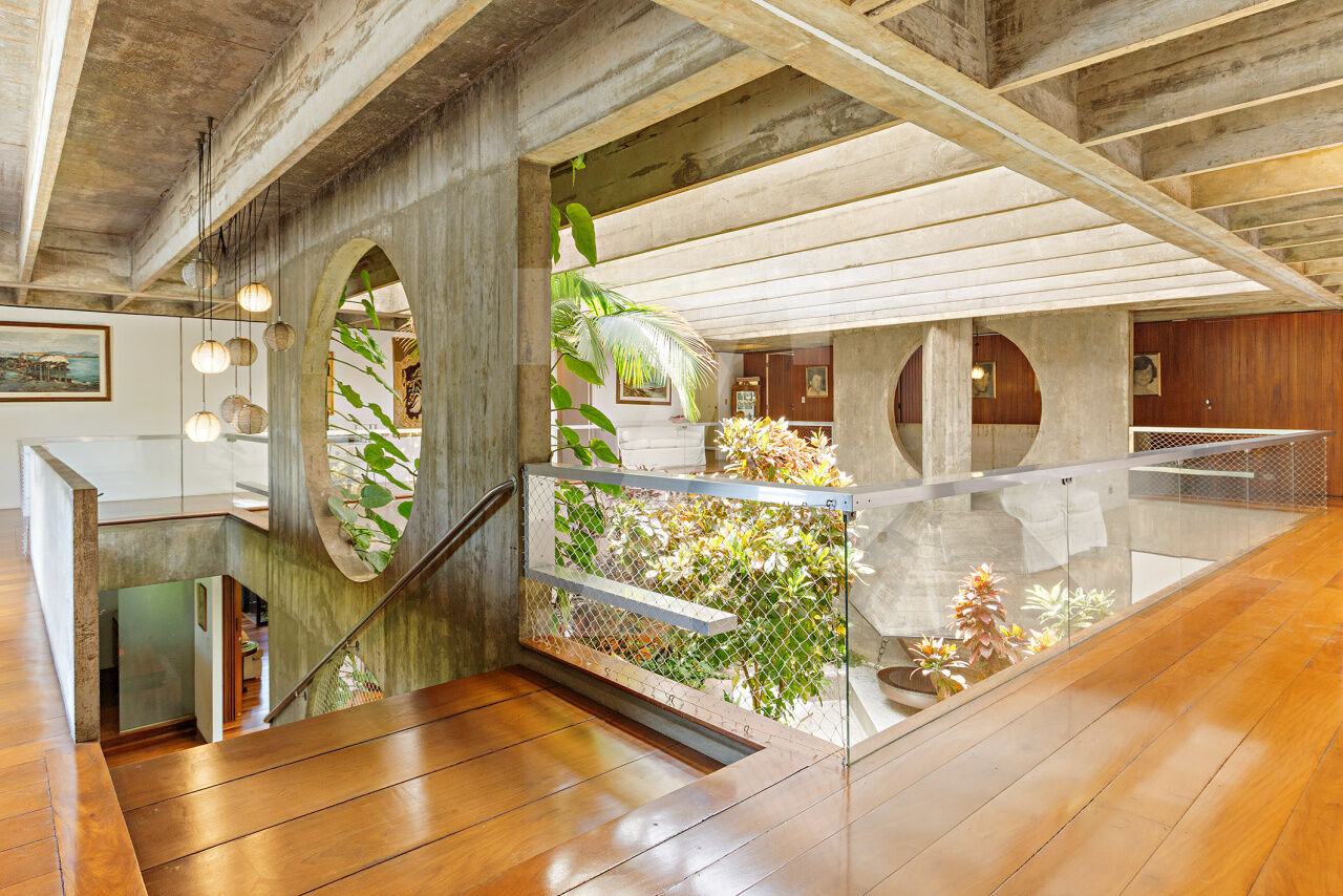 Esta residência, projetada por renomado arquiteto modernista, ocupa um terreno de 2.250 m² no Jardim Lusitânia, em localização privilegiada, com vista para o Parque Ibirapuera e voltada para uma tranquila praça. A casa possui 1.300 m² de área construída e conta com paisagismo assinado por Burle Marx, tanto com árvores nativas quanto palmeiras imperiais. A garagem tem capacidade para mais de 35 automóveis e a residência é equipada com elevador, gerador, ar-condicionado e cozinha industrial. A área externa conta com um extenso jardim e piscina. Internamente, a residência dispõe de pé direito triplo, proporcionando uma sensação de amplitude e elegância. A área íntima é composta por cinco suítes, sendo a master com mais de 150 m², e inclui uma sala íntima e escritório privativos. A casa ainda oferece um cinema, biblioteca, salas de reuniões, TV, jogos, e lareira. O living é voltado para os jardins internos e externos, com paisagismo refinado e uma piscina que complementa o ambiente.