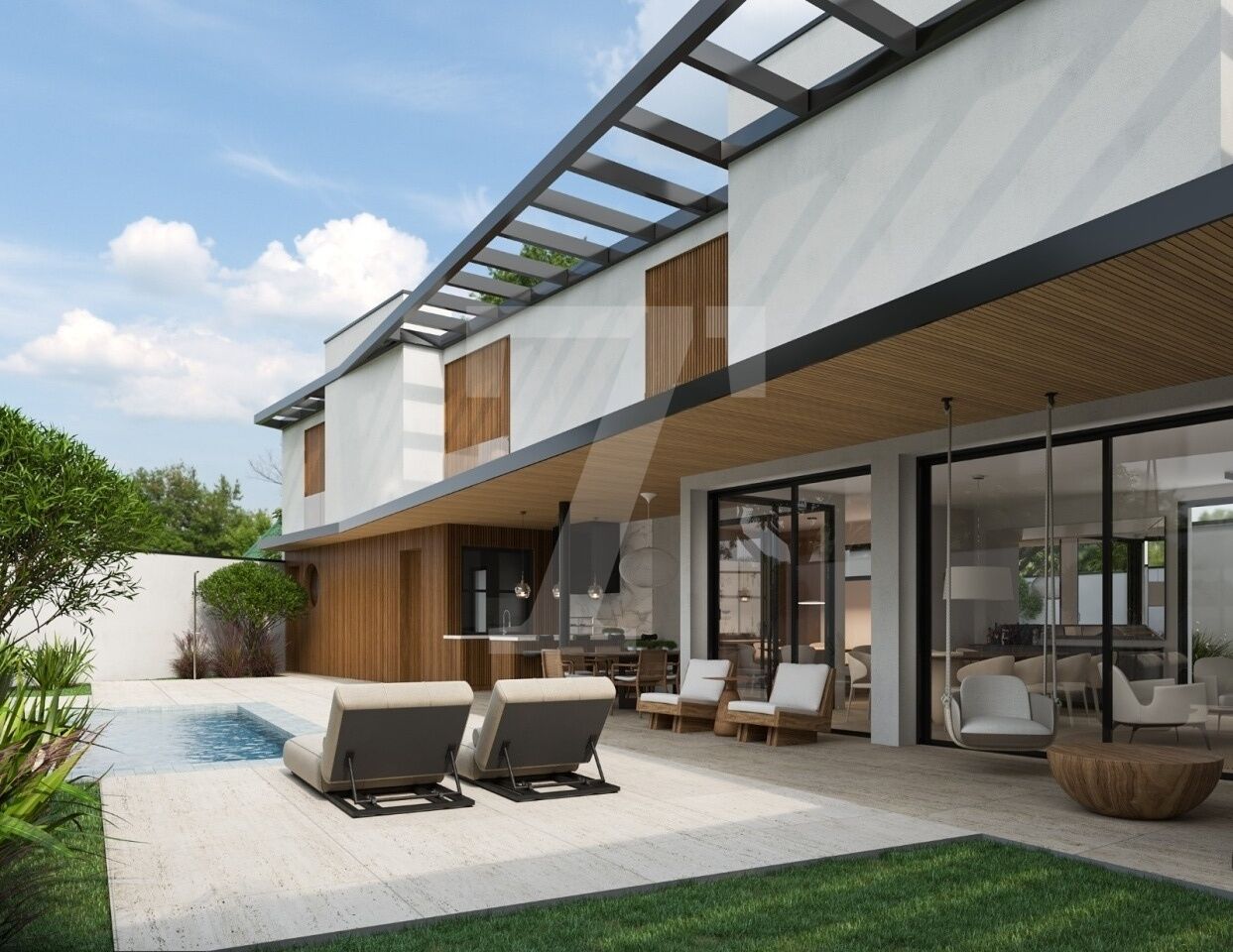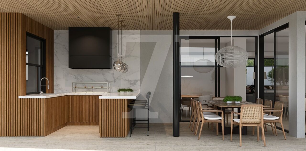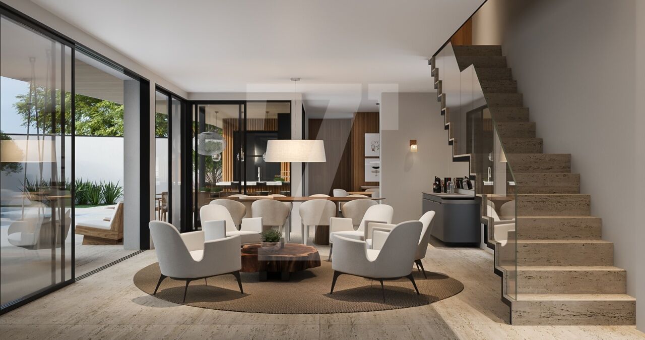 Projeto de reforma conforme imagens ilustradas :Transforme este imóvel em uma residência contemporânea de 521 m², com 5 suítes (sendo 1 master) e ambientes integrados, aproveitando 50% do terreno livre para criar uma ampla área de lazer com jardim e piscina.