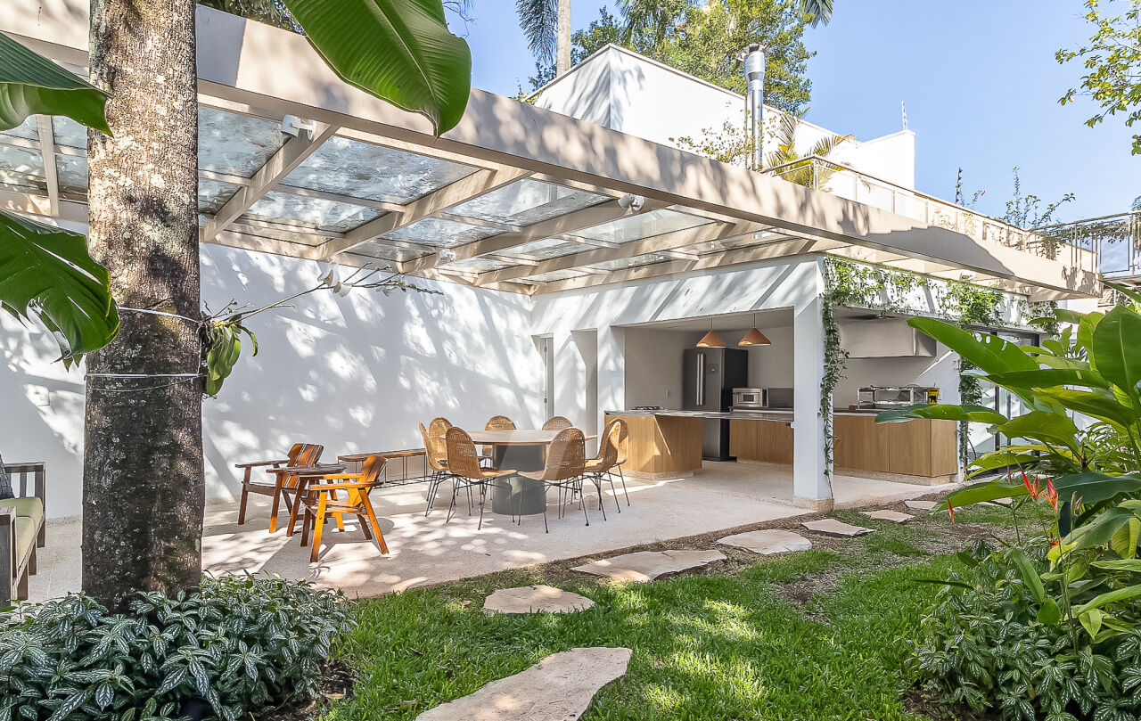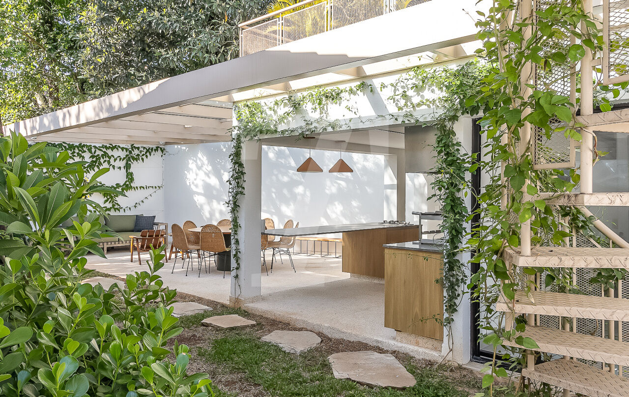 O espaço gourmet é um convite à culinária e à convivência. Equipado com uma churrasqueira e um forno de pizza, é o local perfeito para encontros memoráveis entre amigos e familiares. Simplesmente encantador!