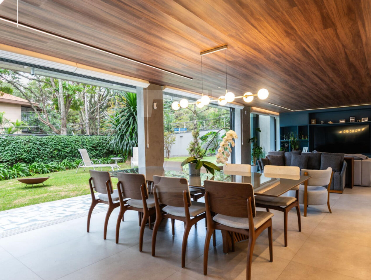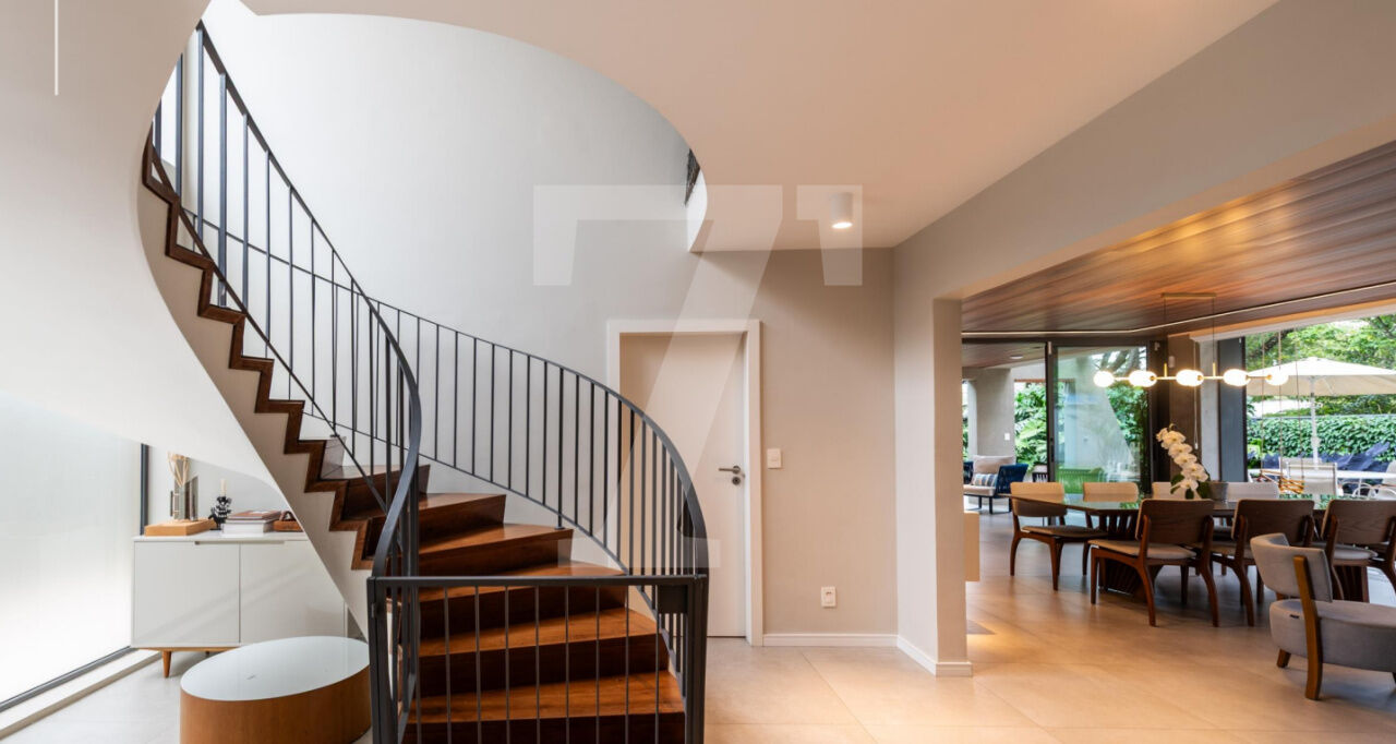 Possuí 5 amplas suítes, ampla sala voltada para um lindo jardim,