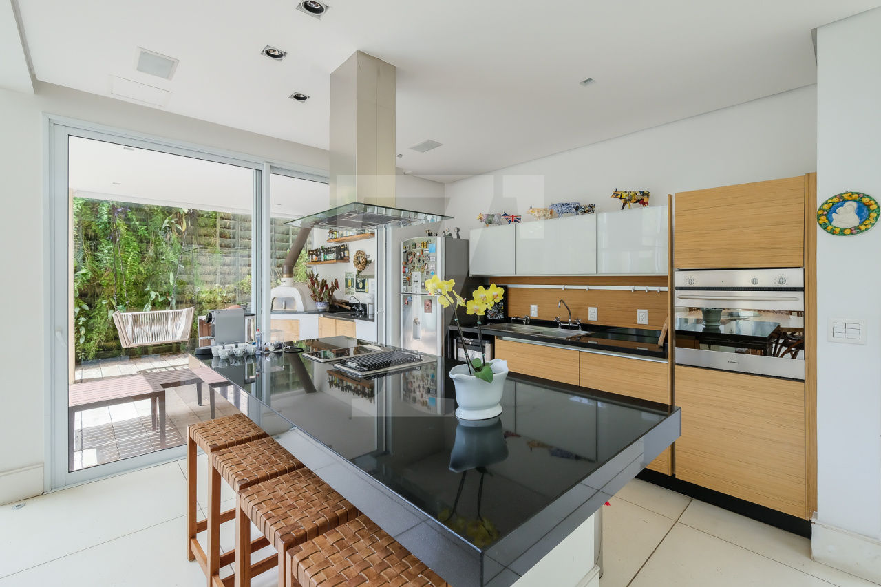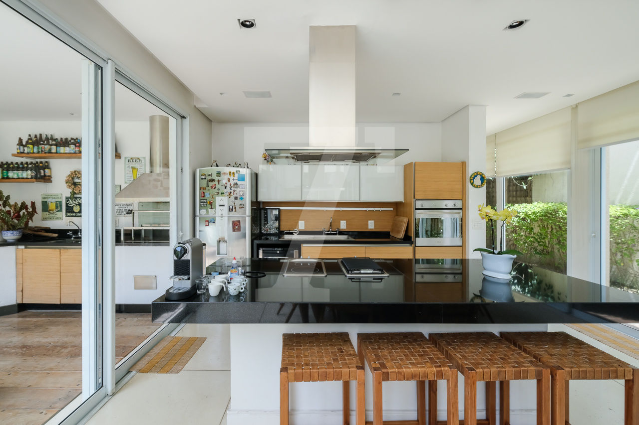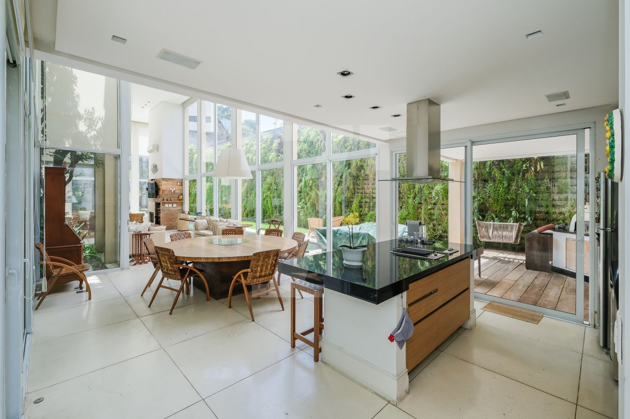 Casa a venda localizada na Vila Madalena. Possui 677 m² de terreno e 480 m² de área construída, 3 suítes, sendo a principal com closet e sala íntima, e 2 vagas. Área social com pé direito de 8 metros, proporcionando muita iluminação natural aos ambientes. Área externa com espaço gourmet integrado com piscina em L e jardim com paisagismo assinado por Gilberto Elkis.