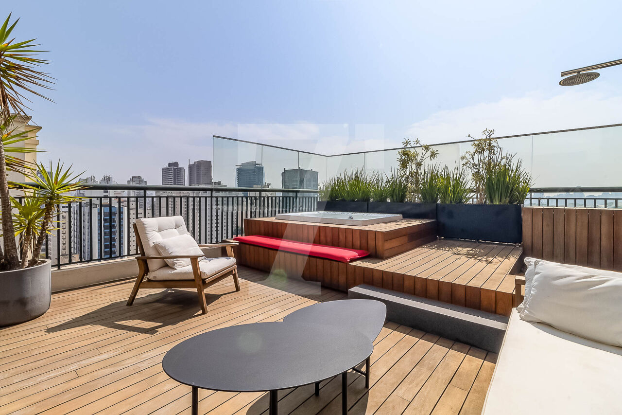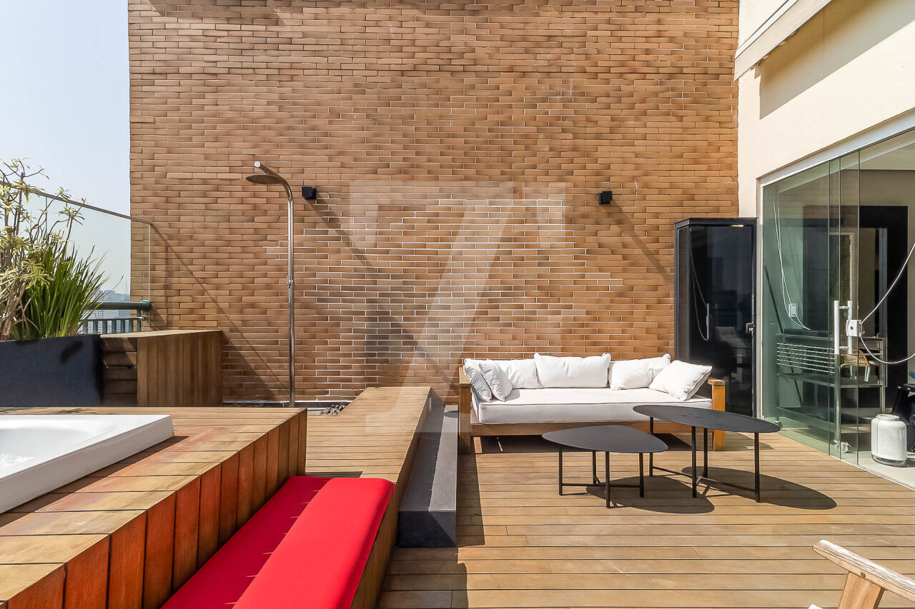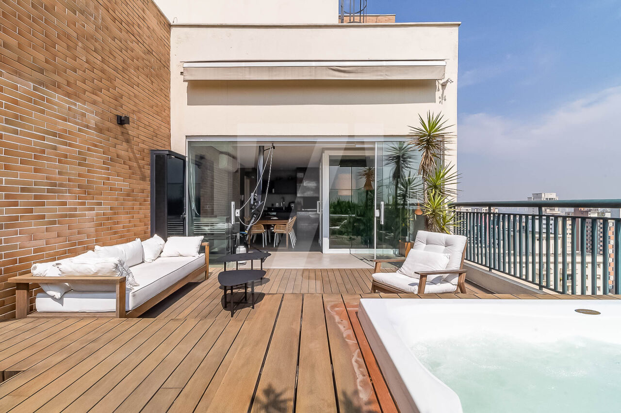 A excelente área externa é um dos destaques dessa cobertura triplex. Equipado com jacuzzi e espaços amplos, o terraço é o cenário ideal para relaxar e receber amigos em momentos inesquecíveis. Aproveite ao máximo o ar livre sem sair de casa.