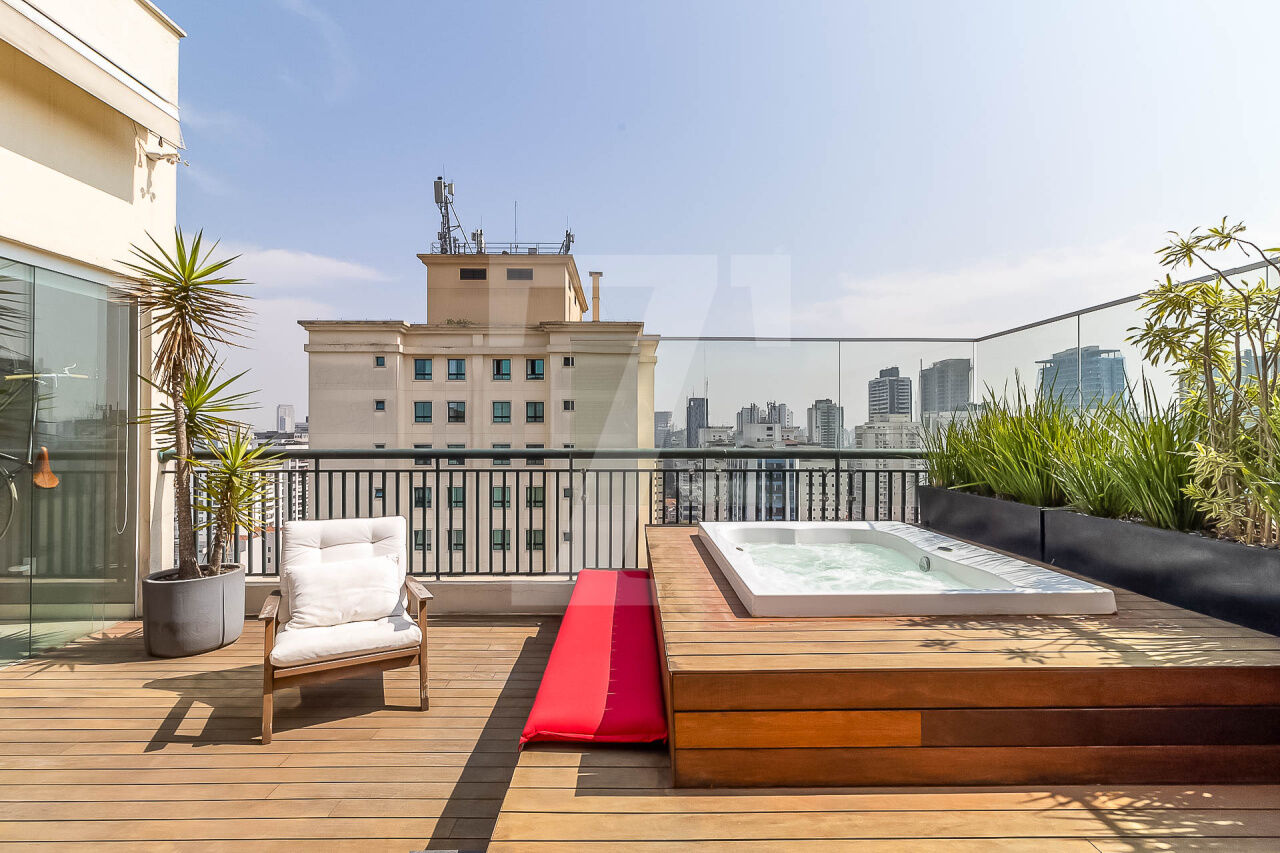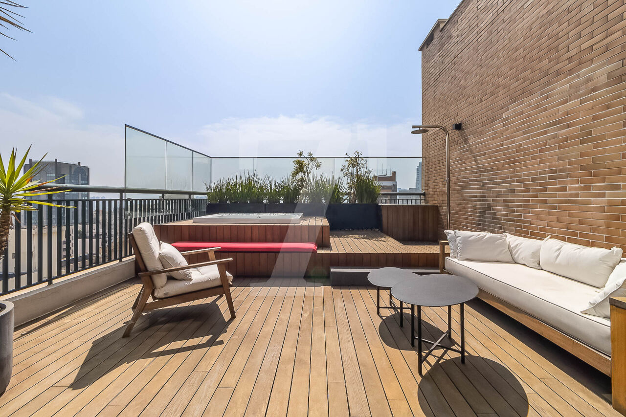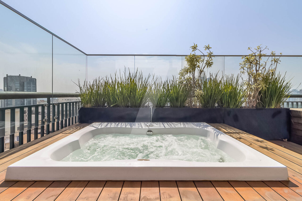 A excelente área externa é um dos destaques dessa cobertura triplex. Equipado com jacuzzi e espaços amplos, o terraço é o cenário ideal para relaxar e receber amigos em momentos inesquecíveis. Aproveite ao máximo o ar livre sem sair de casa.