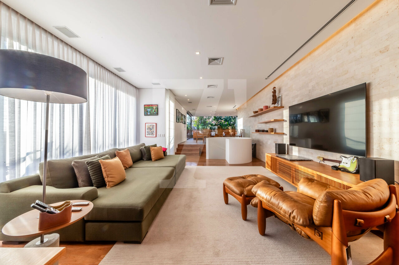 São dois pavimentos bem distribuídos, com salas amplas, quatro suítes confortáveis e marcenaria sob medida. A suíte principal tem closet e banheiro generoso, e uma das suítes conta com varanda privativa. Os acabamentos combinam materiais naturais com tecnologia aplicada ao conforto diário.