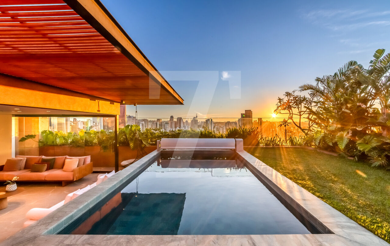 Cobertura com piscina no terraço, vista aberta e projeto lindo em prédio com lazer, na Vila Madalena.