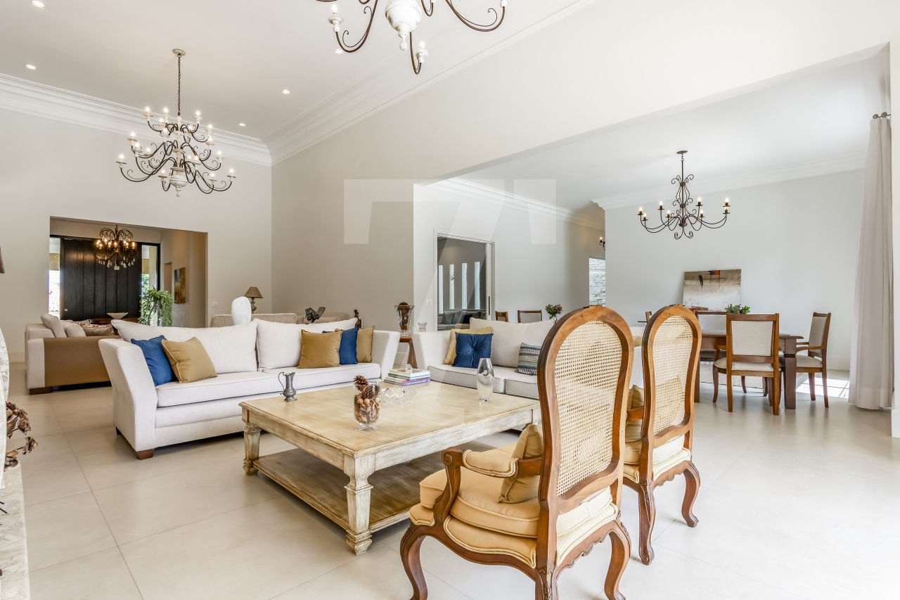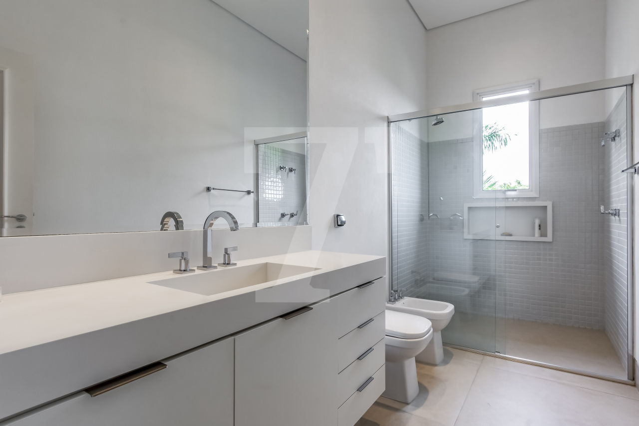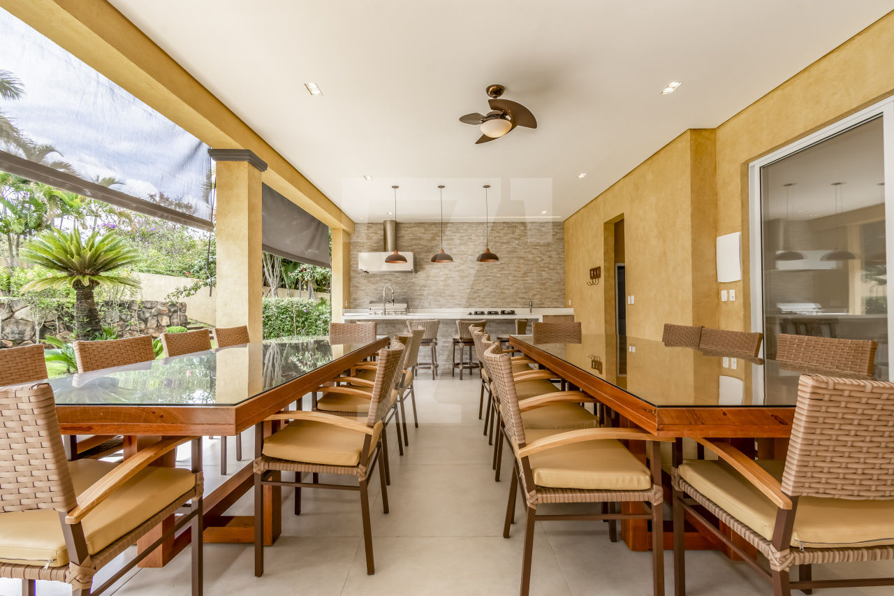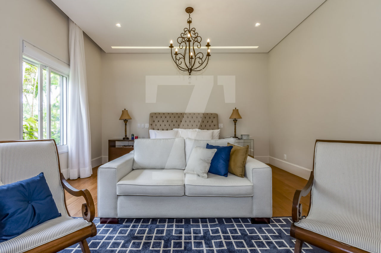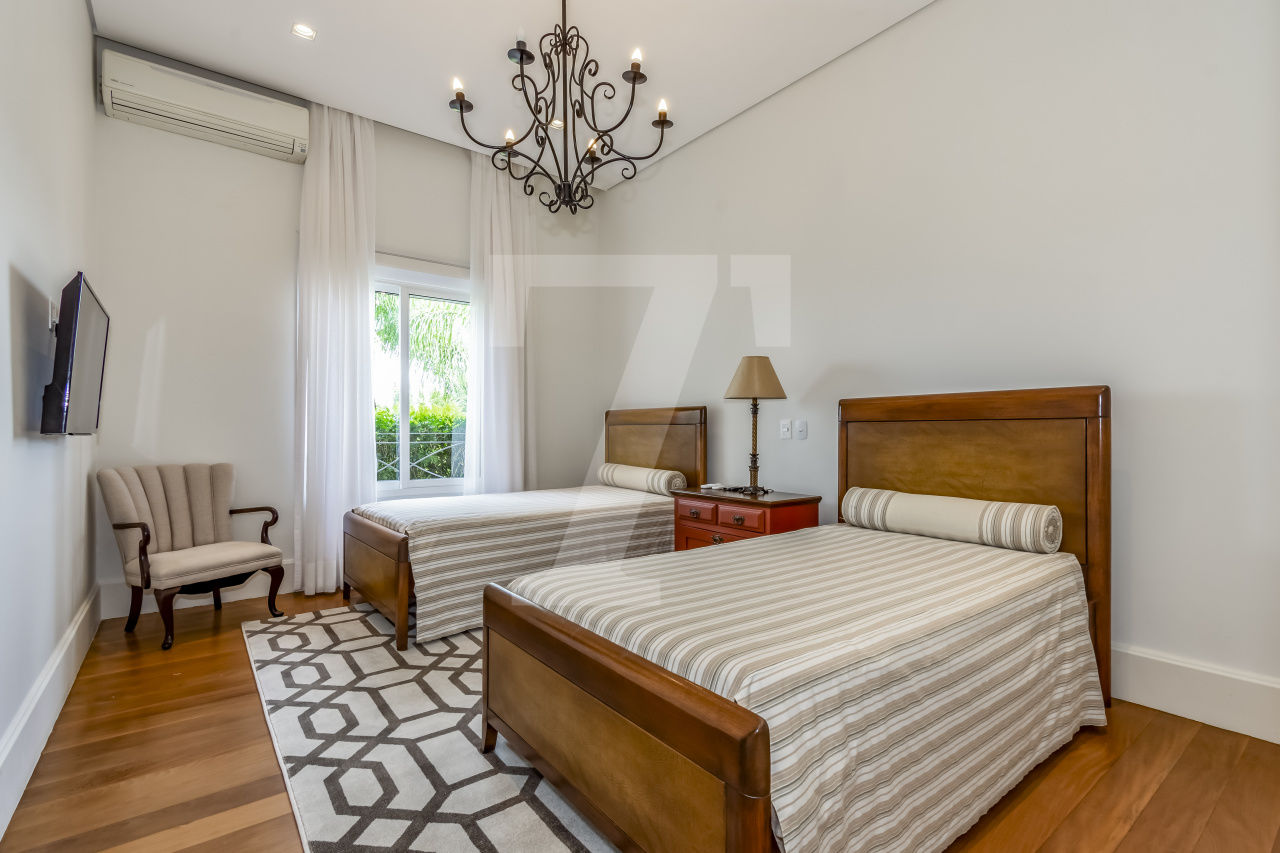 Casa com construção moderna com 3000 metros de terreno e 800 m² metros de área construída. Casa térrea com 5 suítes, uma master com closet e banheiros Sr. e Sra. Todas as suítes possuem varanda para área interna da residência. Sala de Estar com amplo living para 3 ambientes, sala de jantar, home, copa e cozinha, adega, espaço gourmet,. Amplo jardim com piscina e pomar. Sauna e casa com dependências de serviço completas. Garagem para 7 vagas. Atualizada e moderna.