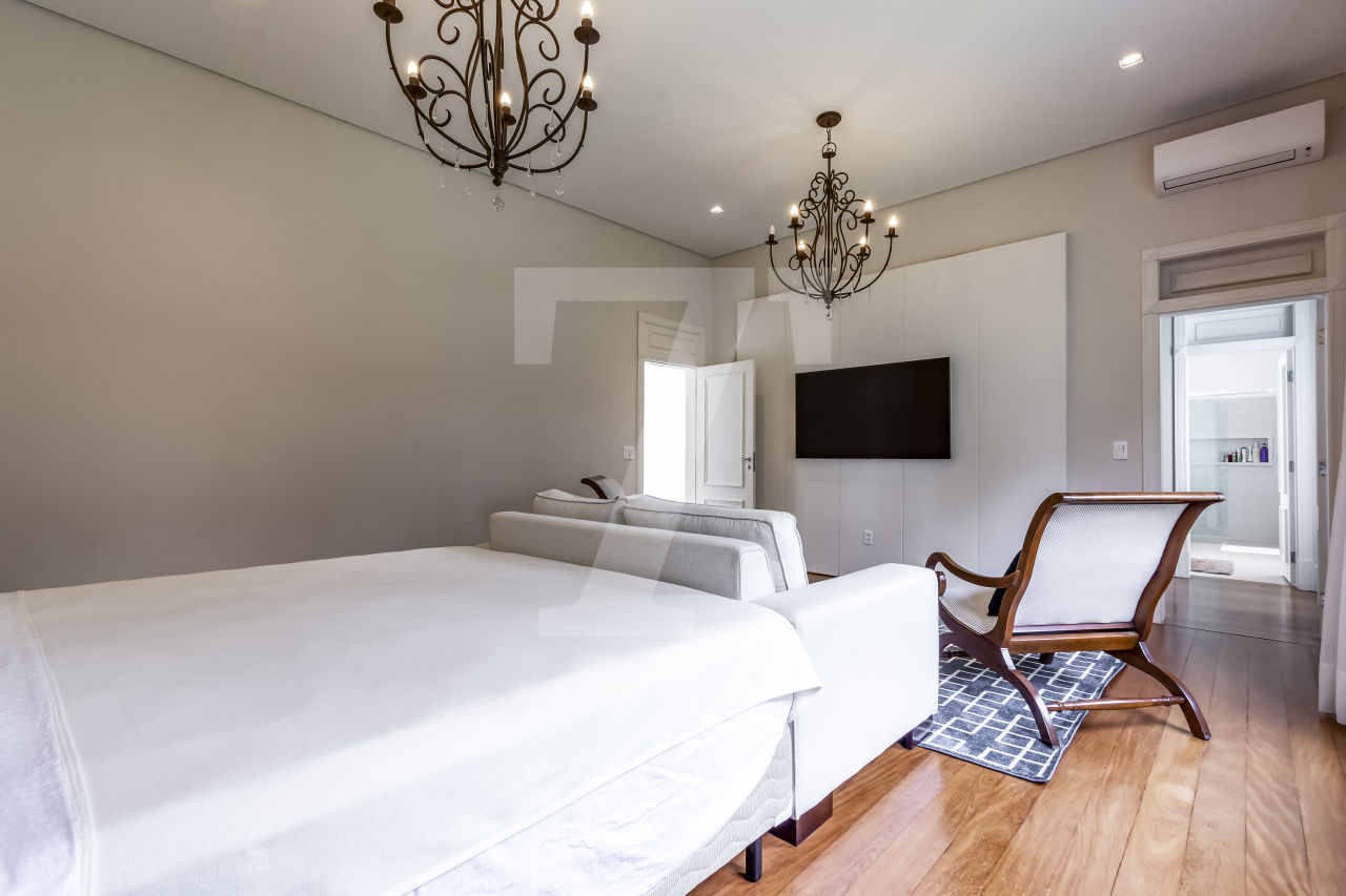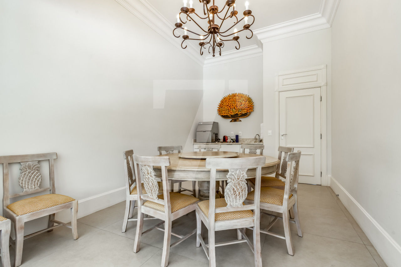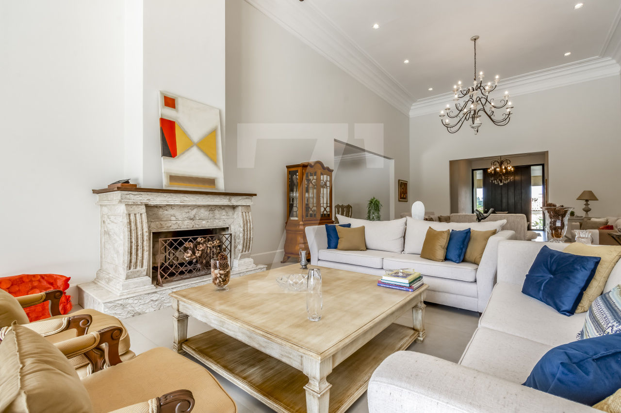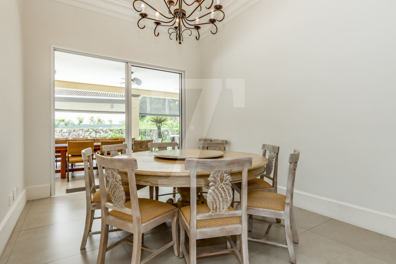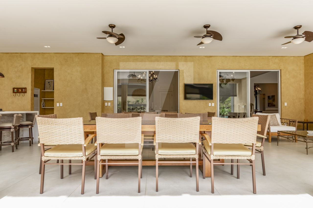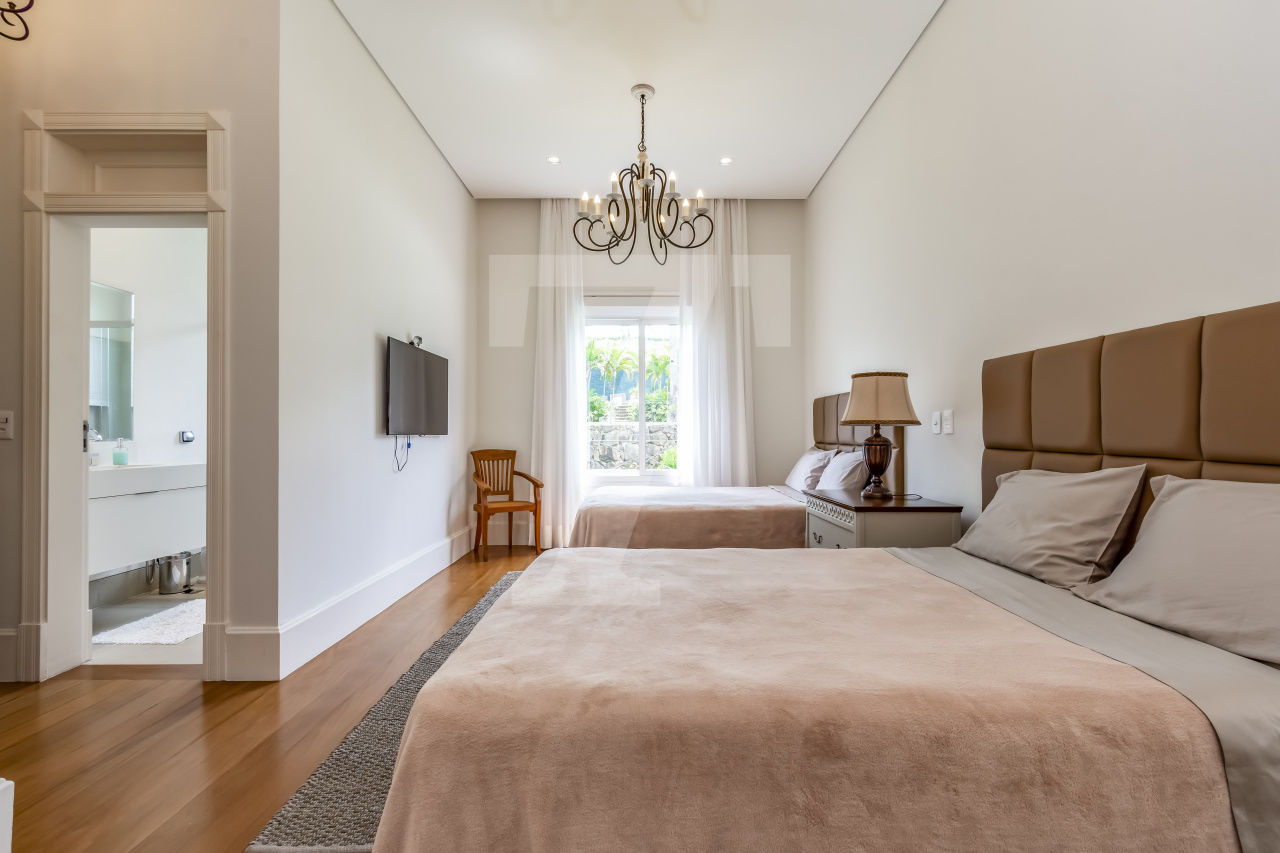Casa com construção moderna com 3000 metros de terreno e 800 m² metros de área construída. Casa térrea com 5 suítes, uma master com closet e banheiros Sr. e Sra. Todas as suítes possuem varanda para área interna da residência. Sala de Estar com amplo living para 3 ambientes, sala de jantar, home, copa e cozinha, adega, espaço gourmet,. Amplo jardim com piscina e pomar. Sauna e casa com dependências de serviço completas. Garagem para 7 vagas. Atualizada e moderna.
