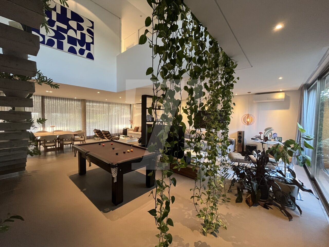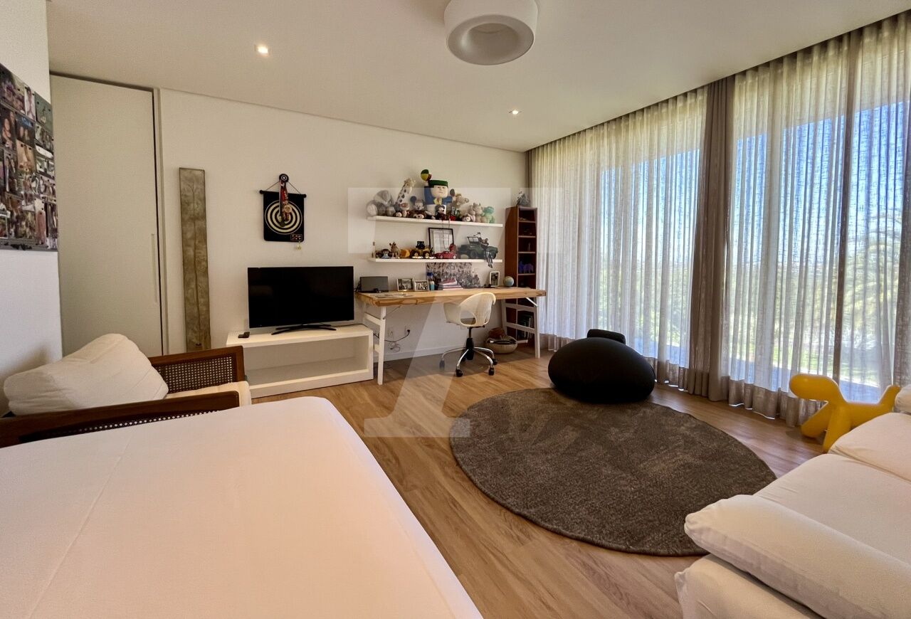 No pavimento térreo conta com uma cozinha, sala de jogos, sala de estar, sala de jantar e home integrados, além de 2 suítes, lavabo, lavanderia e uma suíte para funcionários. No pavimento superior, você encontrará 3 amplas suítes, sendo uma delas a suíte master com banheira.