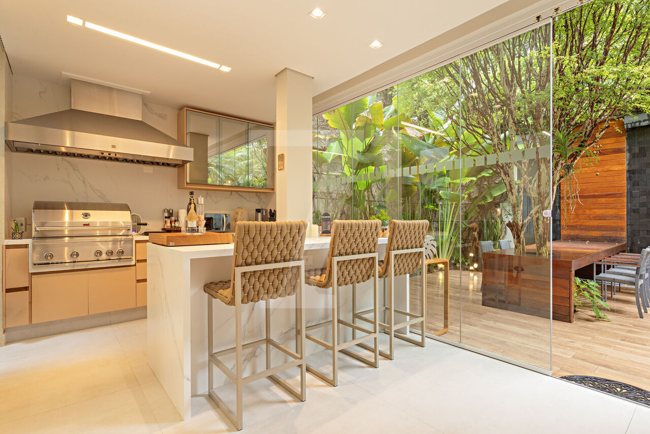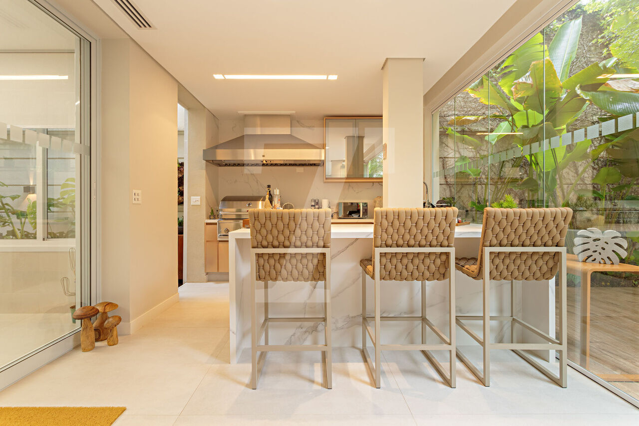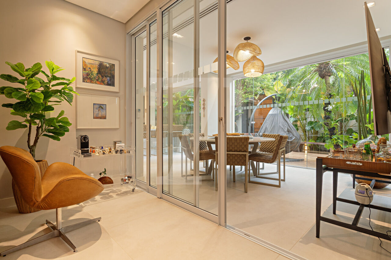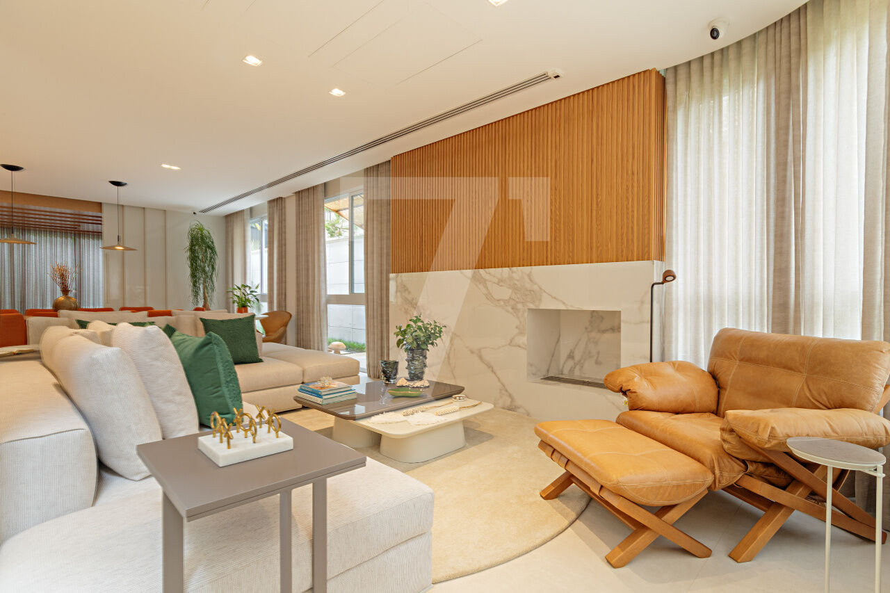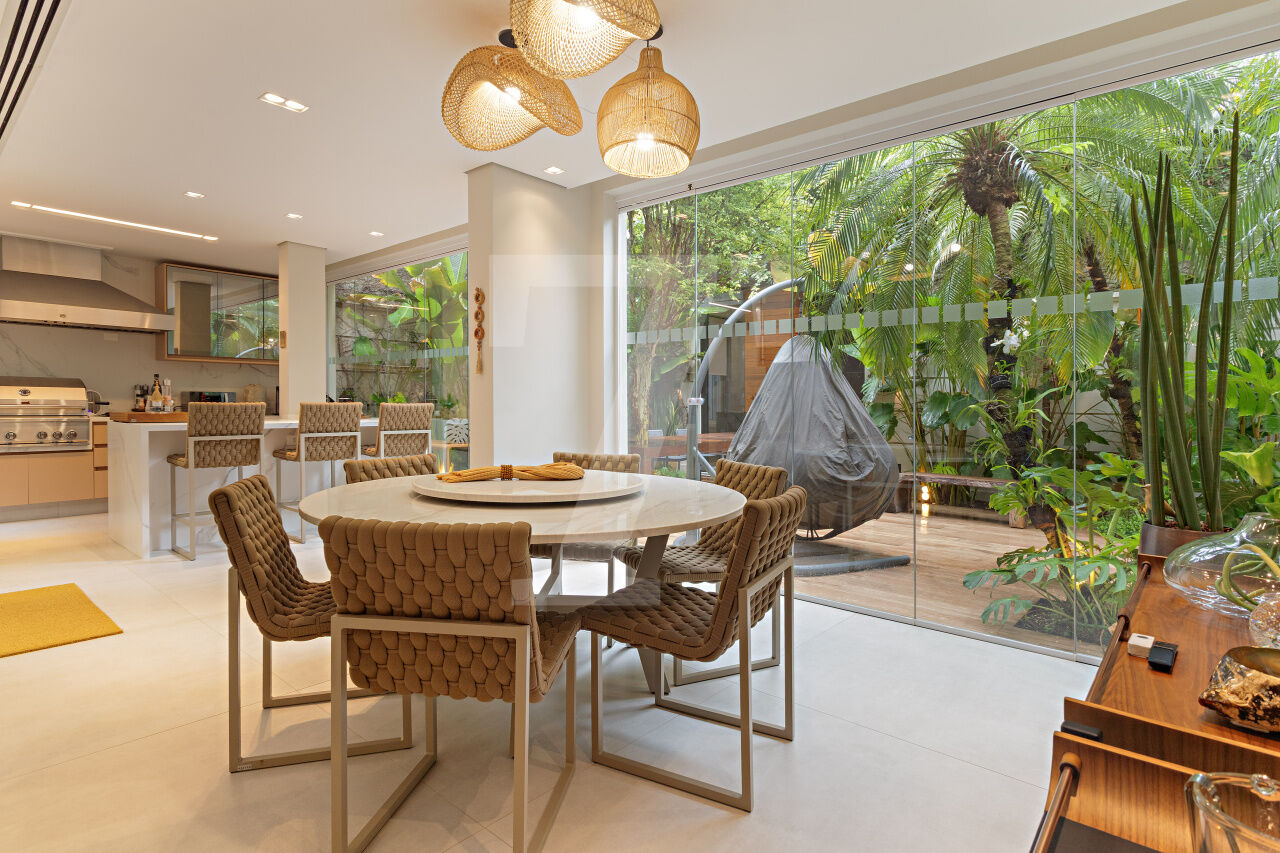 Localizada ao lado do Parque Ibirapuera, em condomínio residencial situado na Avenida IV Centenário, esta casa ocupa um endereço com oferta extremamente restrita de residências e acesso direto a uma das áreas verdes mais relevantes da cidade. Distribuída em três pavimentos atendidos por elevador privativo, a residência passou por reforma recente com projeto assinado por arquiteto, que priorizou a seleção criteriosa de materiais e acabamentos. O pavimento térreo abriga um amplo living com ambientes integrados, cozinha funcional equipada com marcenaria sob medida e eletrodomésticos instalados, além de escritório e home theater com projeto acústico e luminotécnico. O espaço gourmet é completo e se conecta a um lounge externo com cascata e a um pátio renovado, com paisagismo de linhas contemporâneas. No andar superior, a área íntima reúne três suítes bem distribuídas, incluindo a principal com walk-in closet, banheiros independentes senhor e senhora e uma sala íntima versátil, adequada para leitura ou trabalho. O pavimento inferior contempla sete vagas de garagem, além de uma vaga tipo box atualmente utilizada como depósito privativo. A área de bem-estar inclui academia, sala de massagem e adega climatizada com marcenaria personalizada. A casa conta ainda com sistema de aspiração central, climatização em todos os ambientes e gerador full, assegurando funcionamento integral em caso de interrupção de energia. As dependências de serviço são completas, e a residência dispõe de portas blindadas e integração total à infraestrutura de segurança do condomínio, reunindo privacidade, funcionalidade e localização singular.