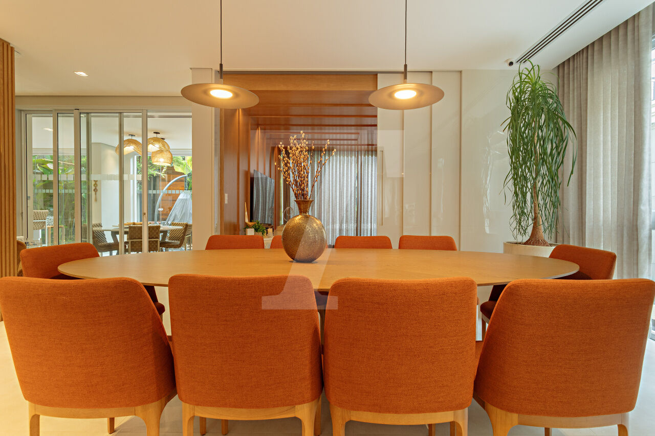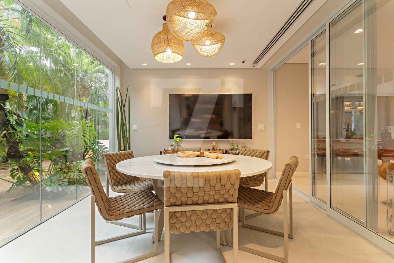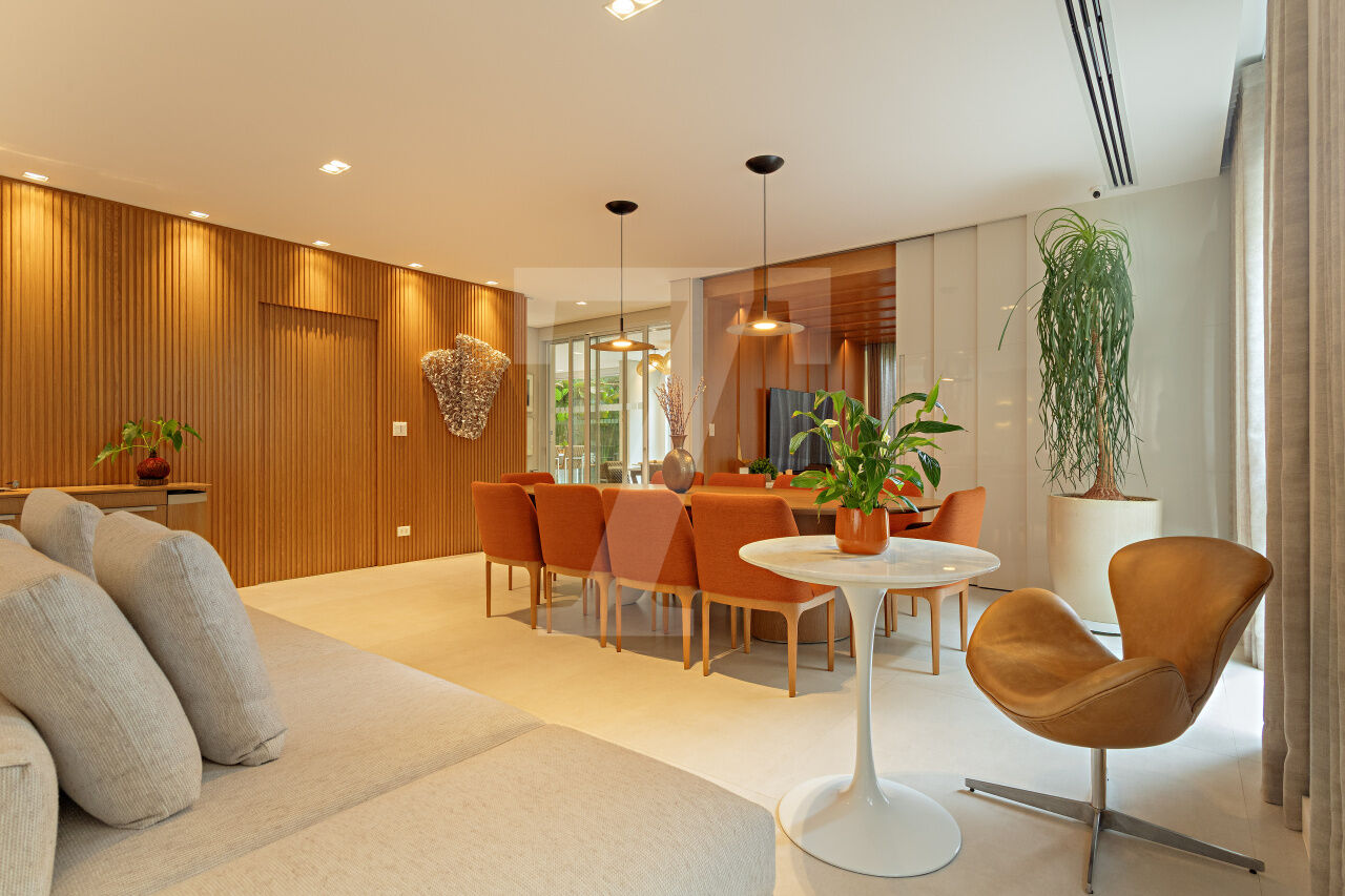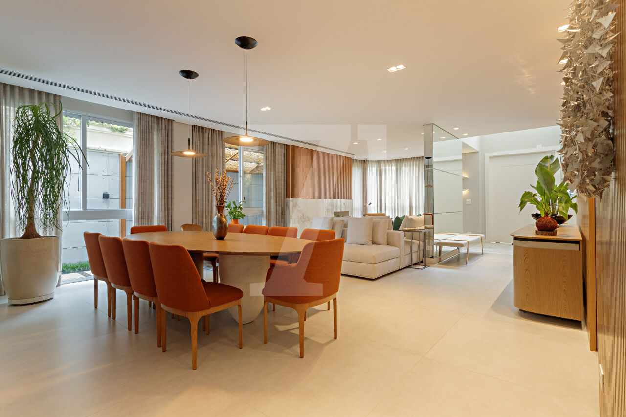 Localizada ao lado do Parque Ibirapuera, em condomínio residencial situado na Avenida IV Centenário, esta casa ocupa um endereço com oferta extremamente restrita de residências e acesso direto a uma das áreas verdes mais relevantes da cidade. Distribuída em três pavimentos atendidos por elevador privativo, a residência passou por reforma recente com projeto assinado por arquiteto, que priorizou a seleção criteriosa de materiais e acabamentos. O pavimento térreo abriga um amplo living com ambientes integrados, cozinha funcional equipada com marcenaria sob medida e eletrodomésticos instalados, além de escritório e home theater com projeto acústico e luminotécnico. O espaço gourmet é completo e se conecta a um lounge externo com cascata e a um pátio renovado, com paisagismo de linhas contemporâneas. No andar superior, a área íntima reúne três suítes bem distribuídas, incluindo a principal com walk-in closet, banheiros independentes senhor e senhora e uma sala íntima versátil, adequada para leitura ou trabalho. O pavimento inferior contempla sete vagas de garagem, além de uma vaga tipo box atualmente utilizada como depósito privativo. A área de bem-estar inclui academia, sala de massagem e adega climatizada com marcenaria personalizada. A casa conta ainda com sistema de aspiração central, climatização em todos os ambientes e gerador full, assegurando funcionamento integral em caso de interrupção de energia. As dependências de serviço são completas, e a residência dispõe de portas blindadas e integração total à infraestrutura de segurança do condomínio, reunindo privacidade, funcionalidade e localização singular.