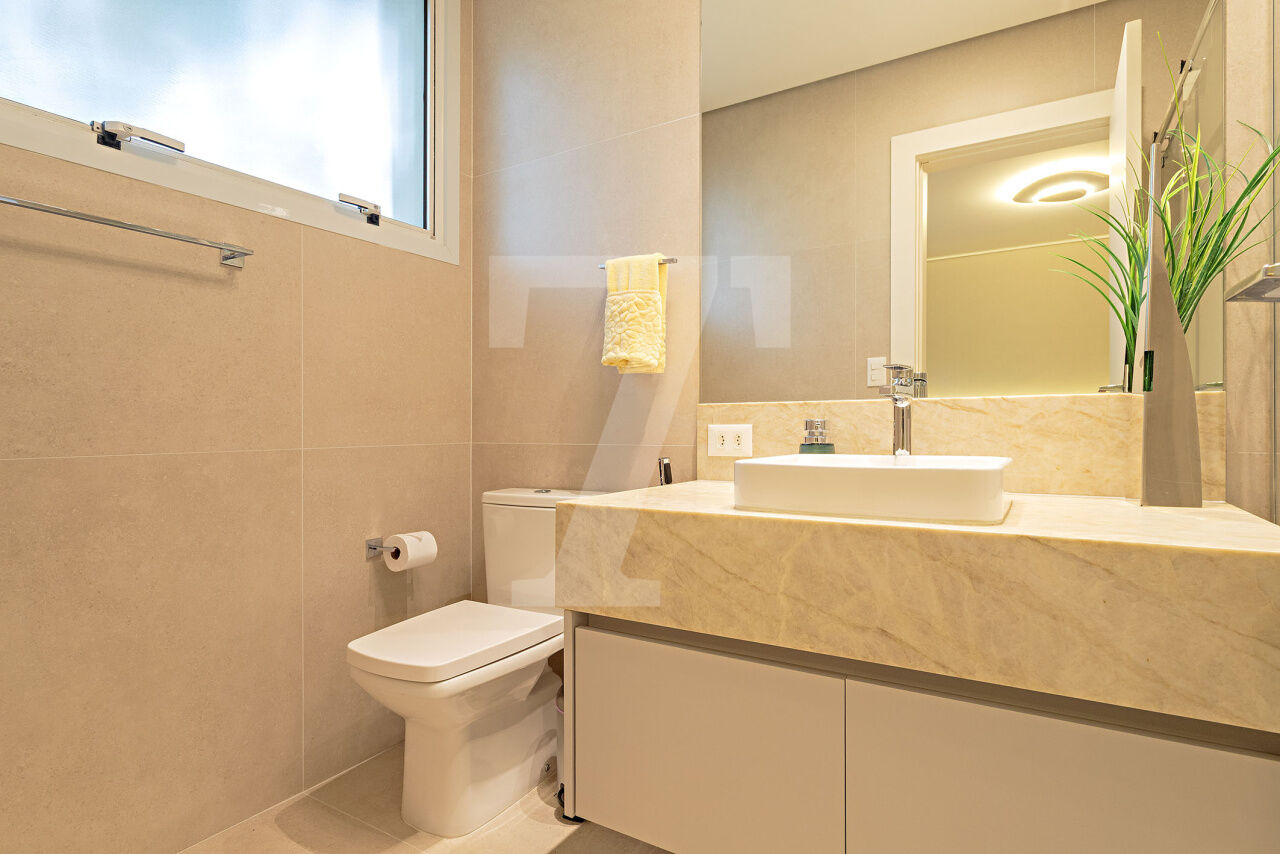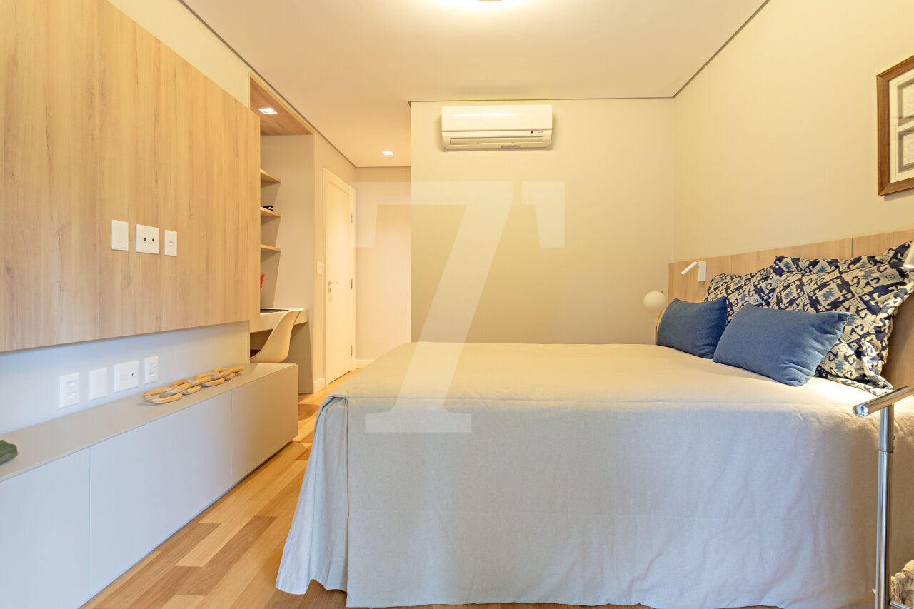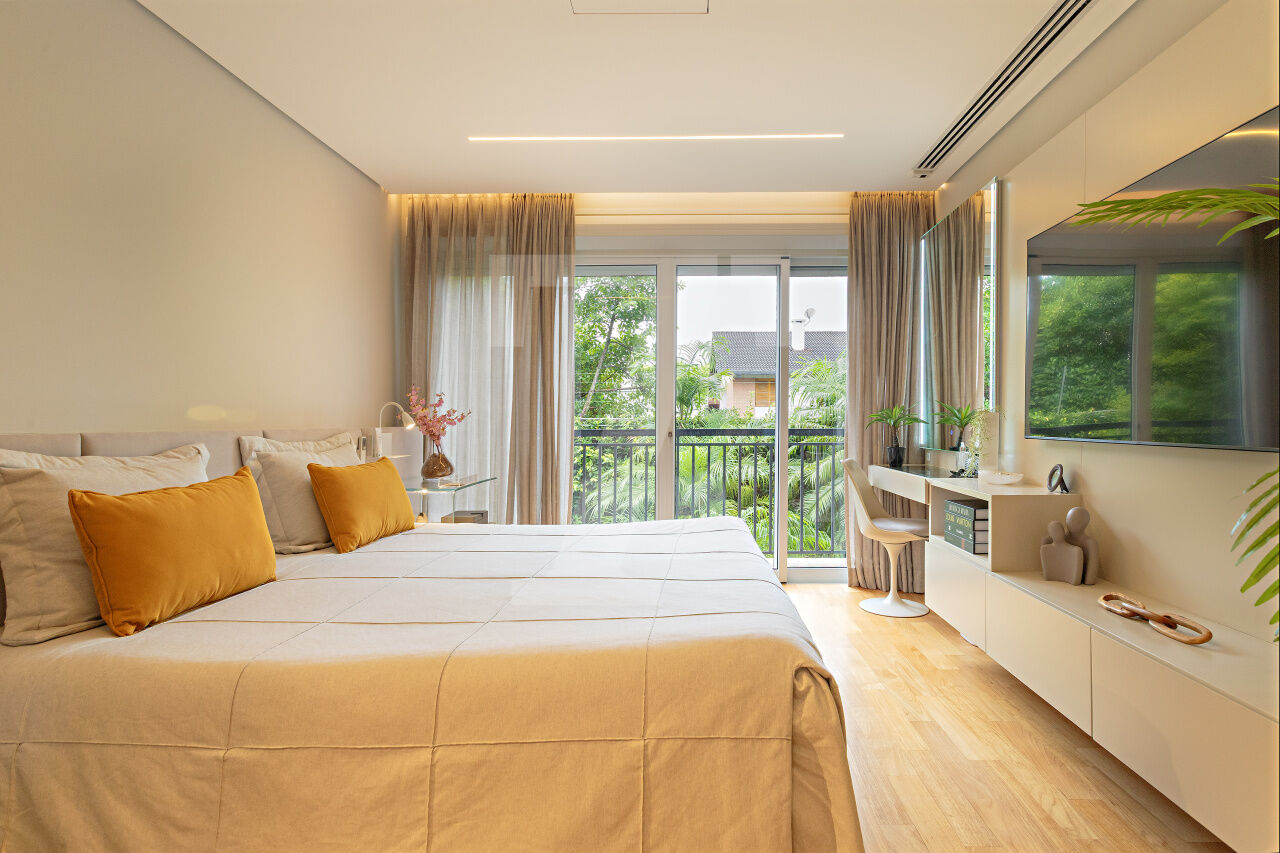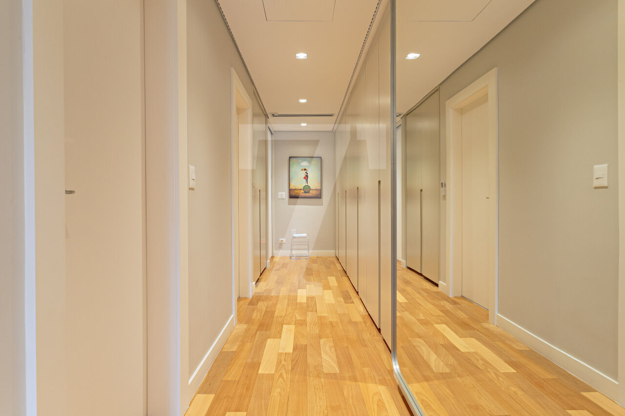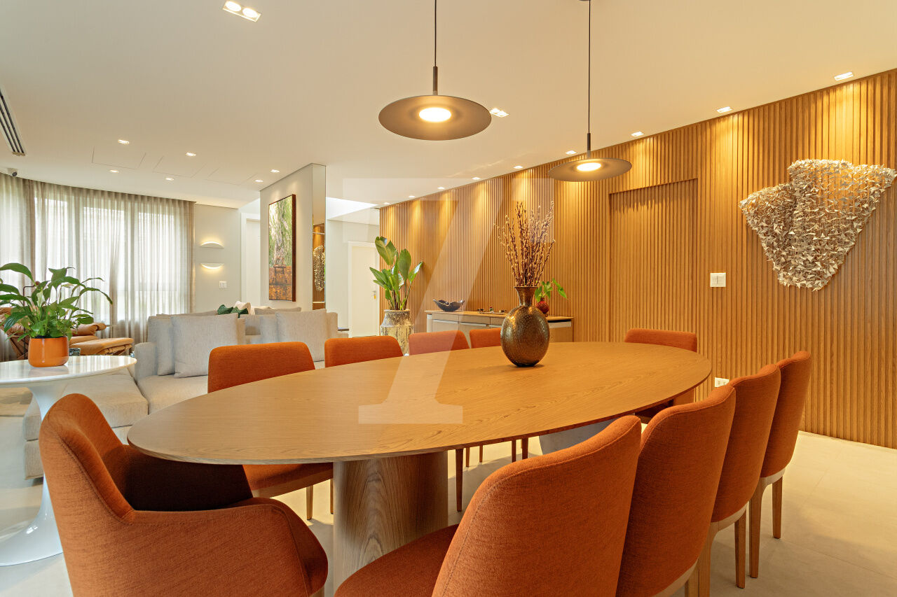 Localizada ao lado do Parque Ibirapuera, em condomínio residencial situado na Avenida IV Centenário, esta casa ocupa um endereço com oferta extremamente restrita de residências e acesso direto a uma das áreas verdes mais relevantes da cidade. Distribuída em três pavimentos atendidos por elevador privativo, a residência passou por reforma recente com projeto assinado por arquiteto, que priorizou a seleção criteriosa de materiais e acabamentos. O pavimento térreo abriga um amplo living com ambientes integrados, cozinha funcional equipada com marcenaria sob medida e eletrodomésticos instalados, além de escritório e home theater com projeto acústico e luminotécnico. O espaço gourmet é completo e se conecta a um lounge externo com cascata e a um pátio renovado, com paisagismo de linhas contemporâneas. No andar superior, a área íntima reúne três suítes bem distribuídas, incluindo a principal com walk-in closet, banheiros independentes senhor e senhora e uma sala íntima versátil, adequada para leitura ou trabalho. O pavimento inferior contempla sete vagas de garagem, além de uma vaga tipo box atualmente utilizada como depósito privativo. A área de bem-estar inclui academia, sala de massagem e adega climatizada com marcenaria personalizada. A casa conta ainda com sistema de aspiração central, climatização em todos os ambientes e gerador full, assegurando funcionamento integral em caso de interrupção de energia. As dependências de serviço são completas, e a residência dispõe de portas blindadas e integração total à infraestrutura de segurança do condomínio, reunindo privacidade, funcionalidade e localização singular.