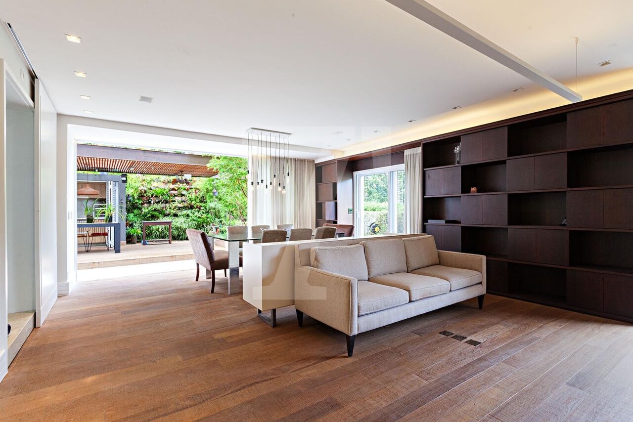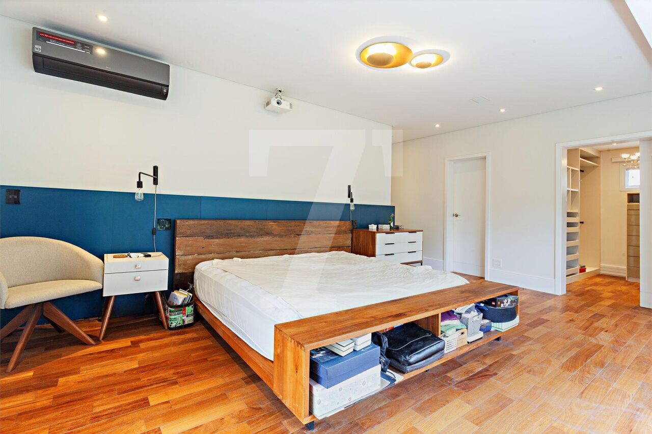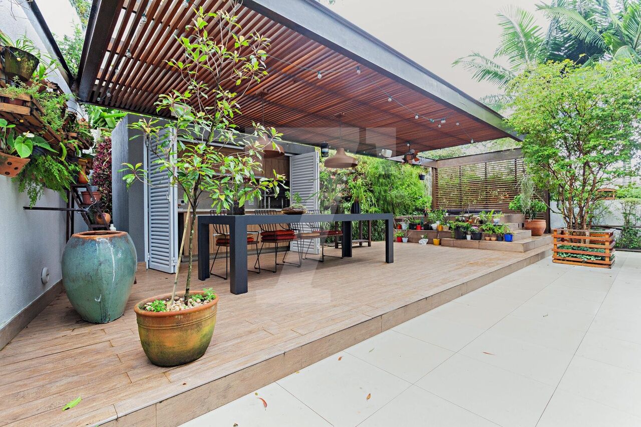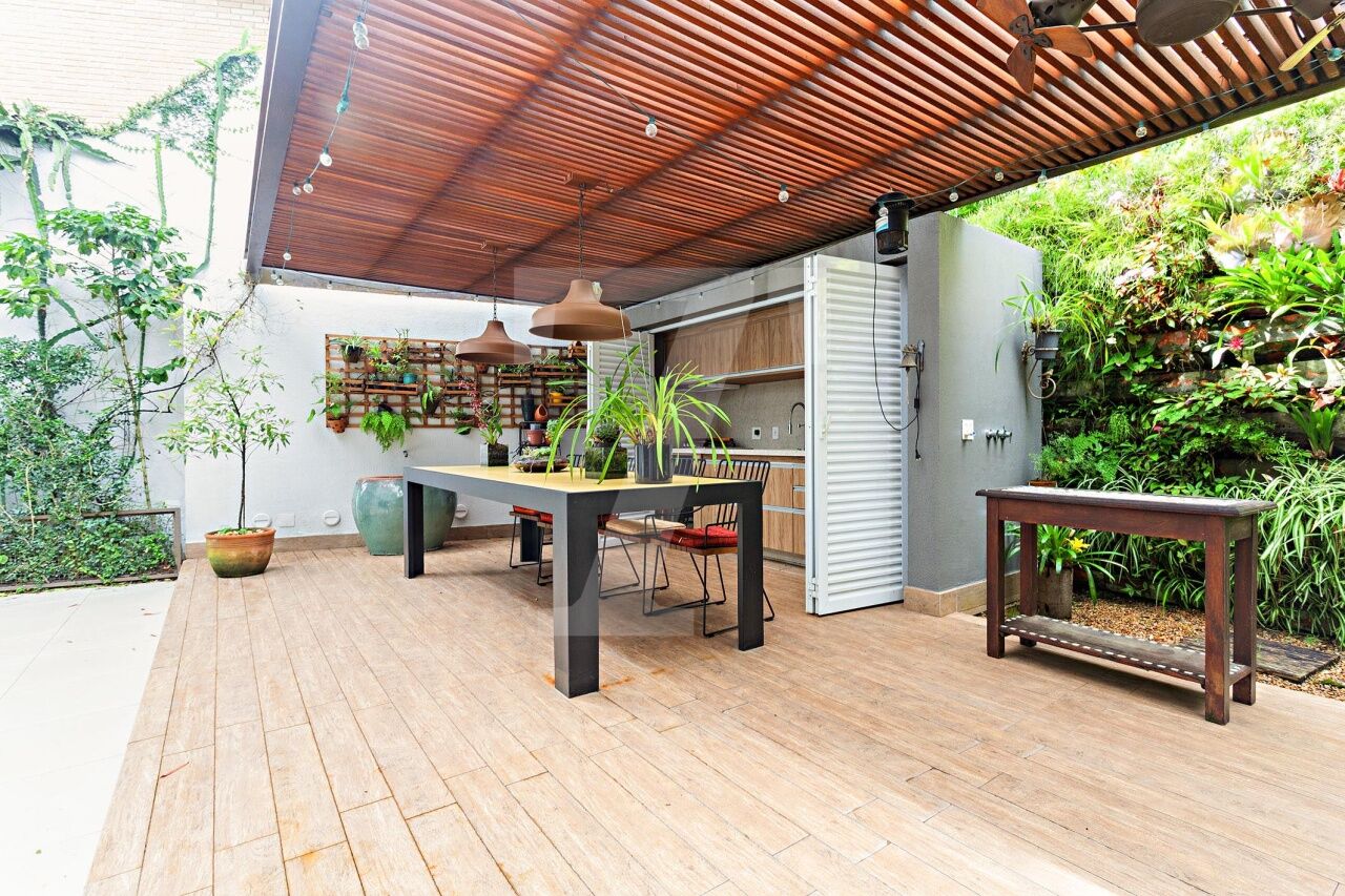 Situada em condomínio fechado com segurança 24 horas, esta casa encanta pelo charme de uma residência de campo, cercada por vegetação exuberante e abundante luz natural. A localização é privilegiada, ao lado de uma praça que assegura total privacidade, próxima ao renomado colégio Porto Seguro e ao Parque Burle Marx. Os moradores desfrutam de uma área de lazer completa, que inclui piscina com raia de 25 metros, quadra poliesportiva, bosque, academia, salão de festas, playground e salão de jogos. O projeto contemporâneo da casa, recém reformada, contempla uma área social ampla com living integrado de estar e jantar, que se conecta diretamente ao jardim com espaço gourmet. A área íntima, situada no mezanino, abriga um escritório, um home theater acolhedor e quatro suítes confortáveis. Como diferencial, o piso aquecido nos banheiros das suítes e nos closets eleva o conforto aos mais altos padrões.