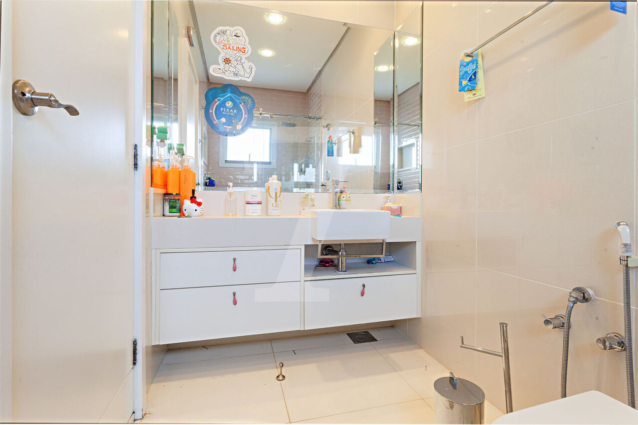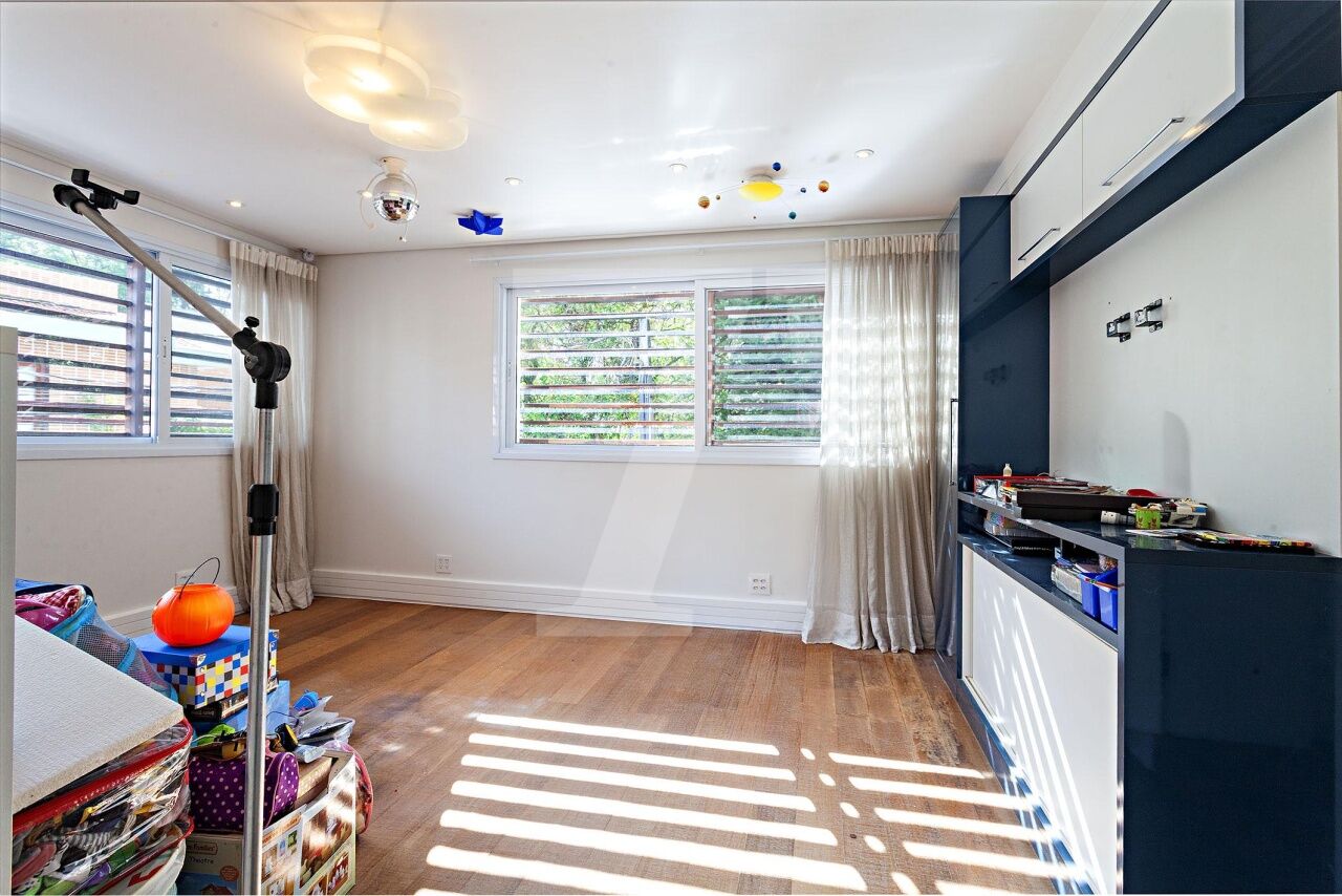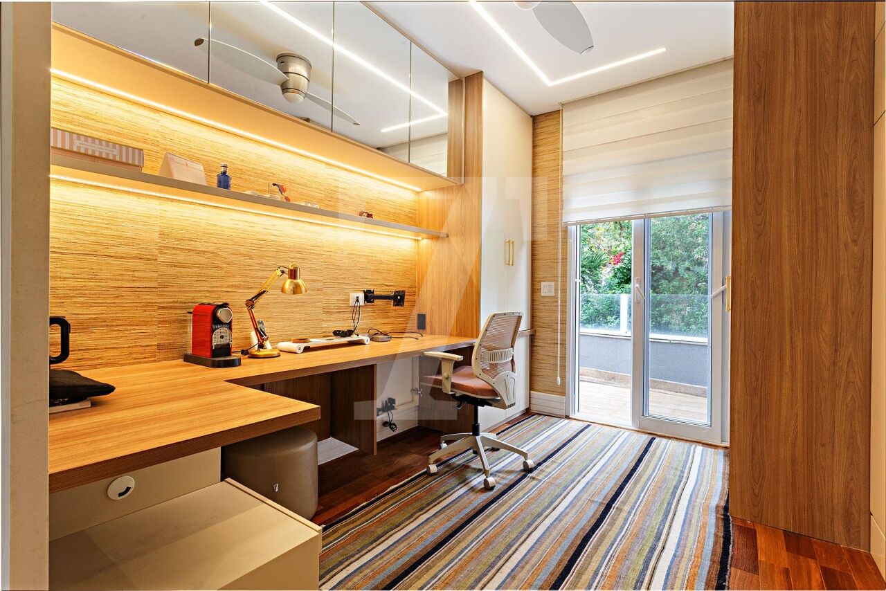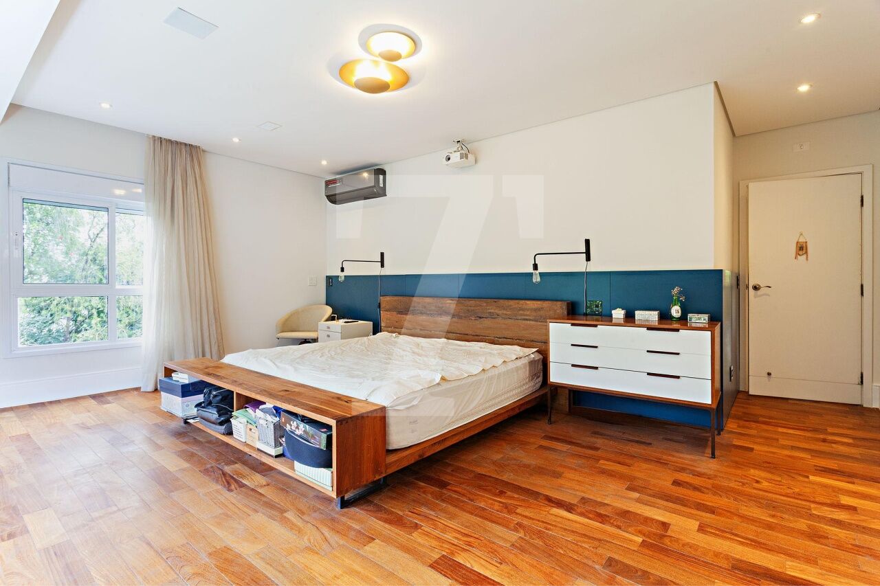 Situada em condomínio fechado com segurança 24 horas, esta casa encanta pelo charme de uma residência de campo, cercada por vegetação exuberante e abundante luz natural. A localização é privilegiada, ao lado de uma praça que assegura total privacidade, próxima ao renomado colégio Porto Seguro e ao Parque Burle Marx. Os moradores desfrutam de uma área de lazer completa, que inclui piscina com raia de 25 metros, quadra poliesportiva, bosque, academia, salão de festas, playground e salão de jogos. O projeto contemporâneo da casa, recém reformada, contempla uma área social ampla com living integrado de estar e jantar, que se conecta diretamente ao jardim com espaço gourmet. A área íntima, situada no mezanino, abriga um escritório, um home theater acolhedor e quatro suítes confortáveis. Como diferencial, o piso aquecido nos banheiros das suítes e nos closets eleva o conforto aos mais altos padrões.